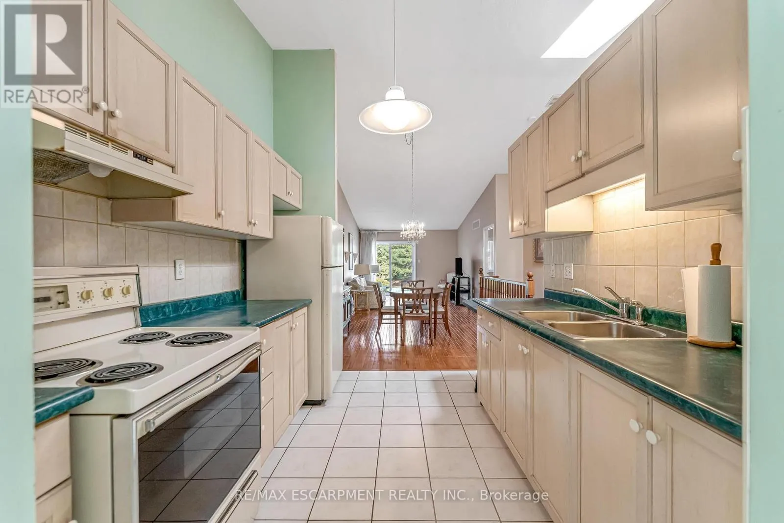 Cross Streets: Golf Links to Kitty Murray. ** Directions: Golf links to Kitty Murray. Experience Exceptional Adult-Lifestyle Living in Ancaster Welcome to this beautifully maintained bungalow townhome in the highly desirable Bungalows of Meadowlands community. Ideally located just steps from public transit, restaurants, grocery stores, and shopping, and offering quick access to Highway 403 and the Lincoln M. Alexander Parkway, this home truly offers the best of comfort and convenience. With approximately 1,090 sq. ft. of thoughtfully designed living space, this bright and airy home features vaulted ceilings and a skylight, creating an open and inviting atmosphere. Enjoy seamless indoor-outdoor flow with a private patio - ideal for relaxing or entertaining. The fully finished basement adds incredible value and versatility, offering a second kitchen, a spacious recreation room with a cozy fireplace, and additional living space-perfect for extended family, guests, or entertaining. Whether you're downsizing or seeking a low-maintenance lifestyle, this charming bungalow offers comfort, style, and unbeatable location all in one package. RSA (id:27476)