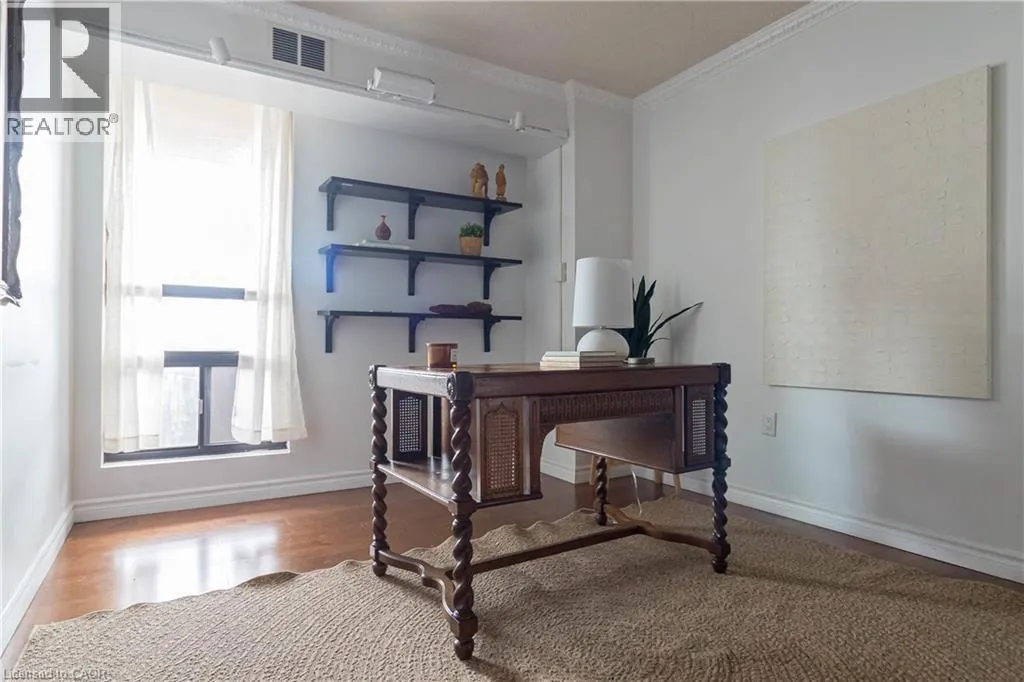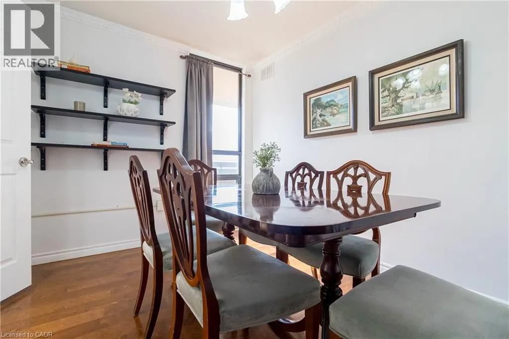 South off Main on Queen, East on Jackson Beautifully upgraded 10th-floor spacious corner suite with 1,350 sq. ft of living space with 2 or 3 bedrooms using the dining area, offering sweeping southeastern views. The renovated kitchen features high-quality stone countertops and stainless steel appliances, tiled, backsplash, and a pantry closet, providing both style and functionality. The second bedroom is currently being used as an office, but can easily be a bedroom. The bathrooms have been tastefully upgraded with stone countertops, modern fixtures and finishes. The unit offers, engineered hardwood flooring and tile, lots of storage space and a private covered balcony, perfect for outdoor relaxation, and includes underground parking (P2A-#96) along with a storage locker (#4-52). The well-maintained building offers excellent amenities such as a party room on the penthouse floor overlooking the lake and the city for gatherings, a fitness gym, and a sauna for relaxation, and includes visitor parking near the front door. Located in the Village Hill Condominium in the trendy Durand neighbourhood, this residence is a short walk to Locke Street and Hess Village, plus nations, grocery store in the Hamilton market, trendy coffee shops, diverse restaurants, the theaters, art gallery, and independent boutiques. It is also conveniently near Hamilton Convention Centre, First, Ontario, Centre, and sports venues the the hospital, Go Station with easy access to Highway 403, and the newly planned LRT will have a stop nearby making commuting a breeze. (id:27476)