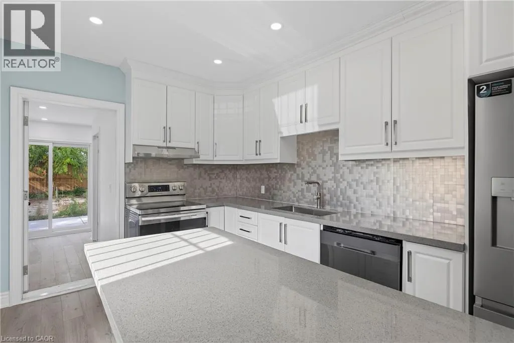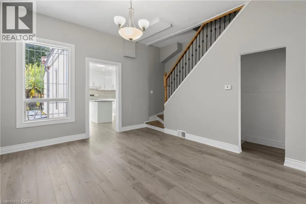 Turn right off of York Blvd. Fully renovated 1,297 sq ft semi in the heart of Hamiltonâs Strathcona neighborhood! Bright and modern throughout with a stunning kitchen featuring quartz counters, stainless steel appliances, and a large island. Spacious main floor with high ceilings and sleek vinyl flooring. Upstairs offers 3 bedrooms and a beautifully updated bath. Private yard with green space and patio areaâperfect for entertaining. Close proximity to Locke St, parks, schools, and transit. Move-in ready and beautifully finished! Don't miss this incredible leasing opportunity. (id:27476)