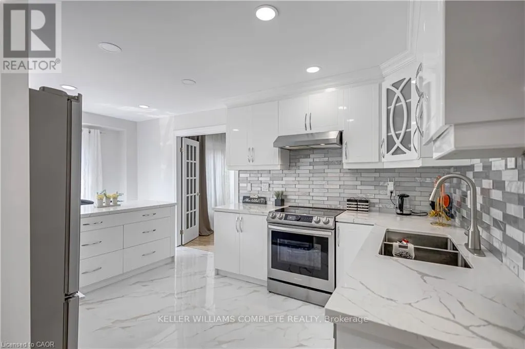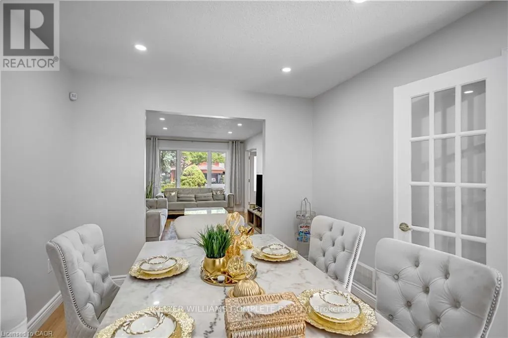 Cross Streets: Rymal Rd E & Republic Ave. ** Directions: Rymal Rd E - Between Upper Wentworth & Upper Wellington. Welcome to this beautifully maintained home that offers style, comfort, and spacious living for your family. Step into a grand 16'9" foyer, highlighted by a welcoming spiral staircase. The renovated kitchen features quartz countertops, elegant floor tiles, crown moulding, a stylish backsplash, newer appliances, and a large centre island perfect for entertaining. Bright pot lights illuminate the entire main floor, which has been freshly painted and showcases hardwood flooring throughout the living, family, and dining rooms. Enjoy a large dining area, a generously sized living room, and a spacious and lovely family room. The home also includes a convenient inside entry to the garage, while sliding doors in the kitchen provide natural light and direct access to the backyard. The upper level features four spacious bedrooms and two bathrooms. The beautiful primary bedroom includes a nice-sized walk-in closet and a 4-piece ensuite. Stylish hardwood floors run throughout the entire upper level. The finished basement offers multiple living areas, providing a great space for family time or get-togethers with friends. It includes ample storage, a small kitchenette, and a 3-piece bathroom-perfect for a home gym, office, or additional living space. What else could you ask for? Outside, a double-wide driveway accommodates parking for up to six cars. Within proximity to schools, public transit, the YMCA, parks, Limeridge Shopping Mall, grocery stores including Food Basics and NoFrills, and the highway, this is truly the most convenient location. Best of all, you can walk to the majority of these places! This home truly has it all-modern upgrades, ample space, and thoughtful design to suit your lifestyle. (id:27476)
