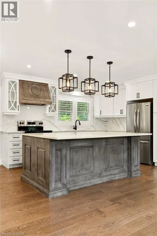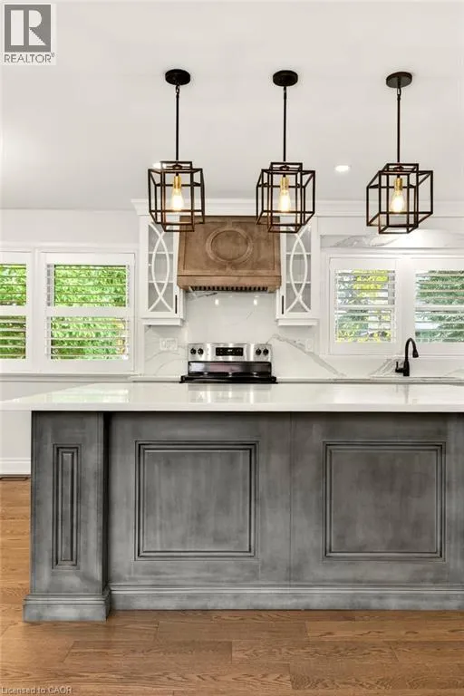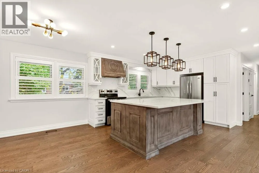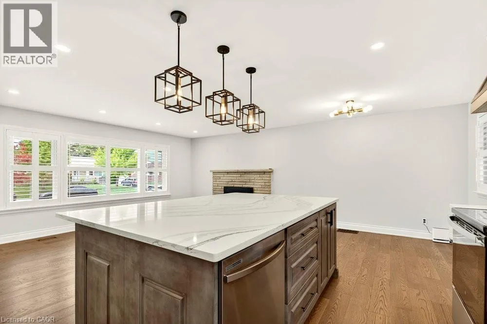 West of Garth St between Mountain Cres Ave and Westcliffe Ave Experience refined living in this newly renovated mid-century bungalow, located in one of Hamiltonâs most sought-after escarpment neighbourhoods - Westcliffe East. This sprawling main floor unit offers exclusive use of the full double driveway and a beautifully landscaped yard. Inside, the home features an open-concept layout with a custom-designed kitchen, quartz countertops, and a large island with seating for five. Ideal for entertaining or casual dining. Enjoy brand-new stainless-steel appliances, engineered oak hardwood flooring, and a gas fireplace framed by the homeâs original stone surround, blending modern luxury with timeless character. The home includes three spacious bedrooms, each with ample closet space, and a designer bathroom complete with a rainfall shower, floating double vanity, and accent lighting for a spa-like experience. Additional highlights include in-suite laundry, premium finishes throughout, and all utilities included for effortless living. Nestled on a quiet street along the Niagara Escarpment, this address offers the perfect balance of nature and convenience. Steps to scenic lookouts, hiking trails, parks, tennis courts, and golf courses, while remaining close to shopping, restaurants, reputable schools, and quick access to downtown and major highways. (id:27476)