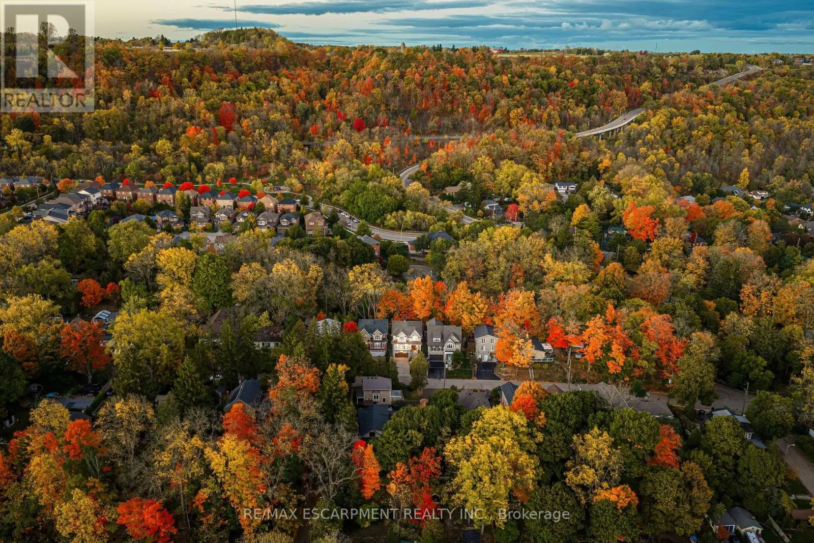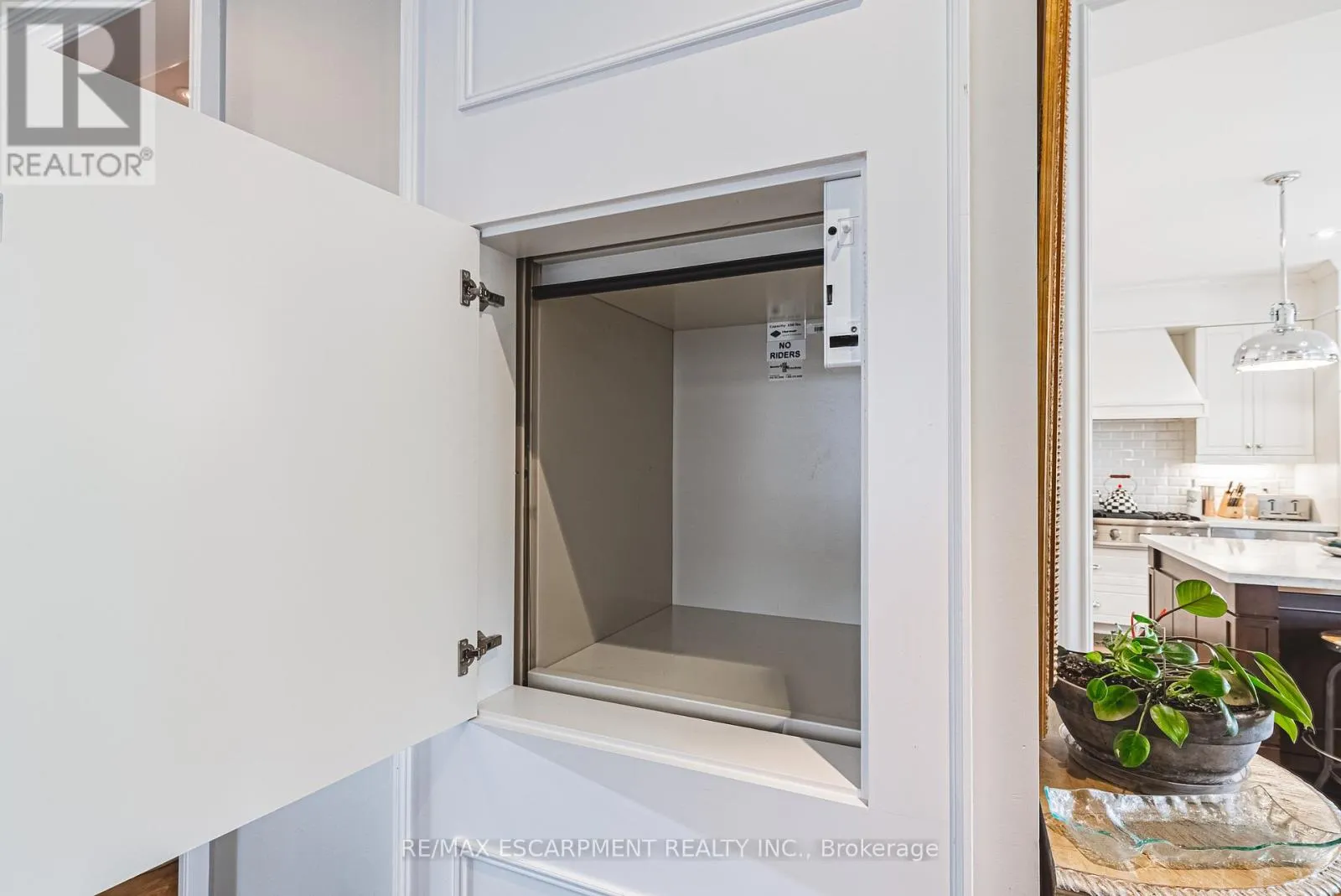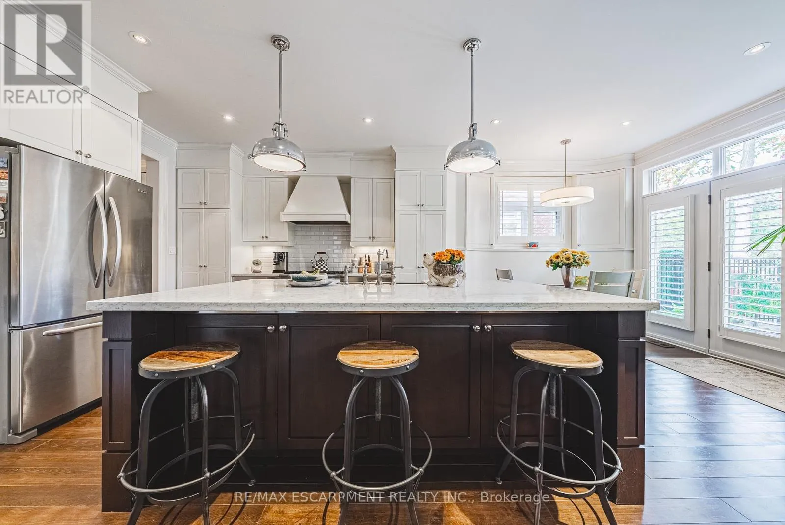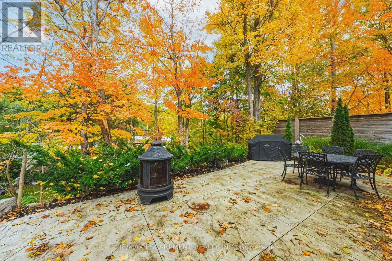 Sydenham St to Alma St Situated in prestigious Olde Dundas on a private ravine lot with panoramic views of Sydenham Creek and the surrounding conservation, this solid-stone Neven-built residence combines timeless craftsmanship with refined luxury. Inside, smooth 10-foot coffered ceilings, intricate custom millwork, and hardwood floors flow through the open-concept design. The chef's kitchen, featuring a gas Viking stove with built-in ovens, anchors the main level and opens to elegant living and dining spaces framed by oversized windows overlooking the forest. Upstairs, two primary suites each offer a spa-inspired ensuite and walk-in closet, ideal for extended family or guests. A dumbwaiter provides seamless service between levels, while thoughtful finishes such as a heated double garage and concrete driveway, backyard walkway, and rear patio reflect quality and durability throughout. The fully finished lower level includes a bedroom, full bath, recreation area, and separate access, perfect for guests, in-laws, or a future suite. Set on a quiet cul-de-sac, just moments from trails, top-rated schools, and the historic charm of downtown Dundas. (id:27476)