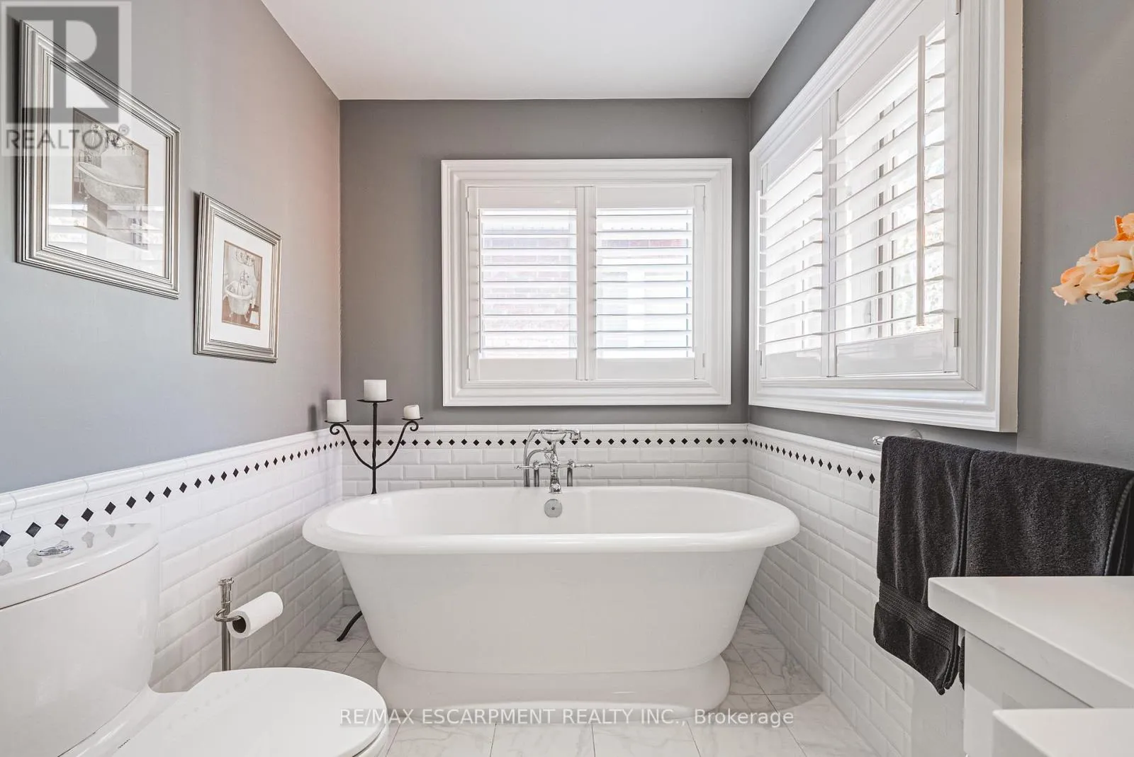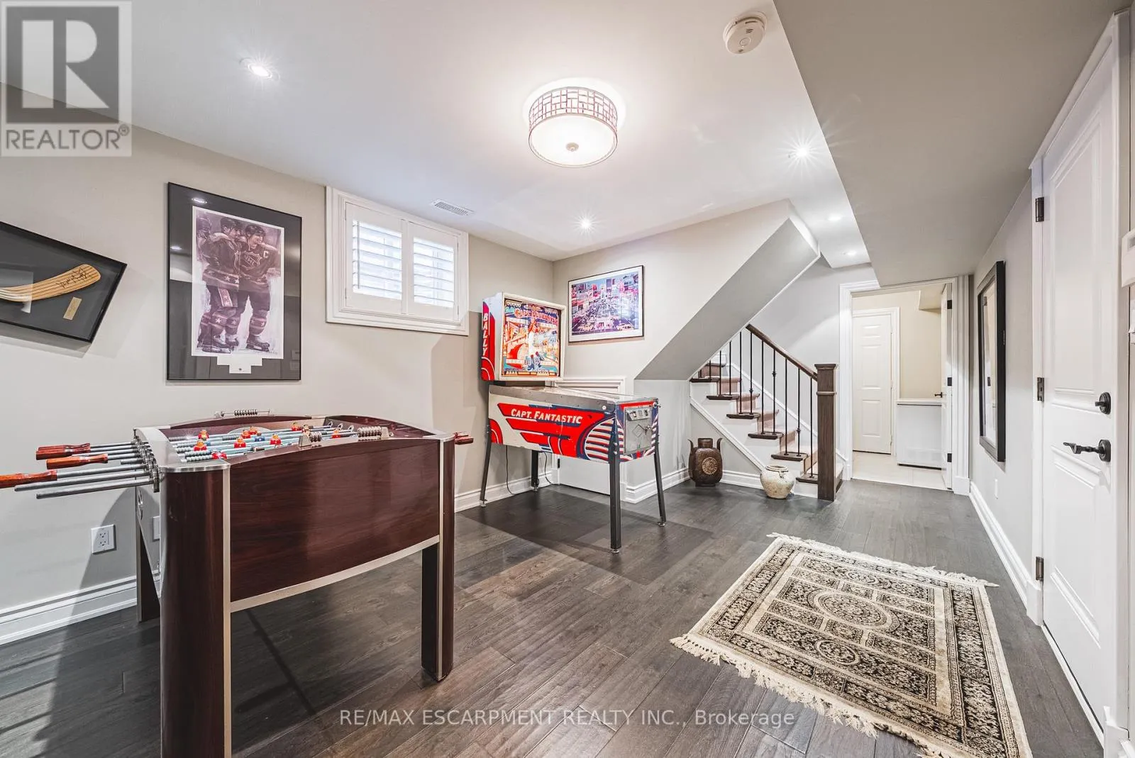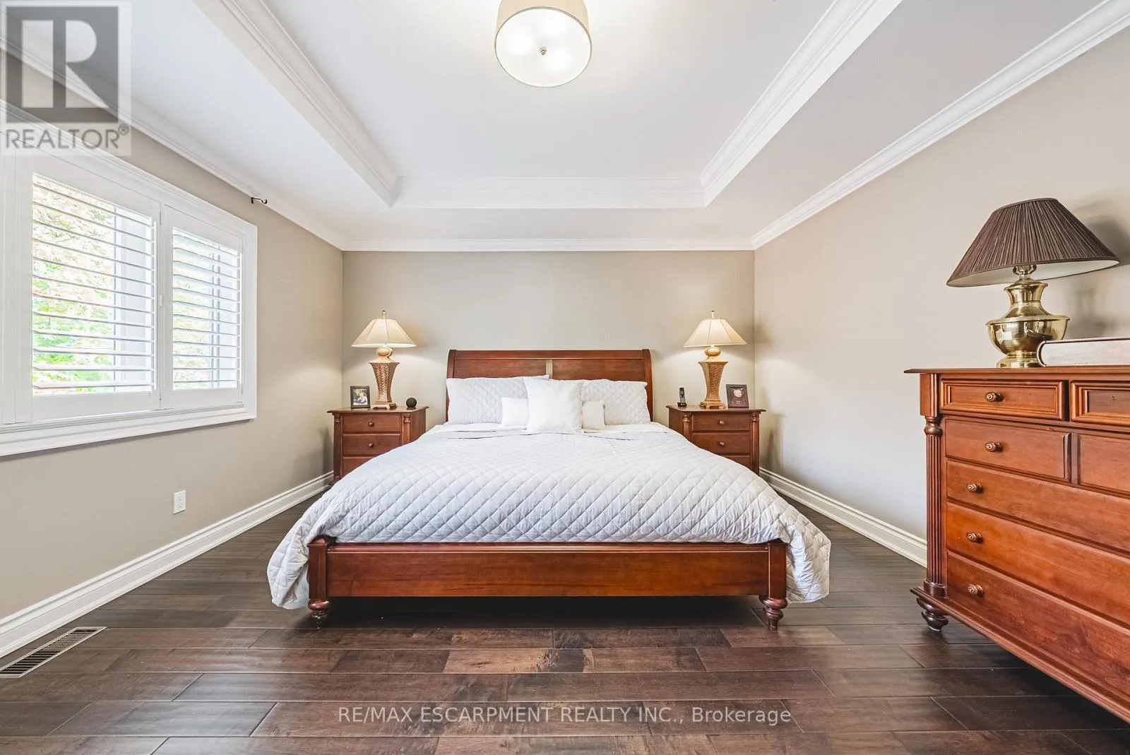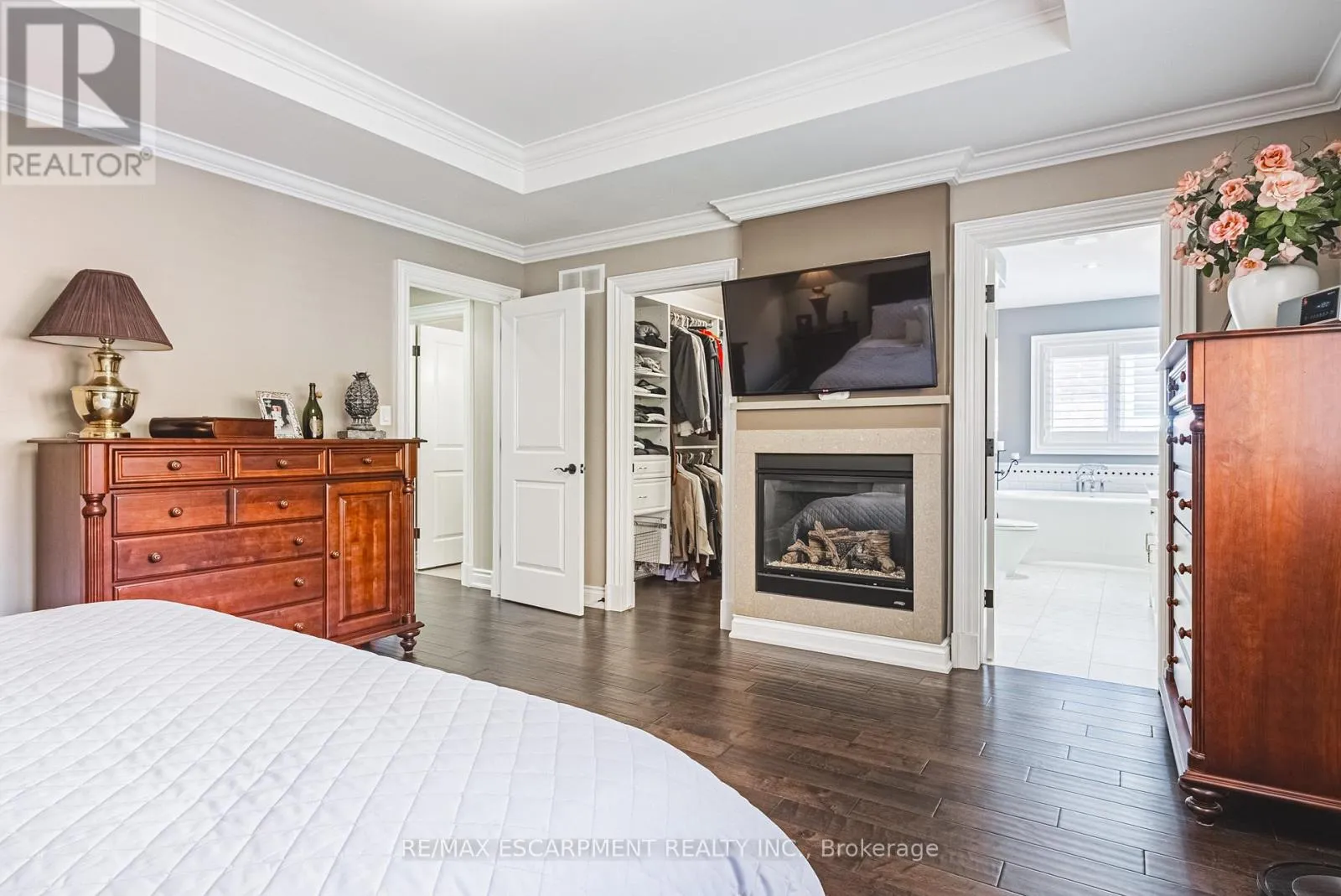 Sydenham St to Alma St Situated in prestigious Olde Dundas on a private ravine lot with panoramic views of Sydenham Creek and the surrounding conservation, this solid-stone Neven-built residence combines timeless craftsmanship with refined luxury. Inside, smooth 10-foot coffered ceilings, intricate custom millwork, and hardwood floors flow through the open-concept design. The chef's kitchen, featuring a gas Viking stove with built-in ovens, anchors the main level and opens to elegant living and dining spaces framed by oversized windows overlooking the forest. Upstairs, two primary suites each offer a spa-inspired ensuite and walk-in closet, ideal for extended family or guests. A dumbwaiter provides seamless service between levels, while thoughtful finishes such as a heated double garage and concrete driveway, backyard walkway, and rear patio reflect quality and durability throughout. The fully finished lower level includes a bedroom, full bath, recreation area, and separate access, perfect for guests, in-laws, or a future suite. Set on a quiet cul-de-sac, just moments from trails, top-rated schools, and the historic charm of downtown Dundas. (id:27476)