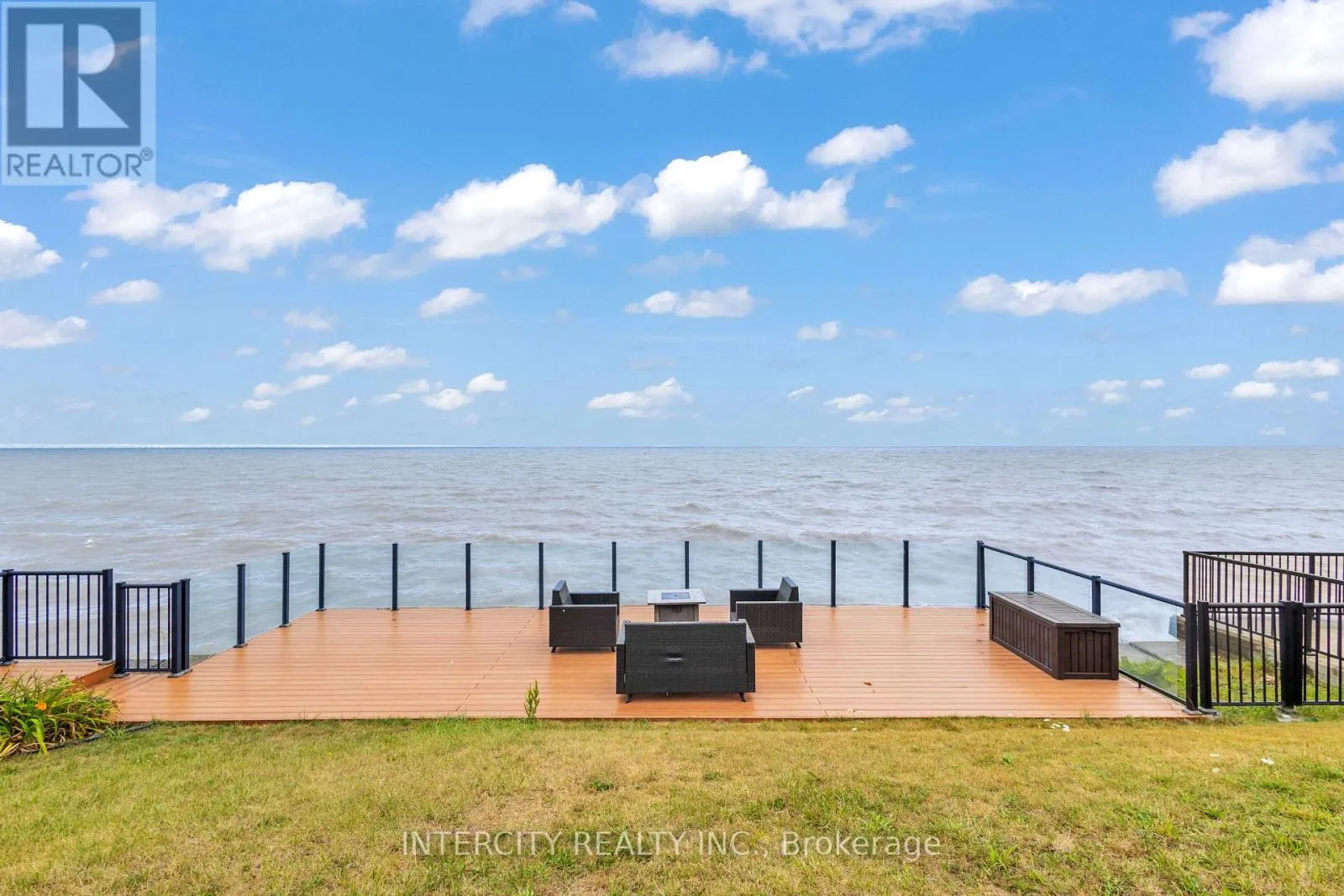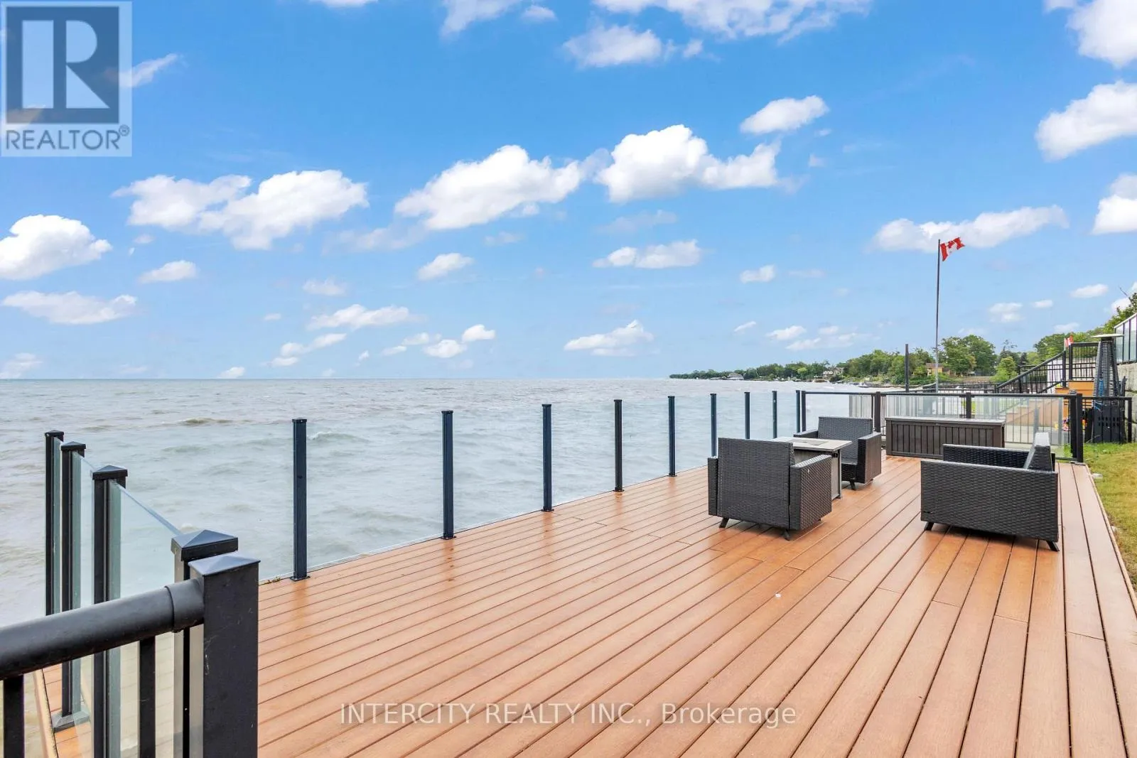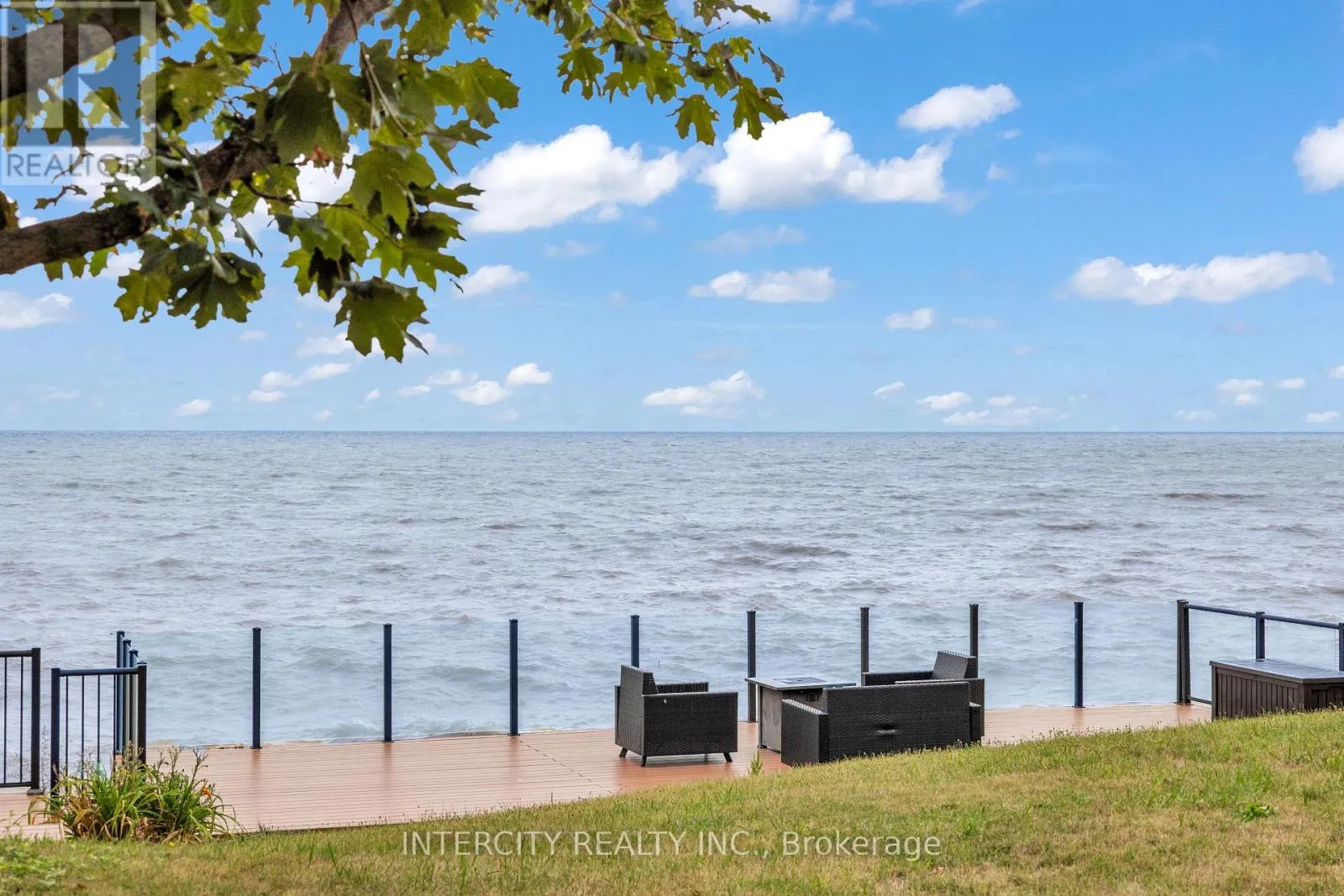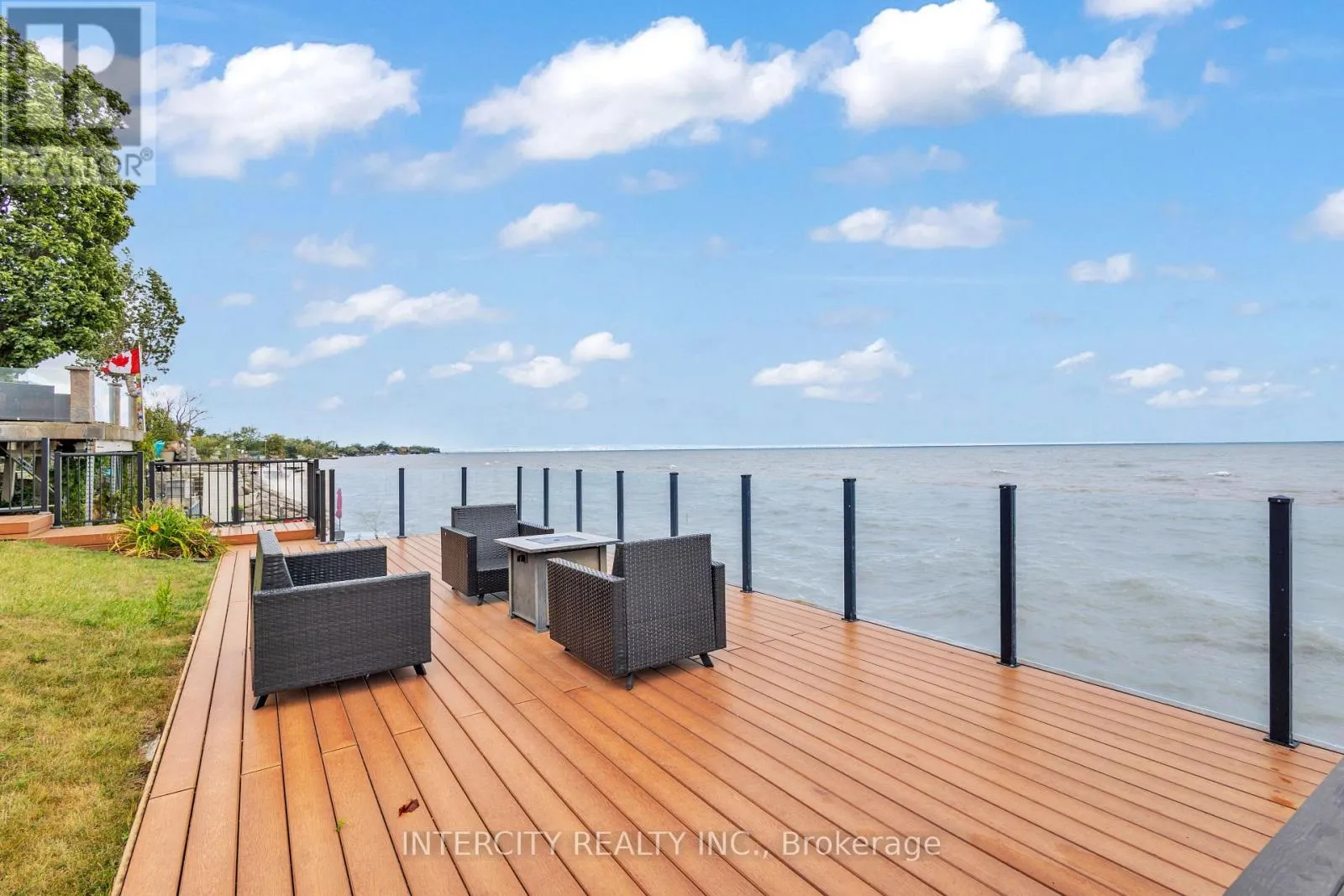North Service Rd & Lewis Rd Discover lakeside perfection. Situated on an exceptional oversized lot of approximately 59.5 ft x 150 ft with coveted deeded water access, this property offers breathtaking, unobstructed Toronto skyline views across Lake Ontario. Tucked into a tranquil cul-de-sac, this updated bungalow blends modern comfort with serene surroundings. Enter a chefs dream kitchen, boasting a substantial island, top-tier appliances, and abundant storage. The space effortlessly flows into an elevated deck of glass and light complete with a relaxing hot tub where you can savor sunsets or host gatherings with waterfront ambiance. Two cozy bedrooms and a well-appointed bathroom complete the bright, open-floor main level. Practical highlights include room for six vehicles, aluminum exterior for low upkeep, central air, and a fireplace for year-round comfort. (id:27476)