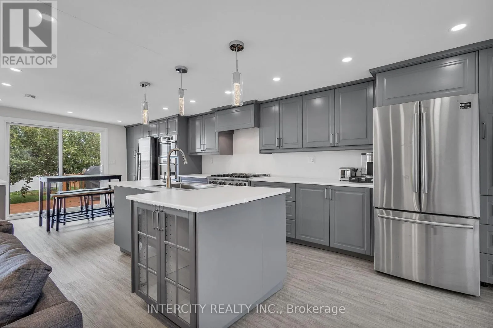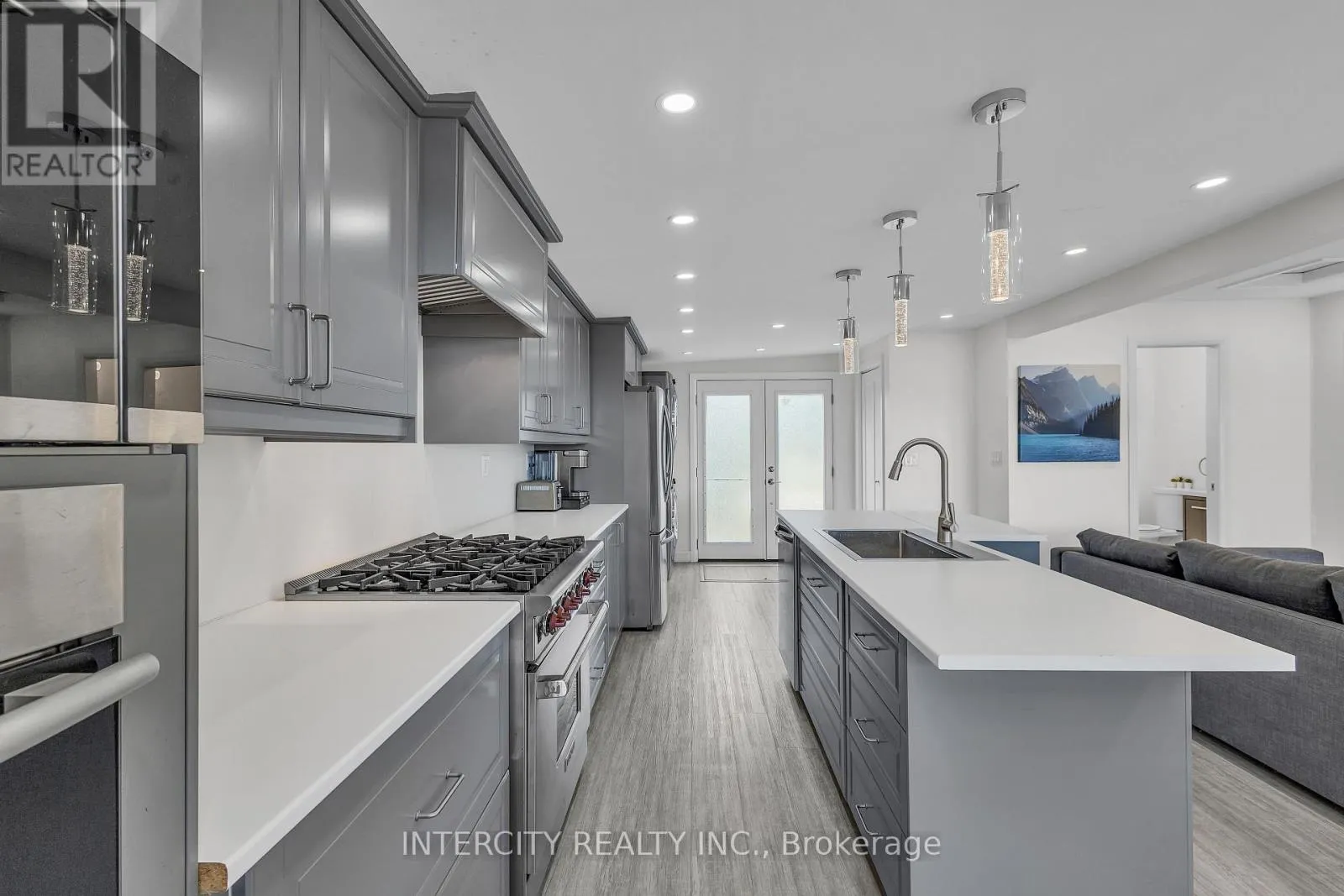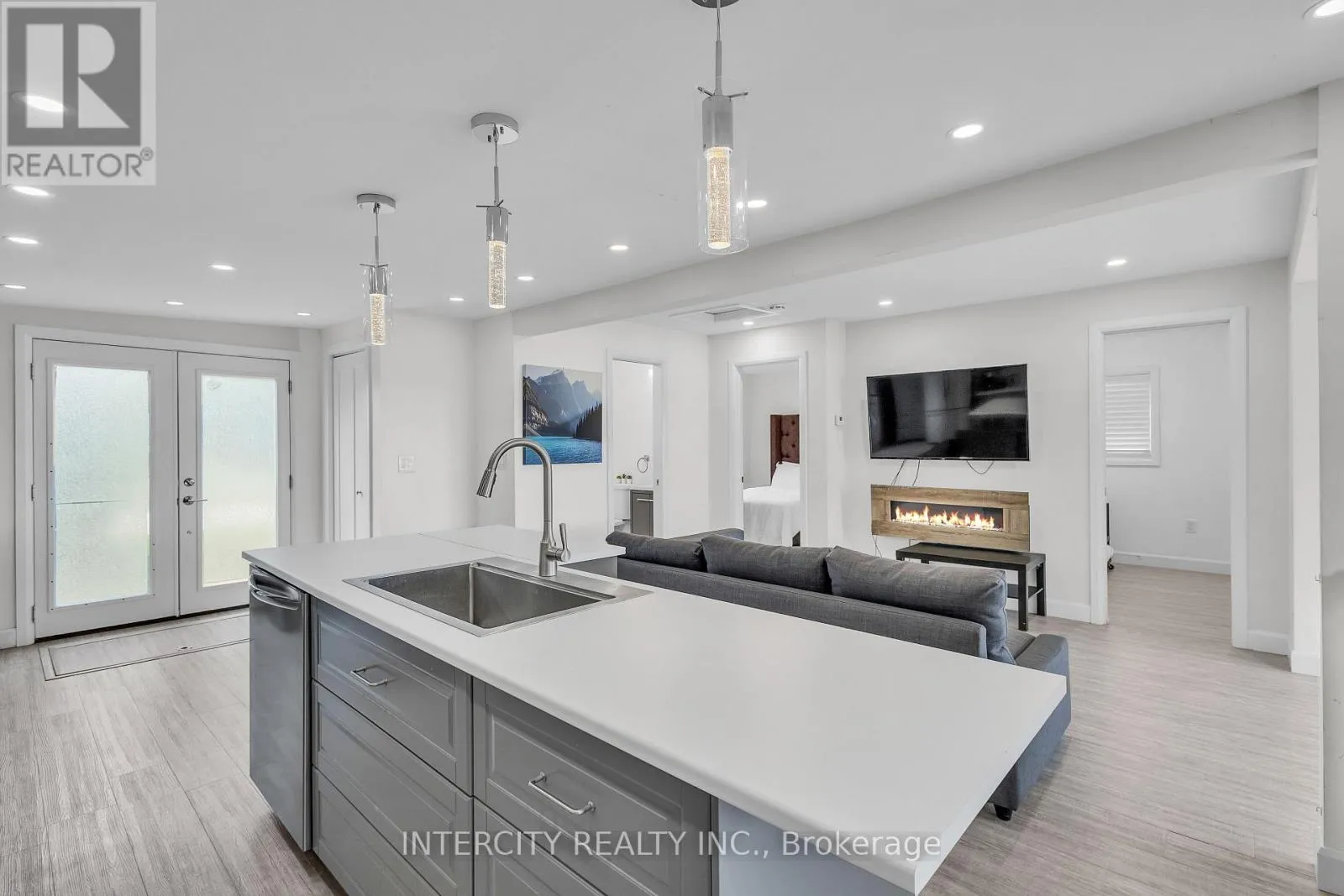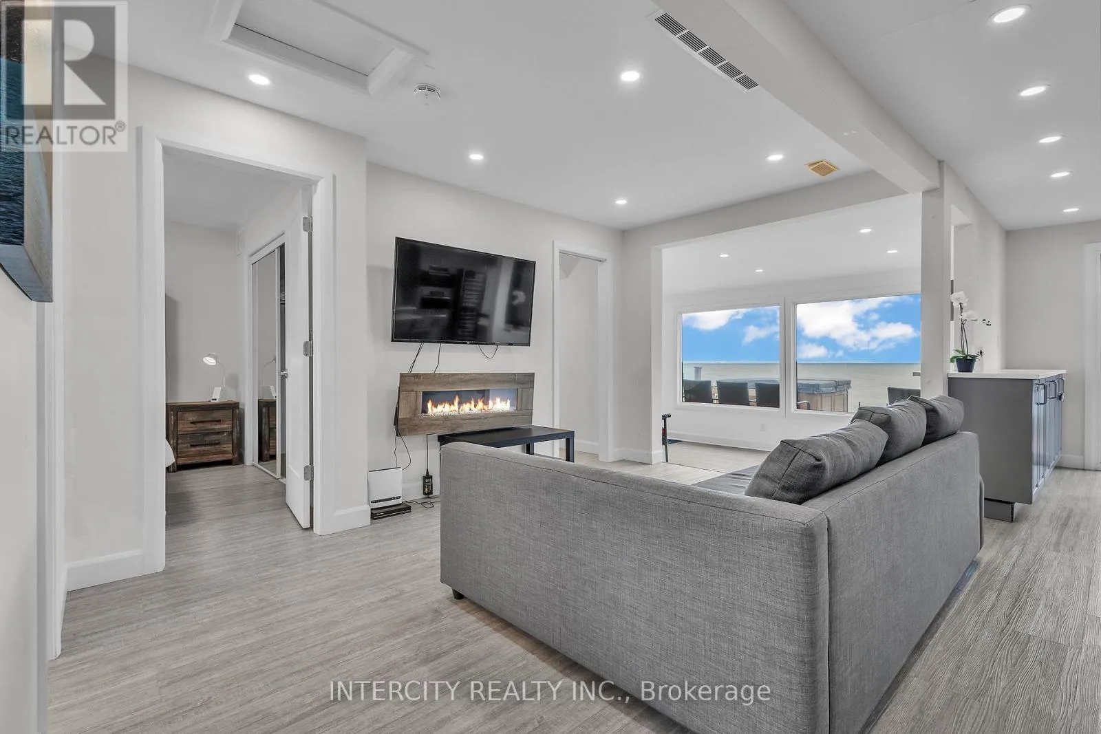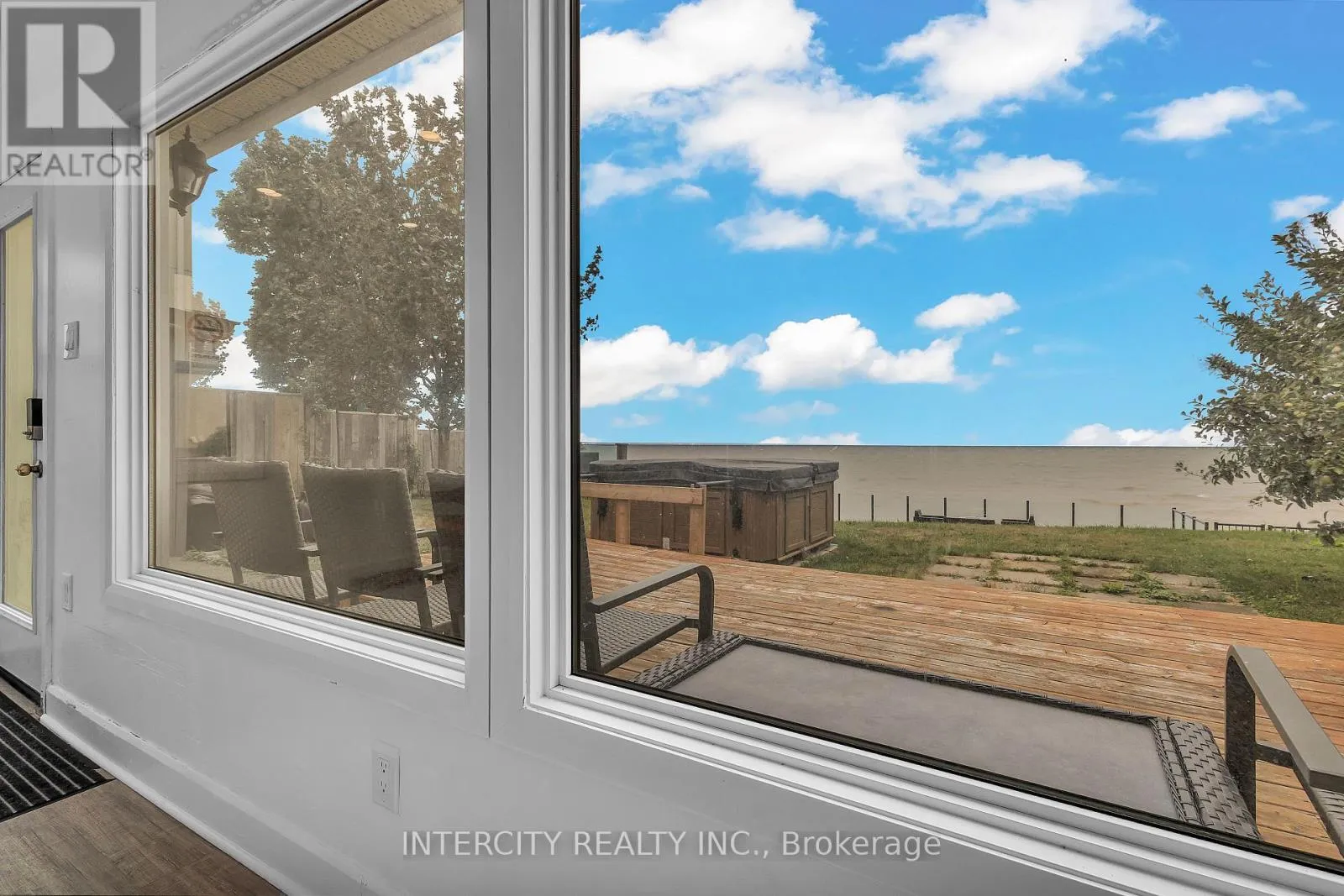 North Service Rd & Lewis Rd Discover lakeside perfection. Situated on an exceptional oversized lot of approximately 59.5 ft x 150 ft with coveted deeded water access, this property offers breathtaking, unobstructed Toronto skyline views across Lake Ontario. Tucked into a tranquil cul-de-sac, this updated bungalow blends modern comfort with serene surroundings. Enter a chefs dream kitchen, boasting a substantial island, top-tier appliances, and abundant storage. The space effortlessly flows into an elevated deck of glass and light complete with a relaxing hot tub where you can savor sunsets or host gatherings with waterfront ambiance. Two cozy bedrooms and a well-appointed bathroom complete the bright, open-floor main level. Practical highlights include room for six vehicles, aluminum exterior for low upkeep, central air, and a fireplace for year-round comfort. (id:27476)