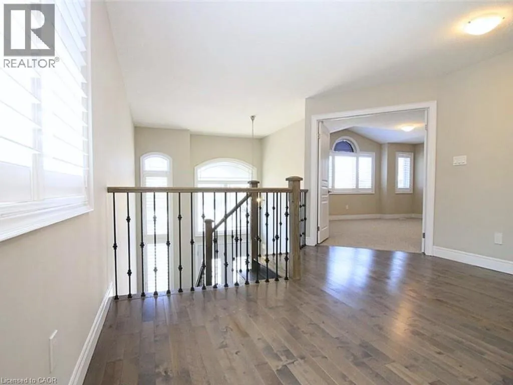 STELLE LN TO ASCOLI DR TO RIVA CRT This bright and spacious 4 bedroom, 3 bathroom home has all the space and comfort a busy family needs, inside and out! The main floor features hardwood throughout, a welcoming 2-storey foyer, and a living room with a built-in unit and gas fireplace, perfect for relaxing or movie nights. The kitchen is the heart of the home, with a large island, granite countertops, stainless steel appliances, and a built-in coffee nook. Thereâs room for everyone with both a dining room and a breakfast area, plus sliding patio doors that lead to a large deck and fully fenced backyard, great for BBQs, playtime, or family get-togethers. Upstairs, the open landing makes an ideal home office or hangout space. The primary bedroom offers a walk-in closet and ensuite with a deep soaker tub, double vanity, and a glass shower. Youâll also love the main floor laundry, powder room, and double garage with inside entry, plus tandem driveway parking for two. With lots of natural light, California shutters, and easy access to parks, schools, shopping, and the Lincoln M. Alexander Parkway, this home is made for modern family living. **Extra Details: $3,650/month + 70% of utilities. Backyard deck is exclusive use for upper unit. Full access of double-car garage + two (2) dedicated tandem parking spaces included. RSA. (Photos were taken prior to the current tenancy.)** (id:27476)