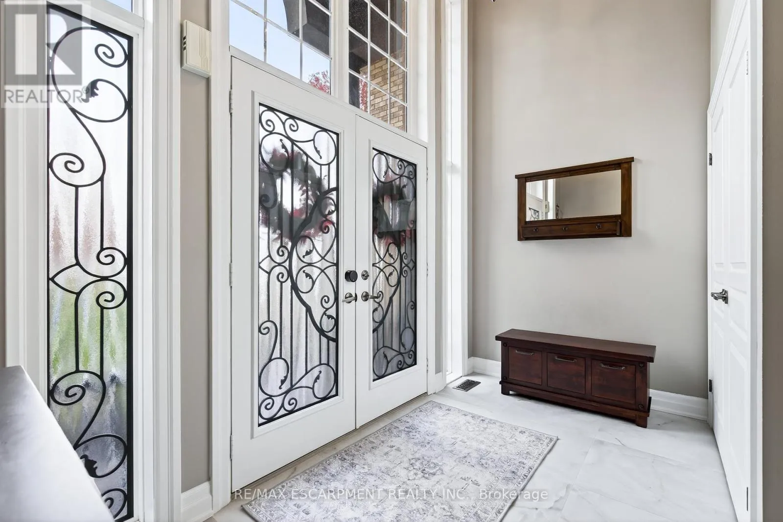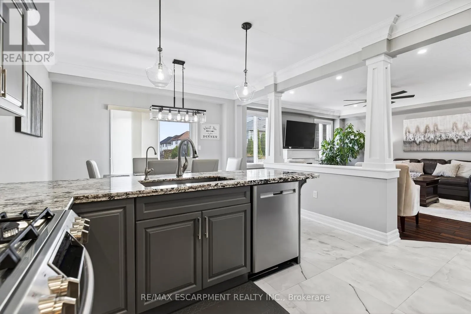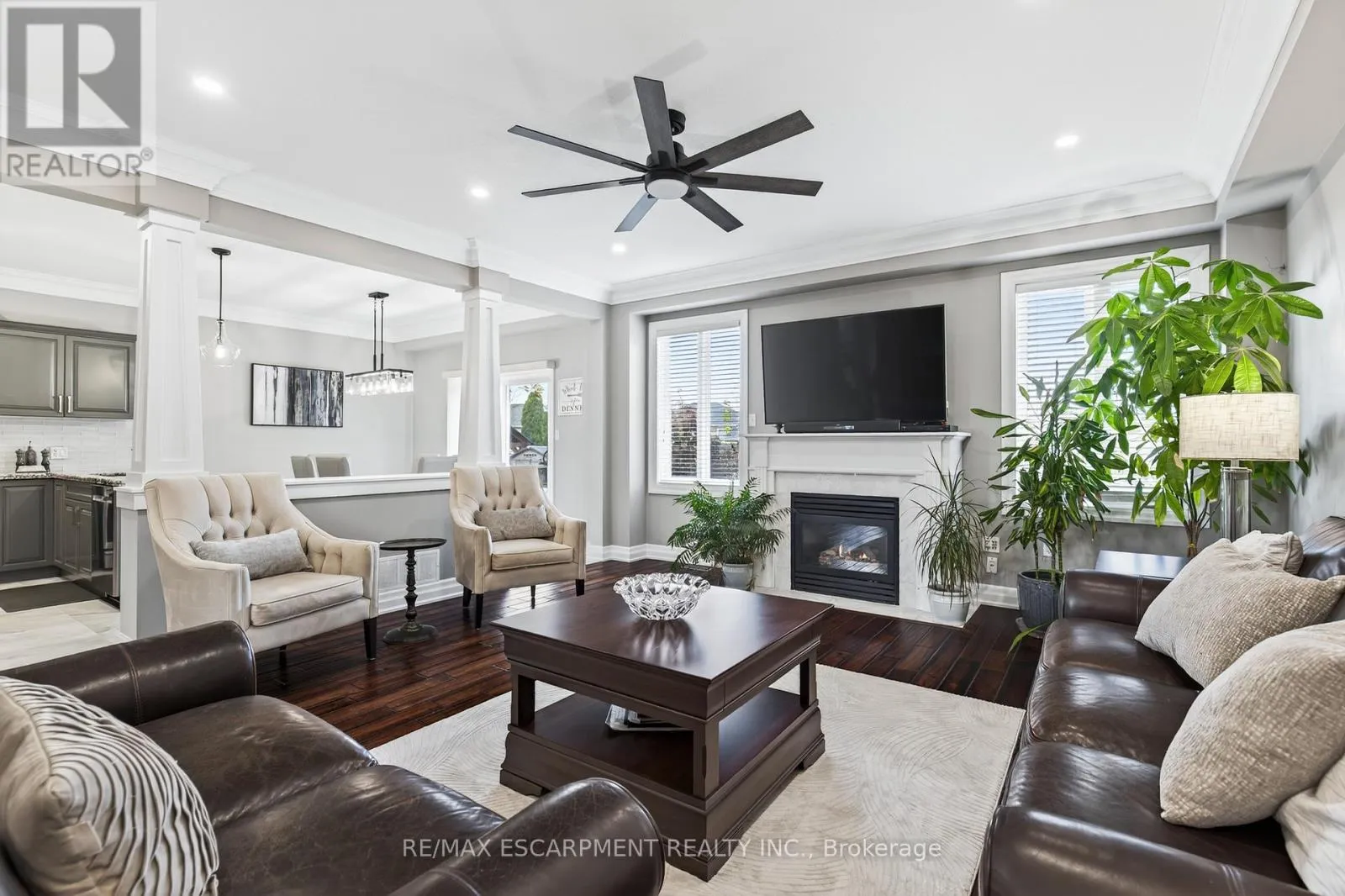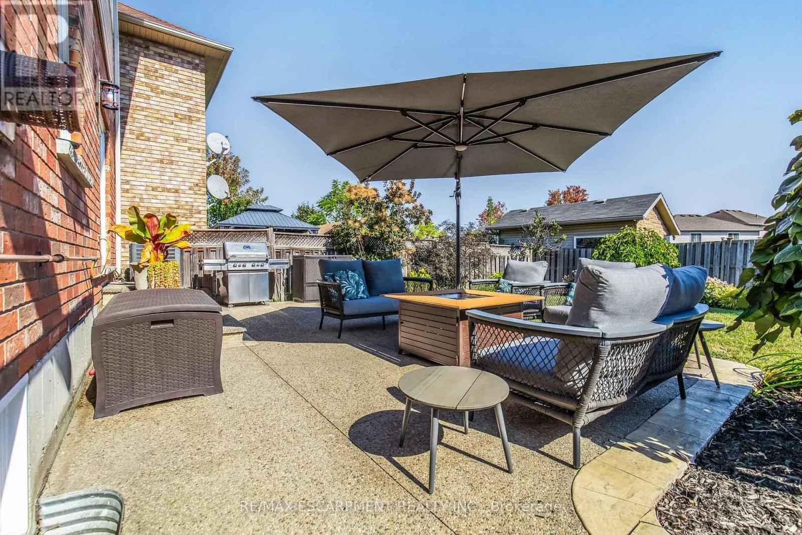 Cross Streets: Sulmona Dr. ** Directions: Rymal Rd E - Sulmona Dr - Assisi St. Stunning 4 + 1 bedroom, 3 + 1 bath home offering over 3,700 sq. ft. of finished living space and extensive upgrades throughout. The main floor features 24x24 porcelain tiles, 9" plaster crown moulding, marble-surround fireplace, custom pantry with granite counters and LED lighting, and a beautifully refinished oak staircase with iron spindles. Upstairs upgrades include new engineered hardwood, fully finished laundry room, a primary suite with a spa-like ensuite featuring 24x48 porcelain tiles and a full glass shower, and a full IKEA PAX wardrobe system. Fully finished basement features a spacious rec room, bedroom & full bath. The exterior showcases an exposed aggregate and stamped concrete driveway, hurricane-rated roof shingles('22) and a stunning backyard patio with a natural gas BBQ line, perfect for entertaining. Conveniently located close to parks, schools, trails, and major amenities, a true turn-key home in a sought-after location! (id:27476)