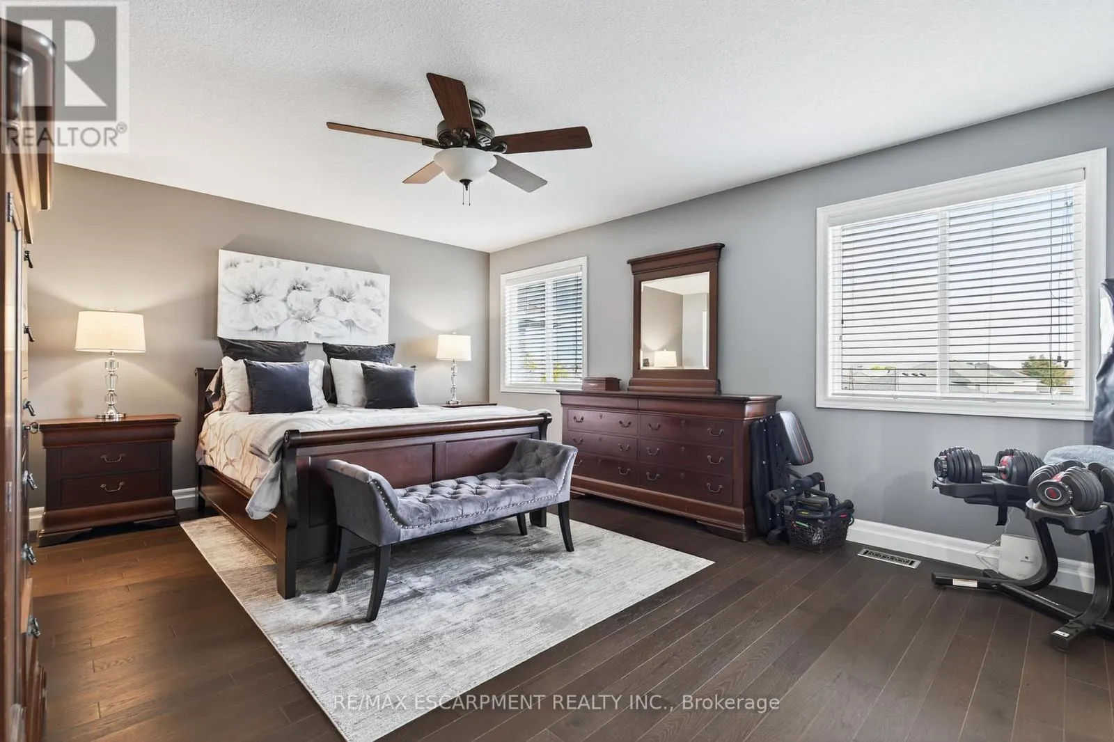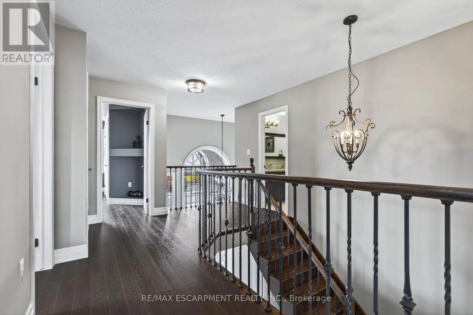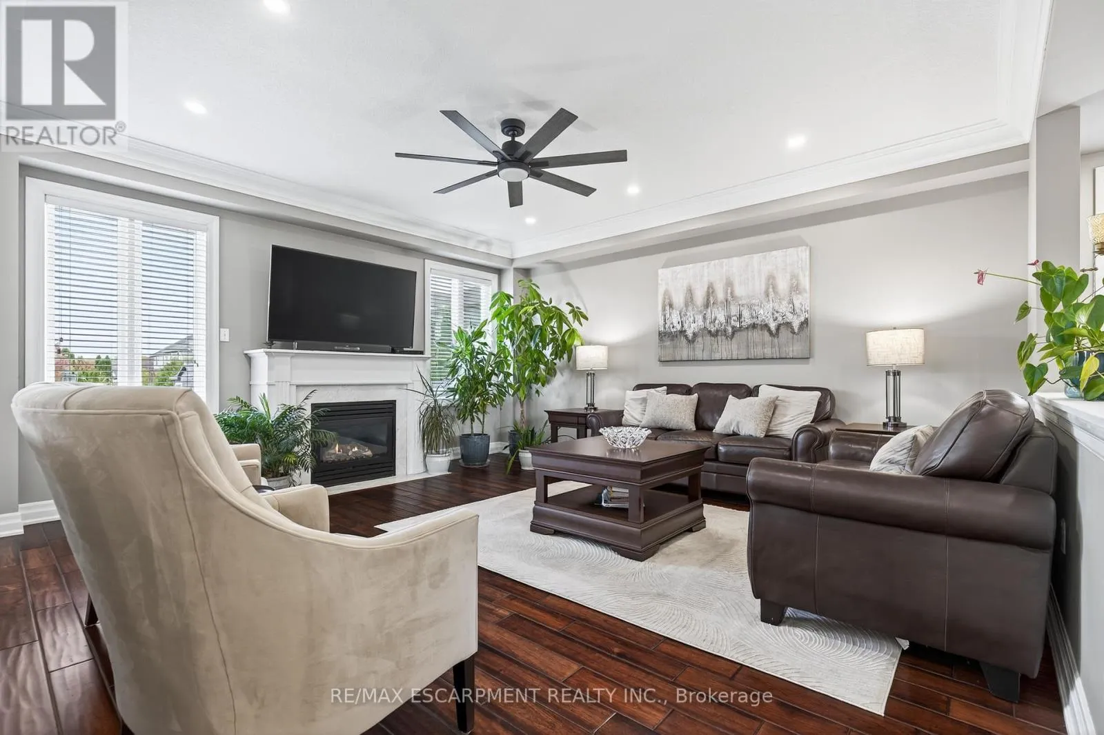 Cross Streets: Sulmona Dr. ** Directions: Rymal Rd E - Sulmona Dr - Assisi St. Stunning 4 + 1 bedroom, 3 + 1 bath home offering over 3,700 sq. ft. of finished living space and extensive upgrades throughout. The main floor features 24x24 porcelain tiles, 9" plaster crown moulding, marble-surround fireplace, custom pantry with granite counters and LED lighting, and a beautifully refinished oak staircase with iron spindles. Upstairs upgrades include new engineered hardwood, fully finished laundry room, a primary suite with a spa-like ensuite featuring 24x48 porcelain tiles and a full glass shower, and a full IKEA PAX wardrobe system. Fully finished basement features a spacious rec room, bedroom & full bath. The exterior showcases an exposed aggregate and stamped concrete driveway, hurricane-rated roof shingles('22) and a stunning backyard patio with a natural gas BBQ line, perfect for entertaining. Conveniently located close to parks, schools, trails, and major amenities, a true turn-key home in a sought-after location! (id:27476)