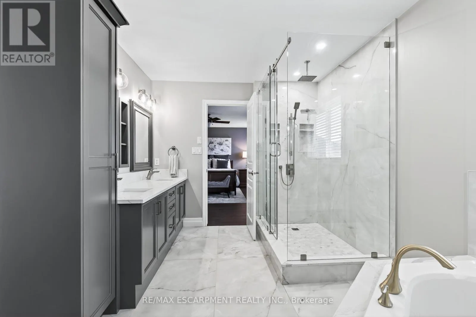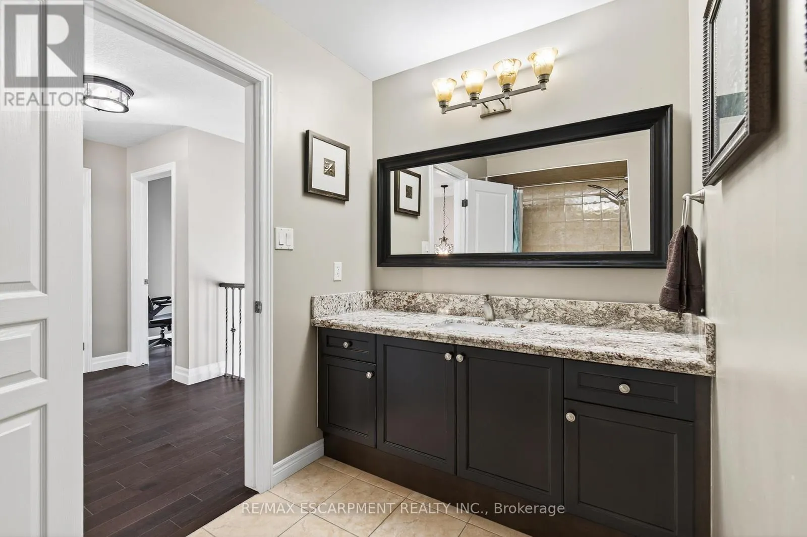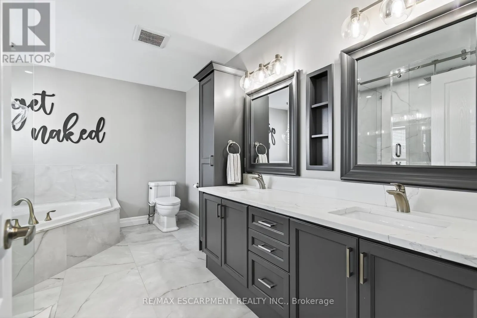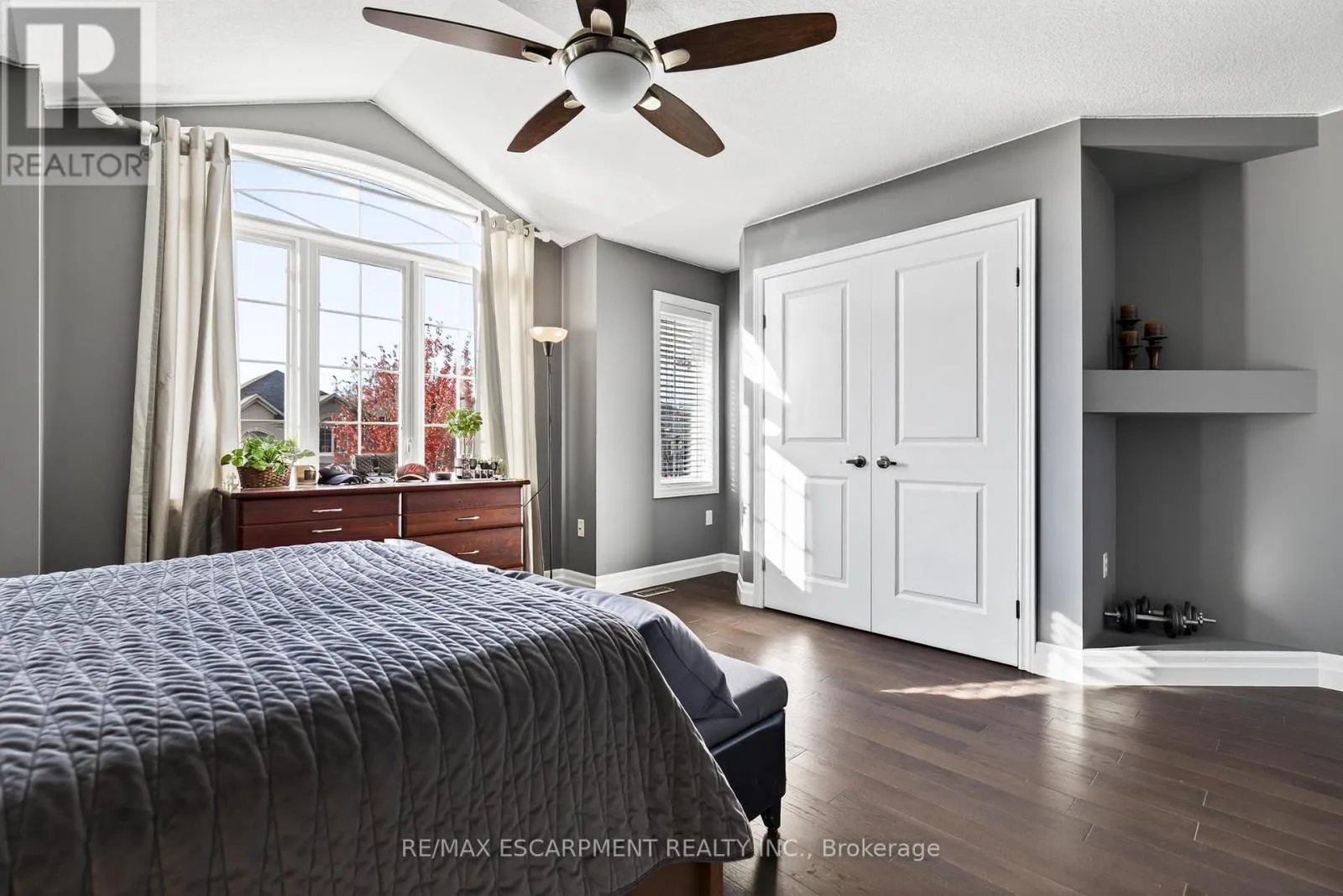 Cross Streets: Sulmona Dr. ** Directions: Rymal Rd E - Sulmona Dr - Assisi St. Stunning 4 + 1 bedroom, 3 + 1 bath home offering over 3,700 sq. ft. of finished living space and extensive upgrades throughout. The main floor features 24x24 porcelain tiles, 9" plaster crown moulding, marble-surround fireplace, custom pantry with granite counters and LED lighting, and a beautifully refinished oak staircase with iron spindles. Upstairs upgrades include new engineered hardwood, fully finished laundry room, a primary suite with a spa-like ensuite featuring 24x48 porcelain tiles and a full glass shower, and a full IKEA PAX wardrobe system. Fully finished basement features a spacious rec room, bedroom & full bath. The exterior showcases an exposed aggregate and stamped concrete driveway, hurricane-rated roof shingles('22) and a stunning backyard patio with a natural gas BBQ line, perfect for entertaining. Conveniently located close to parks, schools, trails, and major amenities, a true turn-key home in a sought-after location! (id:27476)