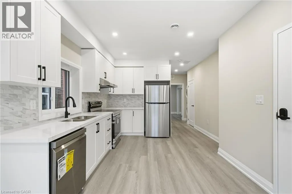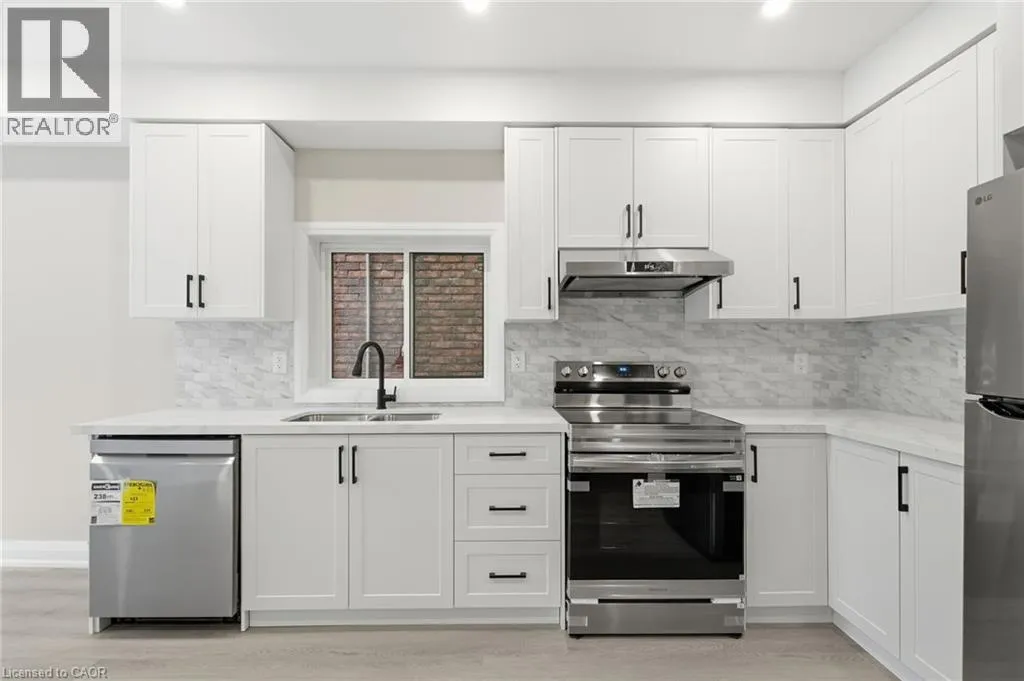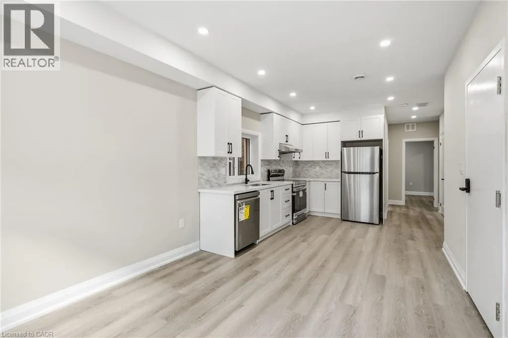 North on Sanford Ave N, Left on Cannon St E Three-Bedroom Unit (Upper Level or Loft-Style) Experience brand-new, top-to-bottom ultra-modern living in the heart of Central Hamilton. This spacious 3-bedroom unit features a bright open-concept layout with custom kitchen cabinetry, quartz countertops, stainless steel appliances, and luxury vinyl flooring throughout. Complete with LED pot lights, a fully redesigned bathroom with modern finishes, and upgraded HVAC. Located just seconds from Hamilton General Hospital, the GO Station, the Arts District, and the Bayfront waterfront. Enjoy private parking, in-suite laundry, and a separate entranceâperfect for professionals or families seeking stylish city living. (id:27476)