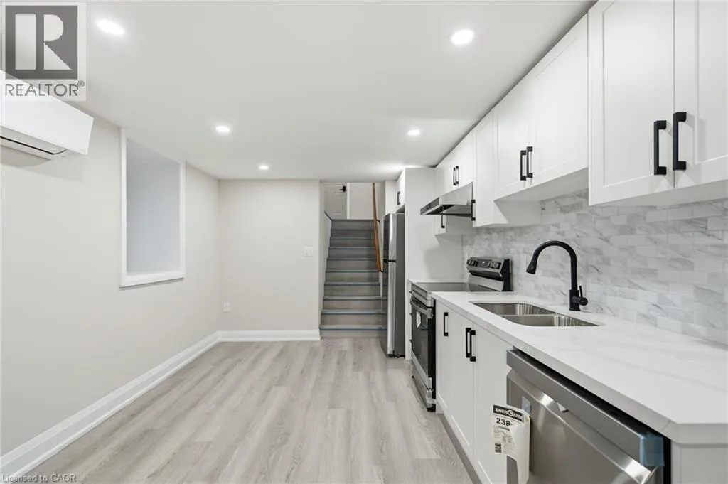 North on Sanford Ave N, Left on Cannon St E One-Bedroom Unit (Basement Level) Designed with style and functionality, this unit includes a custom kitchen with quartz countertops, stainless steel appliances, and open-concept living. Luxury vinyl flooring, LED lighting, and a newly finished bathroom complete the space. Enjoy a private entrance and brand-new Dual Split Unit Heating and Cooling system for year-round comfort. Perfectly located just seconds from the hospital, GO Station, Arts District, and waterfront. (id:27476)