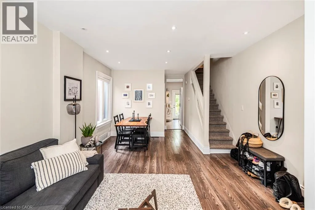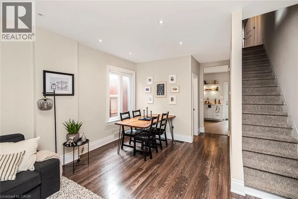 Main Street West right on Queen Street South ,right on Hunter Street Fully renovated 2.5-storey detached home in the heart of Hamilton! Main floor features a bright family and dining area, 3-piece bathroom, updated kitchen with quartz countertops, laundry, and walkout to a fully fenced backyard. Second floor offers 3 bedrooms and a 4-piece bathroom. Finished attic adds 2 more bedroomsâideal for guests, a home office, or extended family. Partially finished basement could be developed and includes a walkout door to the backyard. Hardwood floors throughoutâno carpets! Walk to Locke Streetâs vibrant shops and cafes, Hamilton GO Centre, and enjoy easy access to city buses. Hunter Street blends heritage charm with modern convenience in one of Hamiltonâs most desirable communities. (id:27476)