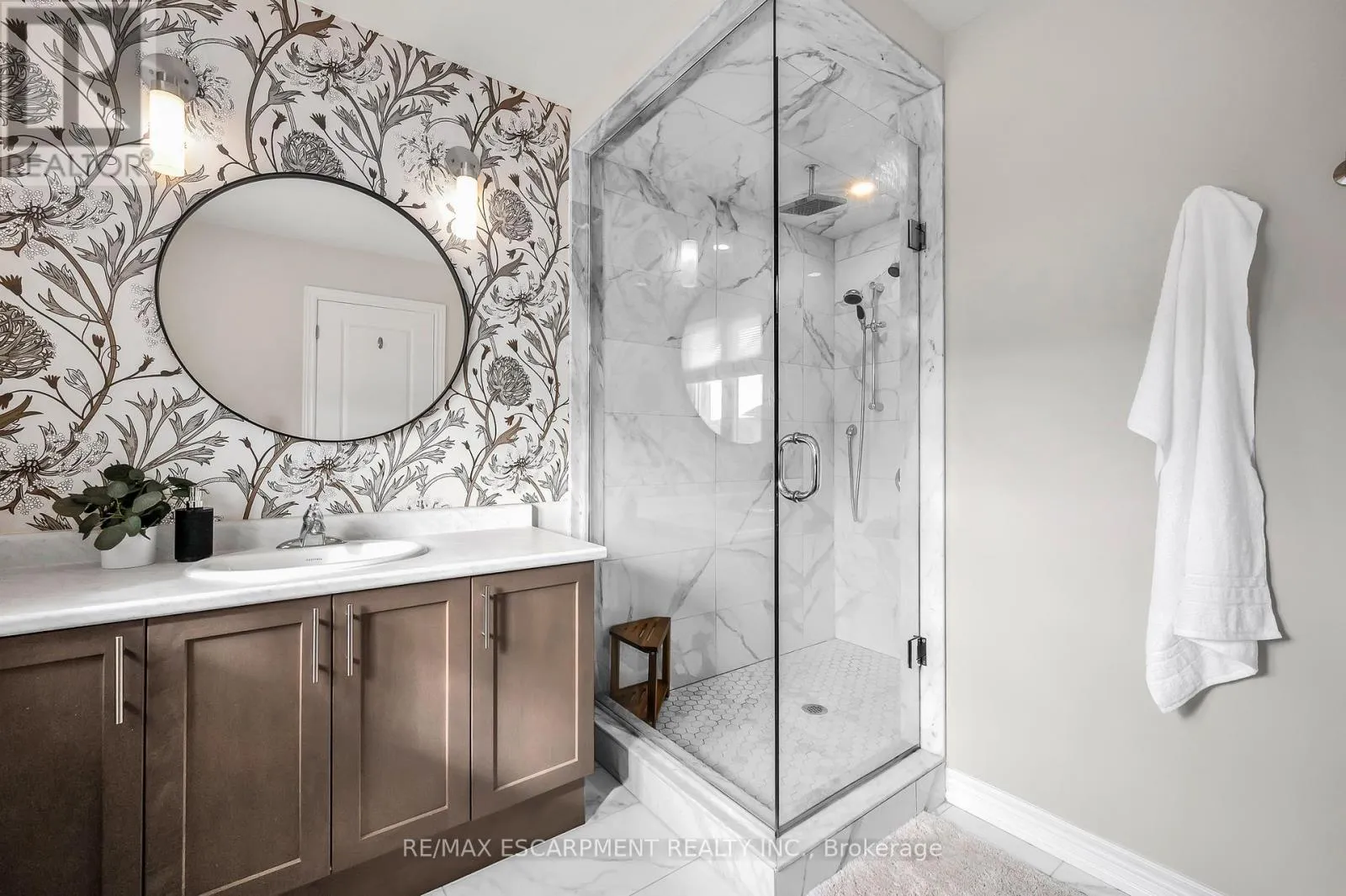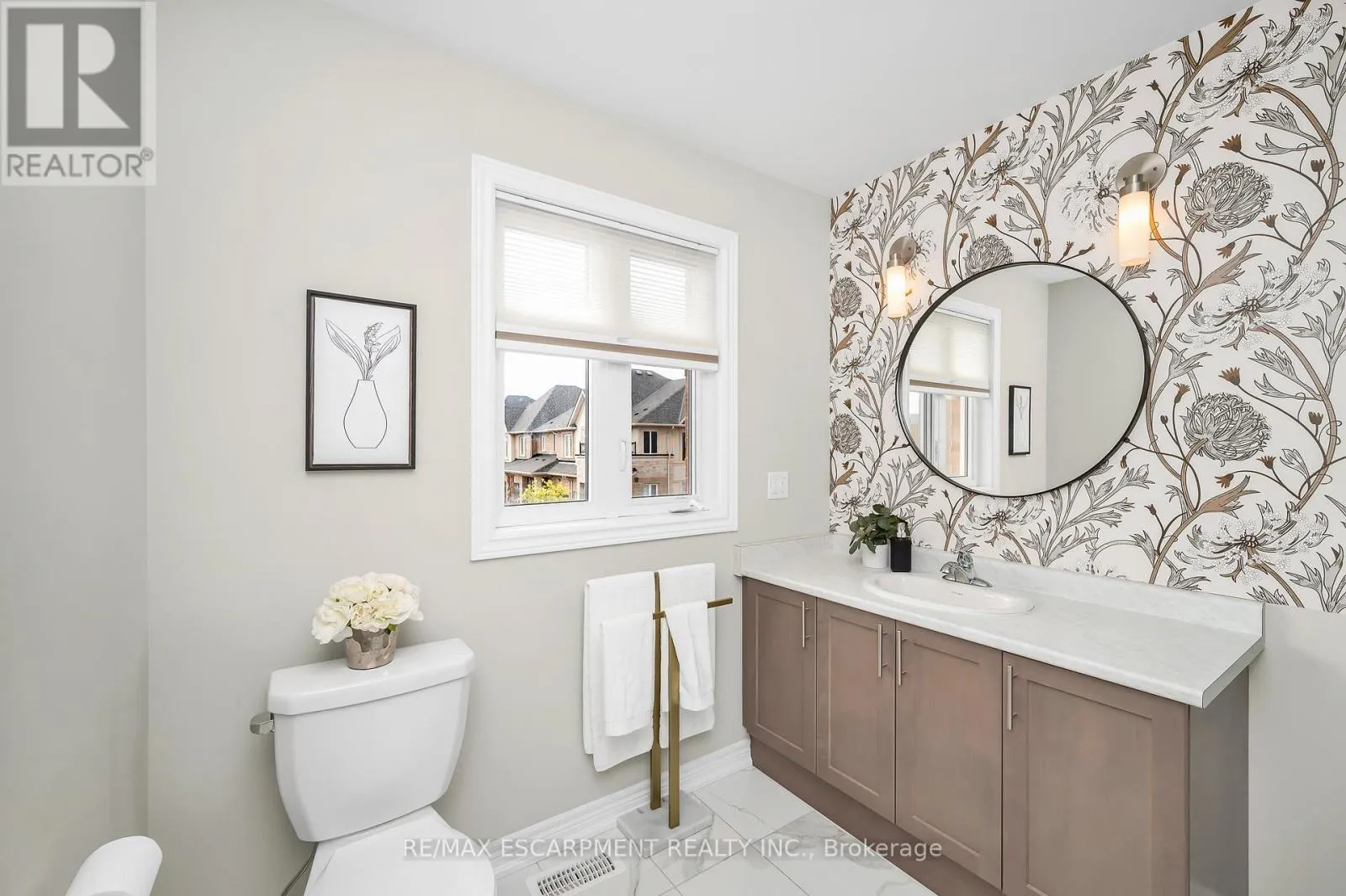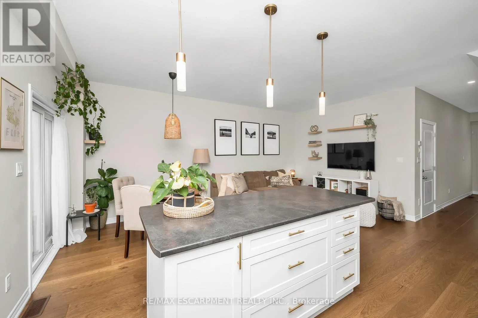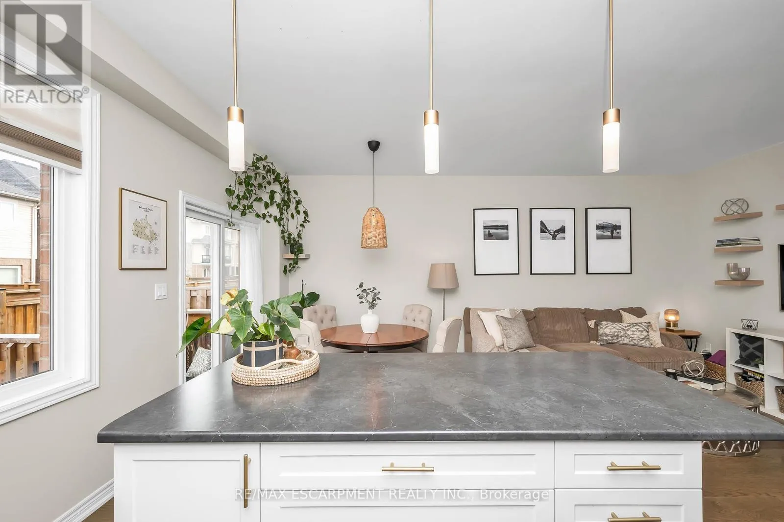 Cross Streets: Barton St & Fifty Rd. ** Directions: East of Fifty Rd, North of Barton St. Tucked along the base of the Escarpment, this 3-bedroom, 3-bath townhouse in Winona offers modern living surrounded by nature. Only three years new with low condo fees, this home stands out with smart, stylish upgrades and a functional layout designed for everyday comfort.The main floor features hardwood flooring throughout and an open-concept kitchen, dining, and living area that flows seamlessly to the backyard (fencing can be extended to fully enclose yard). A convenient powder room and interior entry to the attached garage add to the practicality of the space.Upstairs, you'll find three generous bedrooms, two full bathrooms, and the convenience of second-floor laundry. The bright primary suite offers escarpment views through a large window, a walk-in closet, and a spacious ensuite bathroom with a spa-inspired shower upgraded with glass walls, a ceiling-mounted rainfall shower head, and modern fixtures.The full basement has been framed in and is ready for your customization.Located in a quiet, family-friendly community, this home is surrounded by the best of Winona: Winona Park and the Peach Festival just across the street, easy access to the Bruce Trail, Fifty Point Beach and Conservation Area, and nearby wine country. You'll love the balance of nature and convenience - with great schools, local shops, HSR transit steps away, quick QEW access, and a major shopping centre with every amenity you need.Stylish, functional, and ideally located - this Winona gem truly offers the best of all worlds. (id:27476)