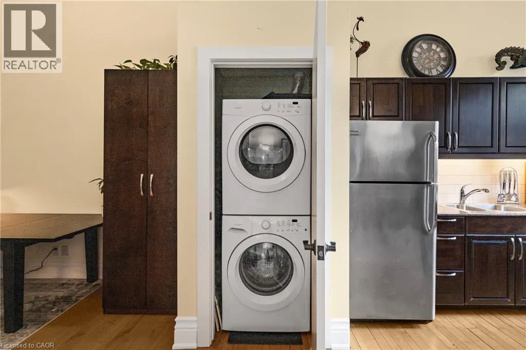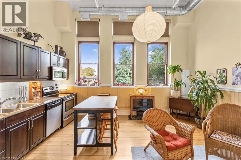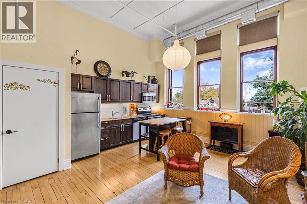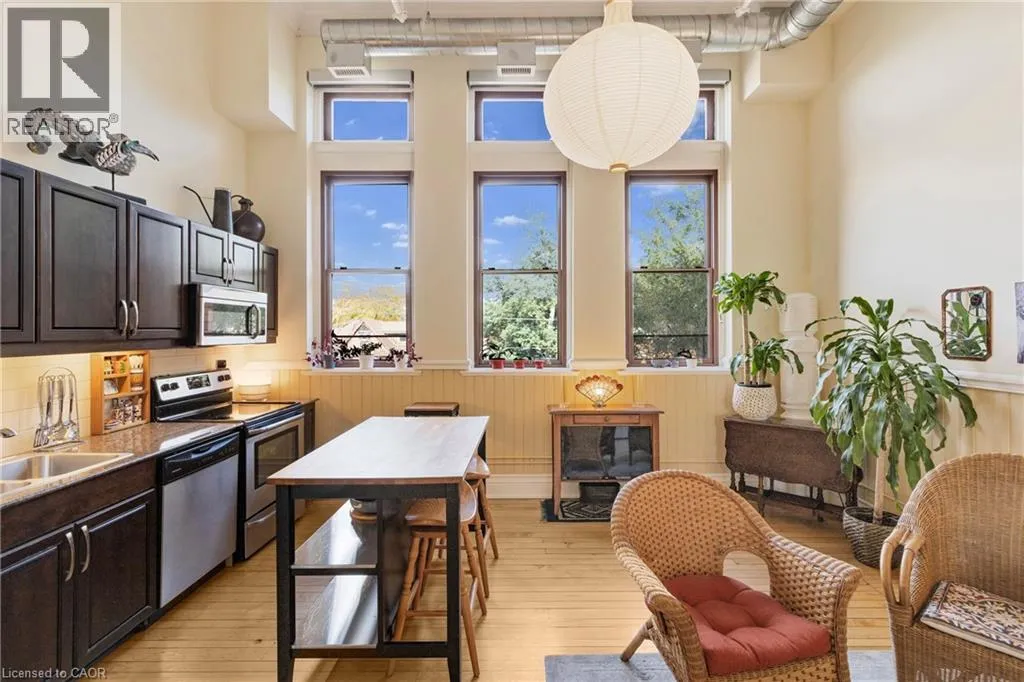 Wentworth St - Stinson St. Welcome to the historic Stinson School Lofts, where heritage charm meets modern living. This bright and airy studio loft features soaring 13 foot ceilings, original hardwood floors, and oversized windows that flood the space with natural light. Designed for convenience and character, this open concept suite offers in unit laundry, all major appliances, and an assigned parking spot in the rear lot. Perfect for students, professionals, or down-sizers, this unique loft sits steps from the Bruce Trail, GO Station, and public transit with direct routes to McMaster University, Ancaster Meadowlands and Stoney Creek. Situated between three major hospitals and close to downtown, itâs an ideal spot for commuters or anyone seeking a walkable, connected lifestyle. Experience the charm of an 1800s schoolhouse reimagined into modern, boutique style living in one of Hamiltonâs most iconic condo buildings. (id:27476)