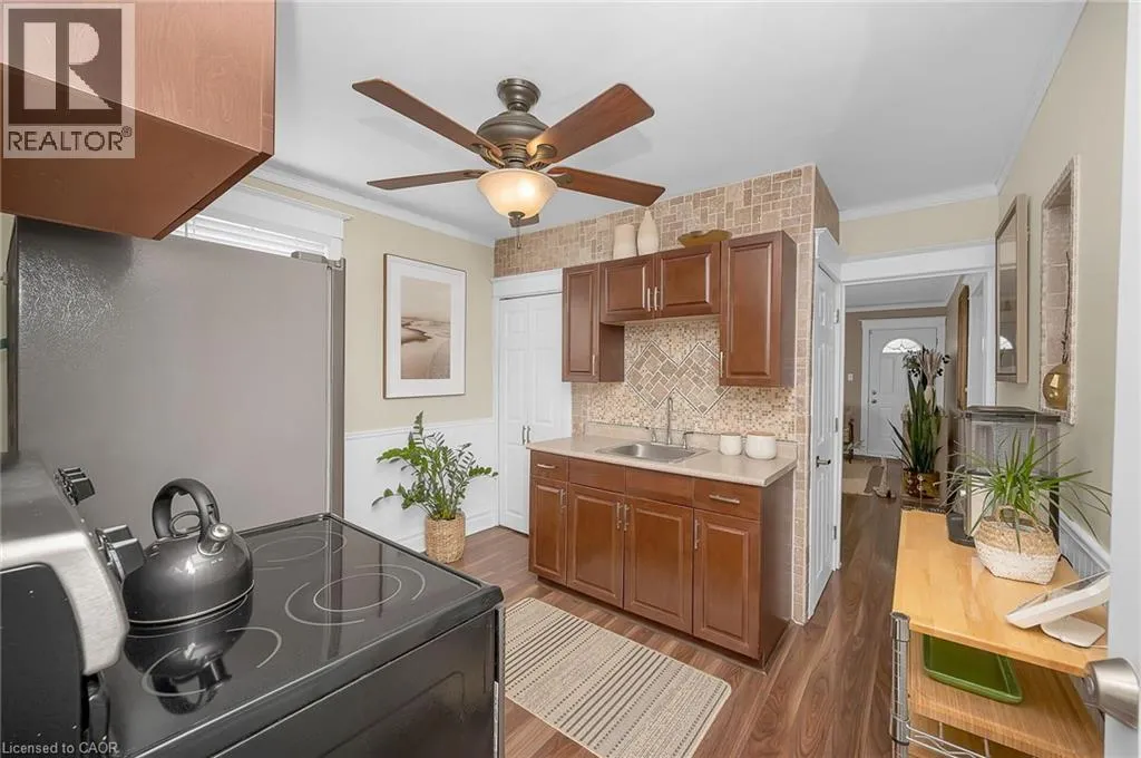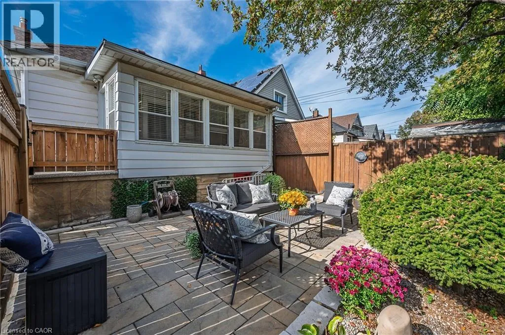 Kenilworth to Dunsmure to Wexford Welcome home to this gorgeous bungalow with incredible curb appeal on a sunny corner lot, wrapped in perennial gardens, a covered front porch, and driveway parking. Inside, the living/dining areas feature stylish laminate flooring and an efficient kitchen with stainless steel appliances, mosaic tile backsplash and a pantry. Two generous bedrooms boast luxury broadloom and share an updated 4-pc bath. A light-filled sunroom off the kitchen opens to your private backyard oasis, completed in 2022 with a gorgeous interlock patio, manicured perennial beds and new fencing. Lower level with separate entrance, offers laundry with a new washer/dryer (2023), an ideal hobby space or future finishing - bring your vision. Walk to the trendy Ottawa St. shops, restaurants and market; minutes to Gage Park and Hamilton Stadium (Tim Hortons Field); quick errands at Centre on Barton with all the shops you could need and easy commuting via RHVP/QEW, downtown and the Mountain. This is the one, book your showing today! (id:27476)