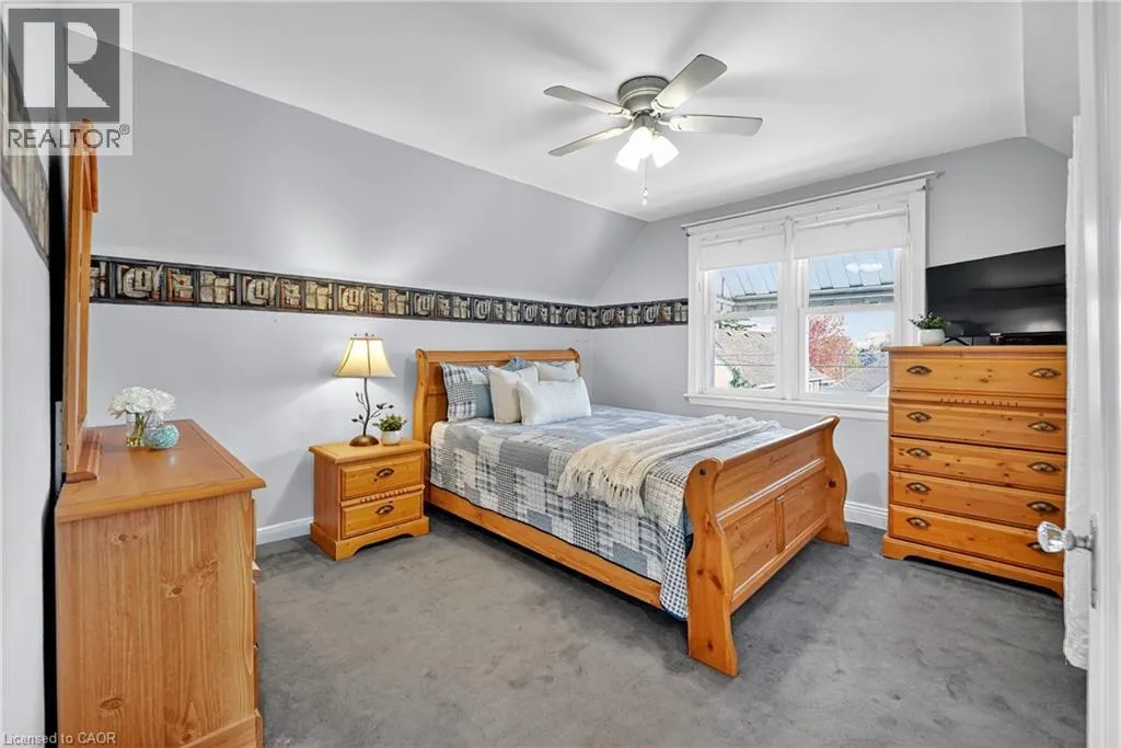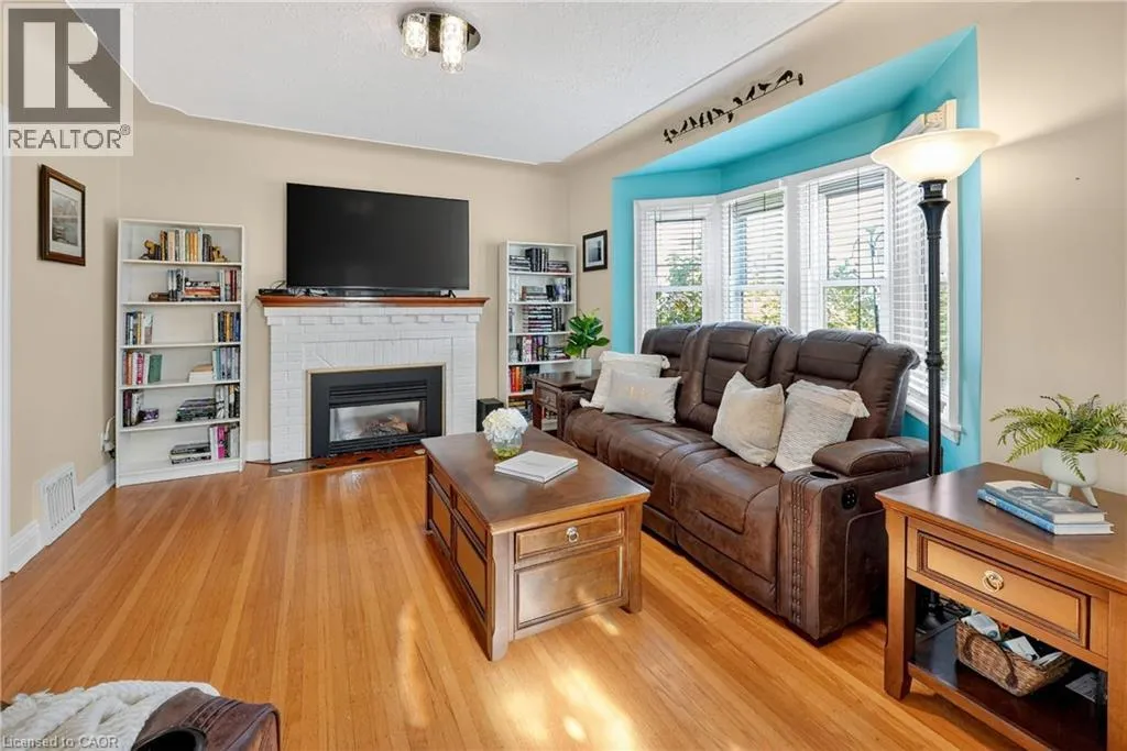 From QEW, Exit Red Hill Valley Pkwy, Use right lane to exit Queenston Rd, Right onto Queenston, At the roundabout, take the 3rd exit and stay on Hwy 8/Queenston, left onto Weir St S. PARKSIDE GEM! Across from Montgomery Park and minutes to every convenience, 46 Weir Street South offers a wonderful blend of character, comfort, and practicality. This charming 1.5-storey home is perfectly suited for first-time buyers, downsizers, or anyone seeking an established Hamilton neighbourhood with tree-lined streets, nearby schools, shopping, public transit, and quick access to the Red Hill Valley Expwy, LINC & QEW. Inside, the main level welcomes you with HARDWOOD floors, a cozy gas fireplace, and a bright bay window that fills the living room with natural light. The adjoining dining room enjoys views of the backyard, while the kitchen, featuring resurfaced cupboards, a deep double farmhouse sink, and tile flooring, offers both charm and function. Mudroom off the kitchen provides access to the back deck and fully fenced backyard. Separate side entry from the driveway to the kitchen and basement adds additional everyday convenience. Upstairs, find two bedrooms including a spacious primary with dual closets and plush carpet (with hardwood beneath). A 4-pc bath with updated toilet and shower (2024) completes the second level. The FINISHED BASEMENT extends your living space with a large rec room and den area, 2-pc bath, laundry, and generous storage. Step outside to enjoy the private yard with lush greenery, a large deck for entertaining, and a detached single garage with its own electrical panel. Notable UPDATES include newer main floor windows and most doors (2024), siding and eaves (2 years), a 5-year-old deck, and a newly resealed driveway with parking for two cars. Full of warmth and thoughtful updates, this home invites you to settle in and make it your own - right in the heart of one of Hamiltonâs most welcoming communities. CLICK ON MULTIMEDIA for video tour, drone photos, floor plans & more. (id:27476)