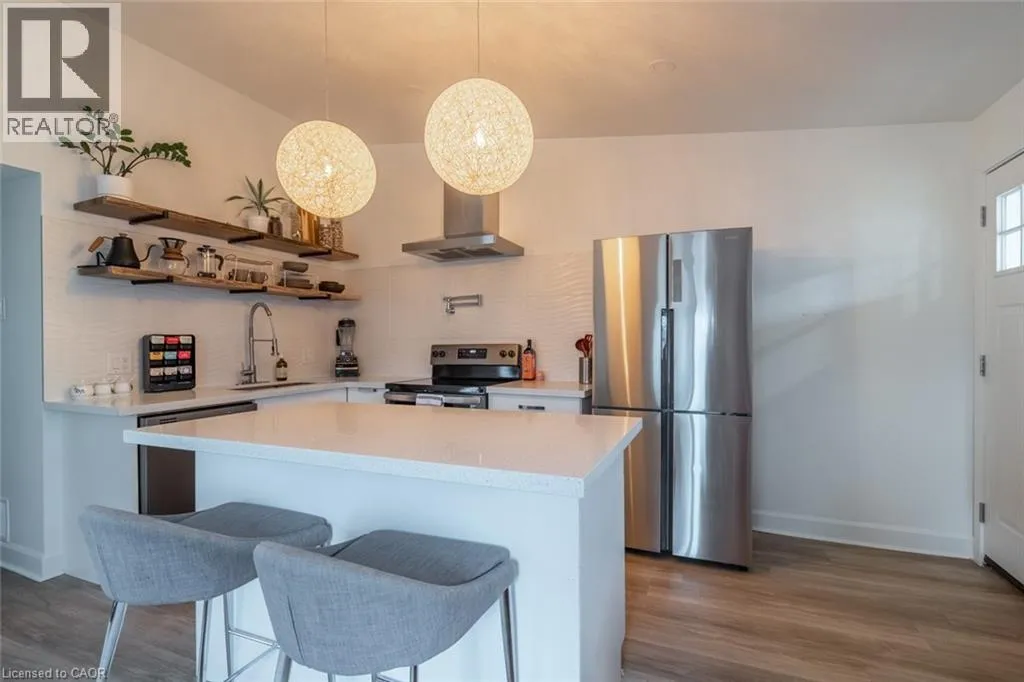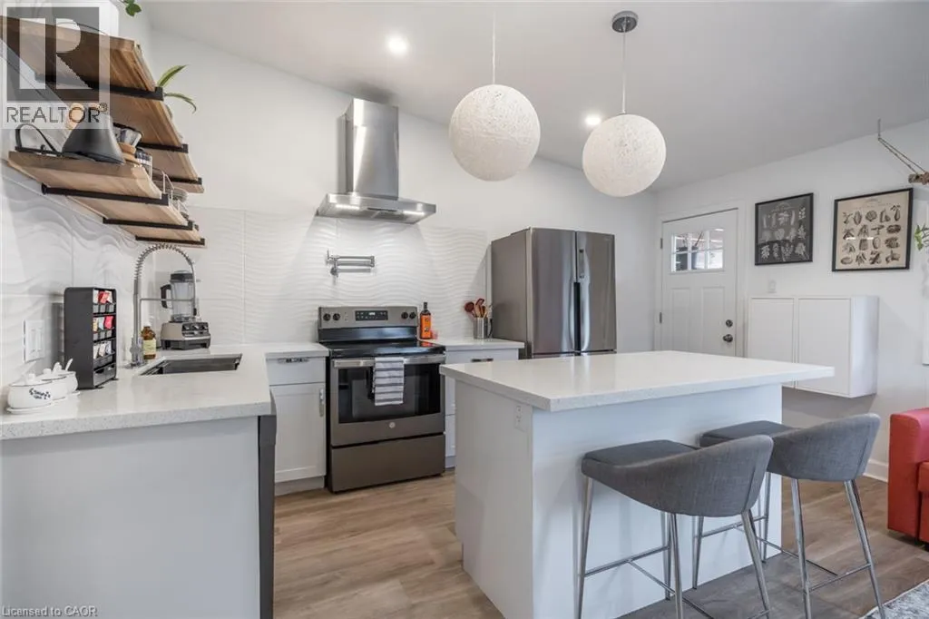 Cannon to North on Frederick Just a 6-minute walk to vibrant Ottawa Street! This beautifully updated 2 bedroom, 1 bathroom home offers a maintenance-free backyard designed for entertaining while enjoying the perks of the Crown Point neighbourhood. The spacious front lawn features five large garden beds - perfect for growing fresh vegetables and herbs. A long driveway with parking for three leads up to the welcoming front porch with a newly built railing. Inside, natural light pours through the home from morning to evening, creating the perfect environment for thriving houseplants. The open-concept living room and kitchen are ideal for gatherings. The kitchen is outfitted with quartz countertops, stainless steel appliances - including a built-in dishwasher, wine fridge, and convenient pot filler. The updated 3-piece bathroom boasts brand-new tile and in-suite laundry with a folding counter for added functionality. Step out to the backyard and enjoy the large partially covered deck, which leads to a finished, insulated bonus space with hydro. Whether youâre looking for an office, workshop, yoga or art studio, the possibilities are endless. An additional insulated storage room with a separate entrance provides space for tools or could even be transformed into a sauna retreat. With Hamiltonâs trendiest restaurants just steps away, youâll love hosting friends for a cocktail at your new home before strolling to the patios of Ottawa Street. Does this sound like the perfect fit? Reach out today to book your private showing! RSA. (Photos were taken prior to the current tenancy, while the seller occupied the home.) (id:27476)