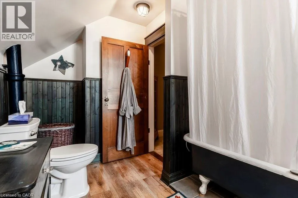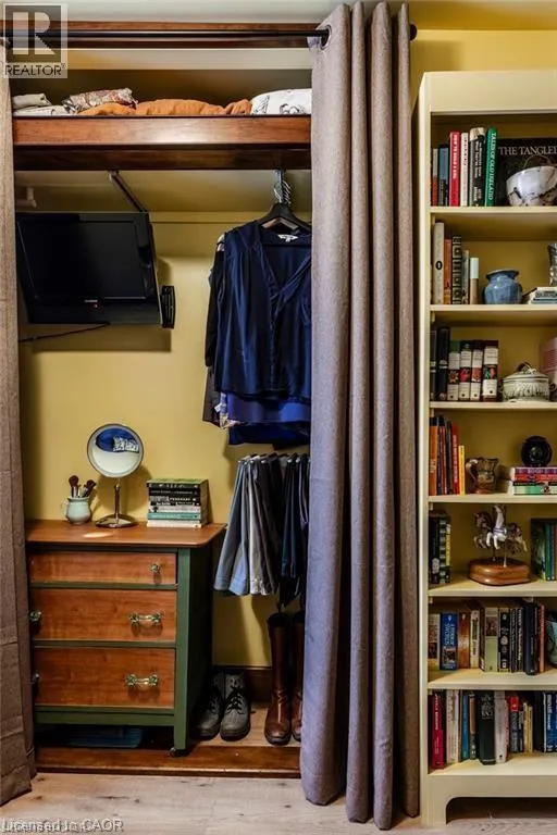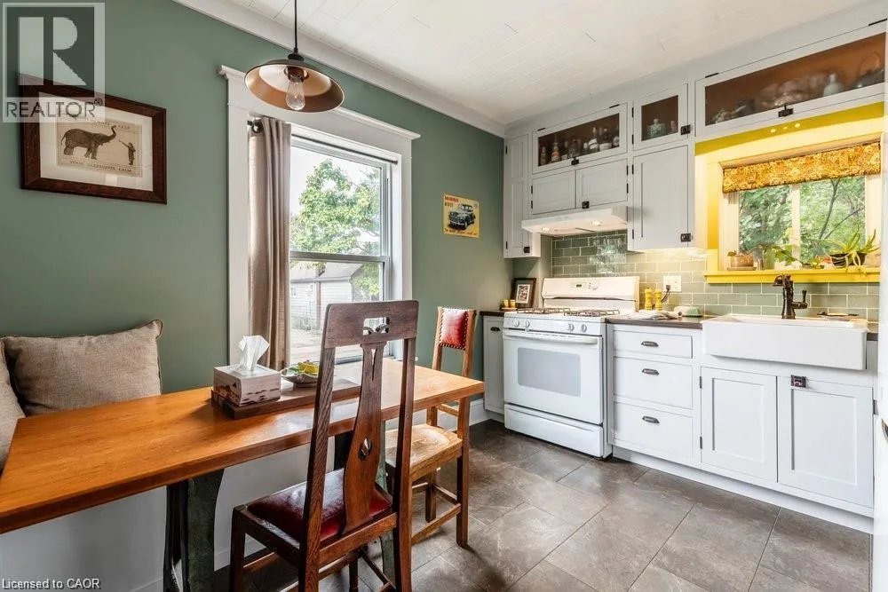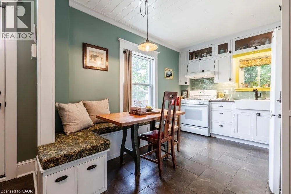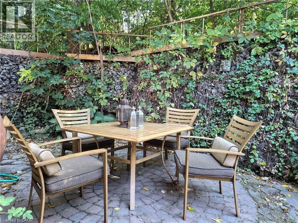 John St S. to Charlton Ave E between Ferguson & Aurora Outstanding transformation inside & out with no stone left unturned! Tucked away at the base of the escarpment, this thoughtfully renovated 2-storey, 2-bedroom, 1-bath home is full of character, creativity, and modern convenience. From its clever storage solutions to its private âsecret gardenâ patio, every detail has been carefully designed to make the most of both space and style. Step inside to discover an updated kitchen thatâs as functional as it is beautiful, featuring built-in banquette seating with custom cushions (and hidden storage!), a pull-out butcher block for added prep space, subway tile backsplash, and generous cabinetry. The living room offers a walkout to a stunning interlock and flagstone patio â a private oasis perfect for morning coffee or evening gatherings â w/ built-ins & glass display shelves to add ambiance and charm. Upstairs, the primary bedroom delights with a hidden âsecret closetâ concealed behind a bookshelf, while the elegant 4-piece bathroom features a classic clawfoot tub and pedestal sink for a touch of vintage luxury. Additional highlights include two-car private parking â a rare and valuable find â and a unique sense of privacy and tranquility. This one-of-a-kind home offers the perfect blend of historic charm, smart updates, and whimsical details. This Corktown gem is steps to St. Joâs, the GO & amenities. A must-see for those seeking something truly special. (id:27476)