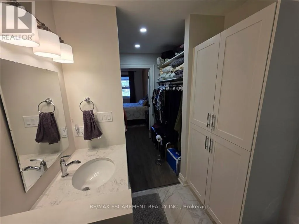 Garth Street & Rymal Rd W Welcome to St. Elizabeth Village, a sought after gated 55+ community offering resort style living. This beautifully renovated corner unit bungalow has been updated from top to bottom and is move in ready. Situated with a rare pond view, the home also includes a garage and private parking. Inside, you will find 2 bedrooms and 1.5 bathrooms. The primary bedroom features its own walk in closet and ensuite with a walk in shower complete with grab bars and a rainfall shower faucet, making it ideal for comfort and accessibility. The open concept kitchen flows seamlessly into the dining and living room where vaulted ceilings and expansive windows fill the space with natural light and provide serene views of the private greenspace. The Village offers an unmatched lifestyle with endless amenities just a short walk away. Residents can enjoy a heated indoor pool, gym, saunas, hot tub and golf simulator. Creative pursuits await at the woodworking and stained glass shops, while essential services such as a doctor's office, pharmacy and massage clinic are right on site. Just minutes from grocery stores, shopping, restaurants and public transit with direct service into the Village, this location offers both convenience and community. This home is the perfect combination of modern finishes, thoughtful design and a vibrant lifestyle setting. (id:27476)