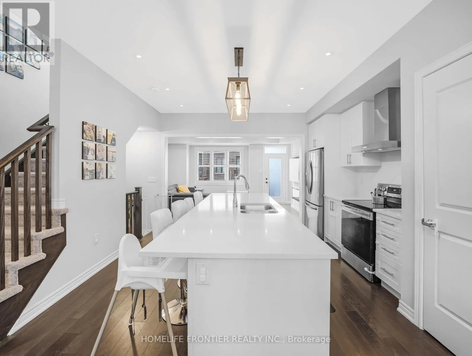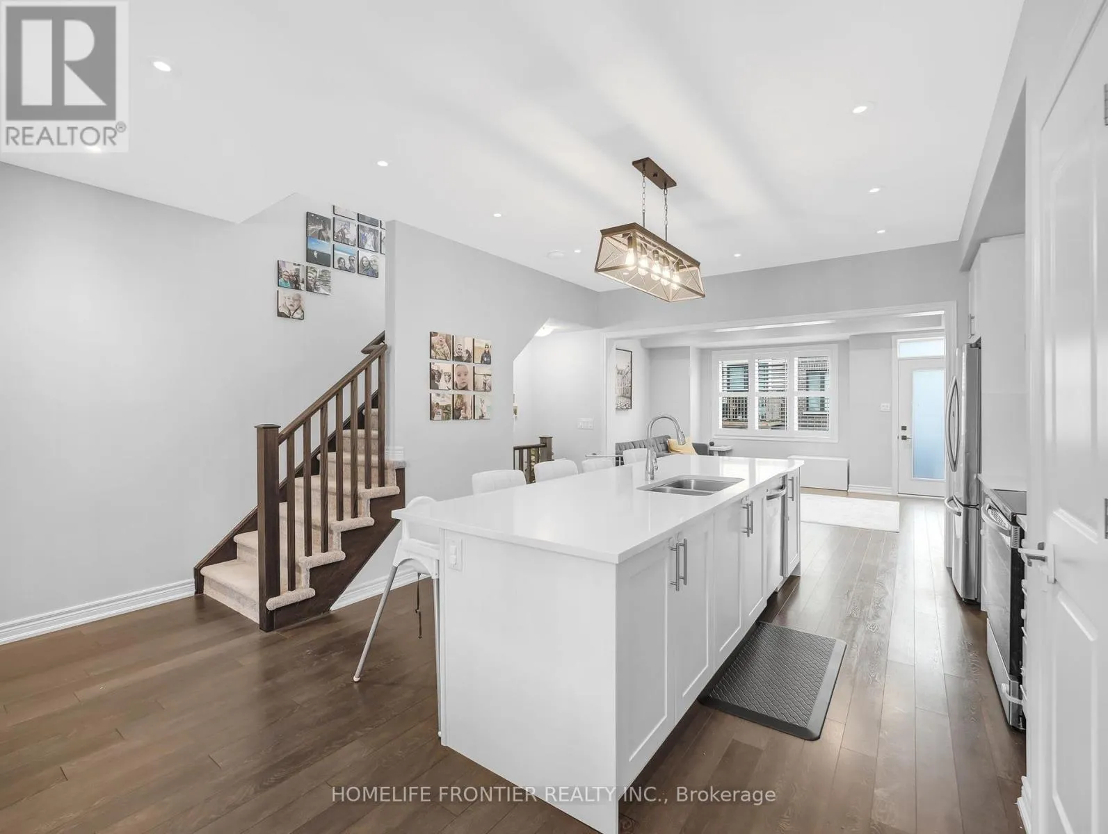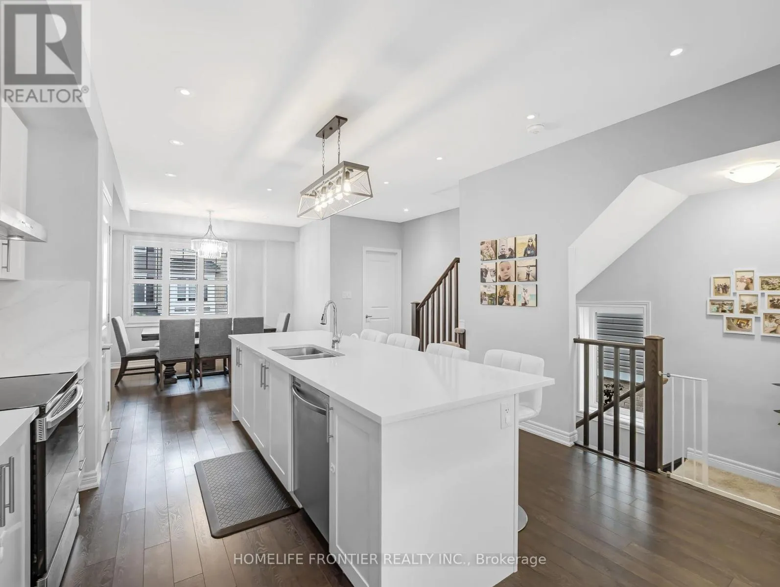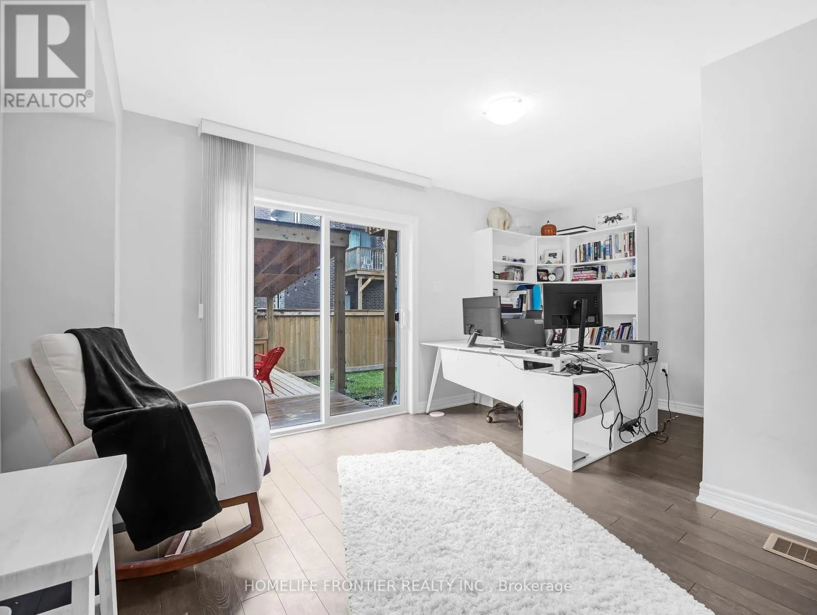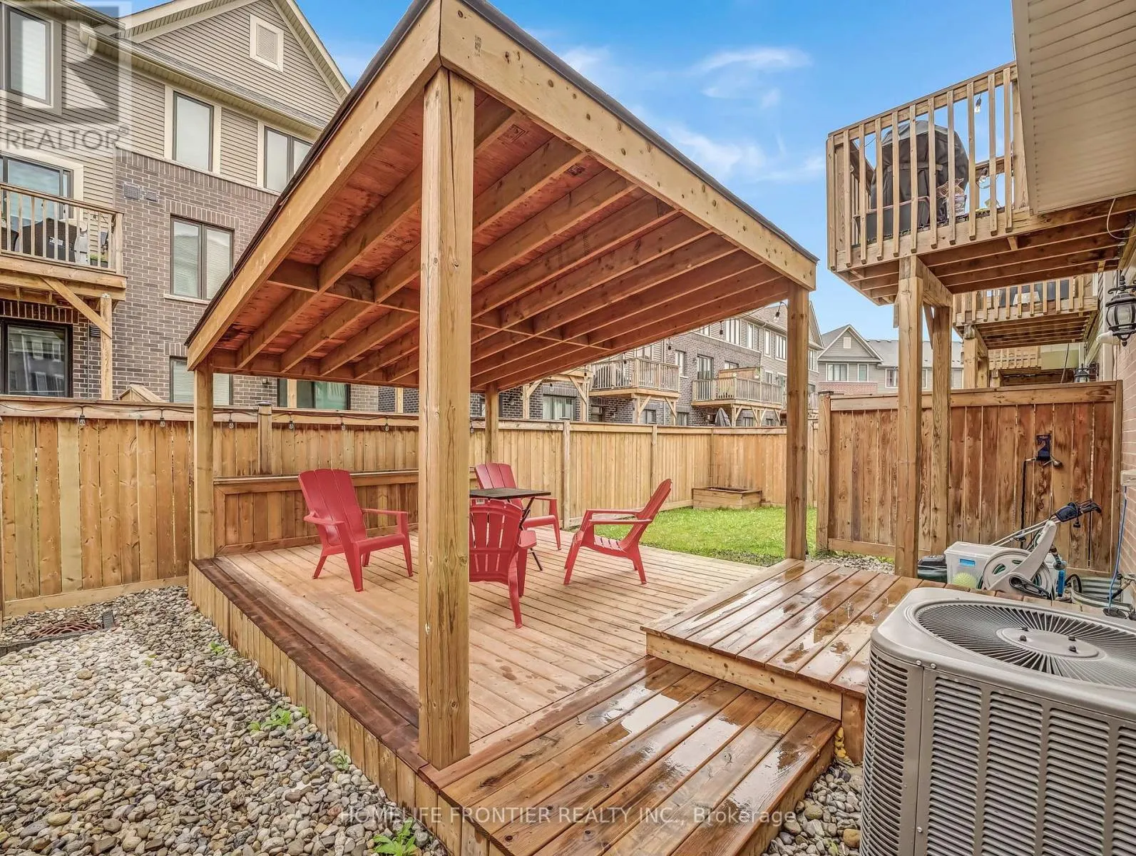 King St E & Quigley Rd RARE FIND END UNIT!!! Welcome to nearly 2,000 sq ft of luxurious, contemporary living space. This spacious 3-bedroom, 3 bath home is located in a quiet enclave of townhomes close to all amenities, parks, top-rated schools, Sir Wilfrid Laurier Recreation Centre, and with easy access to major highways. The spectacular layout includes an open-concept second floor featuring a custom fireplace, 9ftceilings, large windows, powder room and oak staircase, pot lights throughout and a separate dining area. The sleek, upgraded kitchen is equipped with high-end appliances, ample cabinetry, upgraded quartz countertops and stylish backsplash - perfect for modern living. On the main floor, you'll find a bright office space ideal for working from home, which can easily serve as a 4th BEDROOM if needed. The upper level has a conveniently located laundry, 3generously sized bedrooms, including a beautiful primary suite and 2 full washrooms. Enjoy outdoor living on the amazing patio deck with a charming gazebo - perfect for summer gatherings or peaceful relaxation. Unfinished basement offering endless possibilities for storage or future expansion. This move-in ready home truly has it all - space, style, upgrades, and location. Don't miss your opportunity to call it yours! (id:27476)