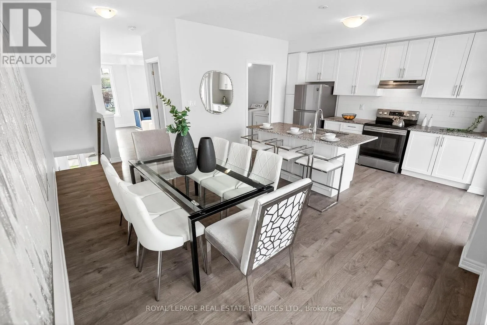 King St E & Quigley Rd Beautiful, spacious and thoughtfully designed! Welcome to this rarely offered 4 bedroom, 3.5 bathroom townhome featuring a 2 car garage and 2 additional driveway spaces! Freshly painted throughout with brand new carpet. The ground floor offers a spacious private bedroom with a 4 piece ensuite. Ideal for guests, an older child or an in-law suite. The main floor boasts the open concept kitchen with stainless steel appliances, subway tile backsplash and a large island. Just off the kitchen / dining room is the oversized balcony. Perfect for bbqing and enjoying those warm summer evenings. The bright, spacious living room flows seamlessly from the kitchen, making family gatherings effortless. Upstairs the primary retreat boasts a walk-in closet and 3 piece ensuite with a large vanity and stand up shower. Two additional bedrooms and a full bathroom complete this floor. The unfinished basement provides a blank canvas with endless potential for additional living space. Situated in a family-friendly neighbourhood with a playground and plenty of visitor parking, this home offers easy access to the Red Hill Valley Parkway, public transit, schools, shopping, and more. A must-see!! (id:27476)
