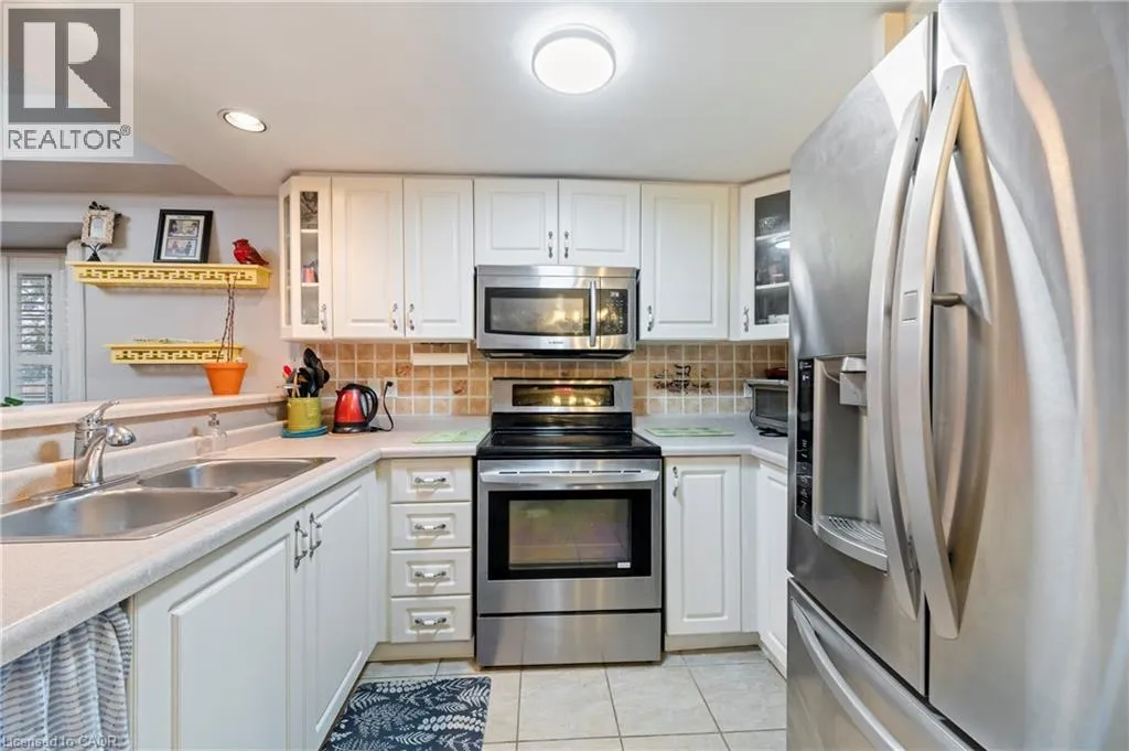 On North side of King St, just East of Nash Rd Welcome to this beautiful bungalow/stacked townhouse end unit at Jacksonâs Landing with over 2000 sqft of finished living space. Located in a private & peaceful complex, this unit is perfect for anyone looking for maintenance-free living. The main level offers a bright open-concept living and dining area, an eat-in kitchen with stainless steel appliances and 2 spacious bedrooms - including a primary room with his & hers closets and a 4-piece ensuite. A second 4-piece bathroom & laundry room completes the main floor. The finished basement expands your living space with a large recreation room, a wet bar, an additional bedroom, and a 4-piece bathroom with a jacuzzi tub. Along with plenty of storage, this basement is perfect for extended family or guests. Conveniently located close to shopping, public transit, and major highways. Book your showing today â this rare unit wonât last. (id:27476)