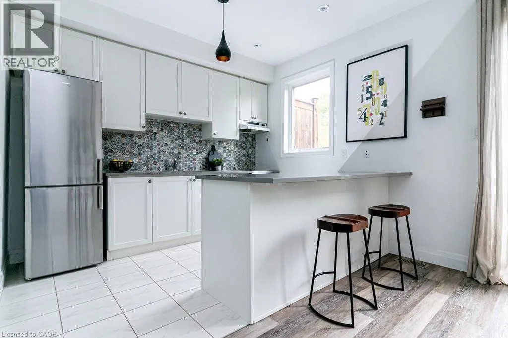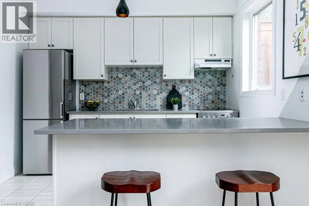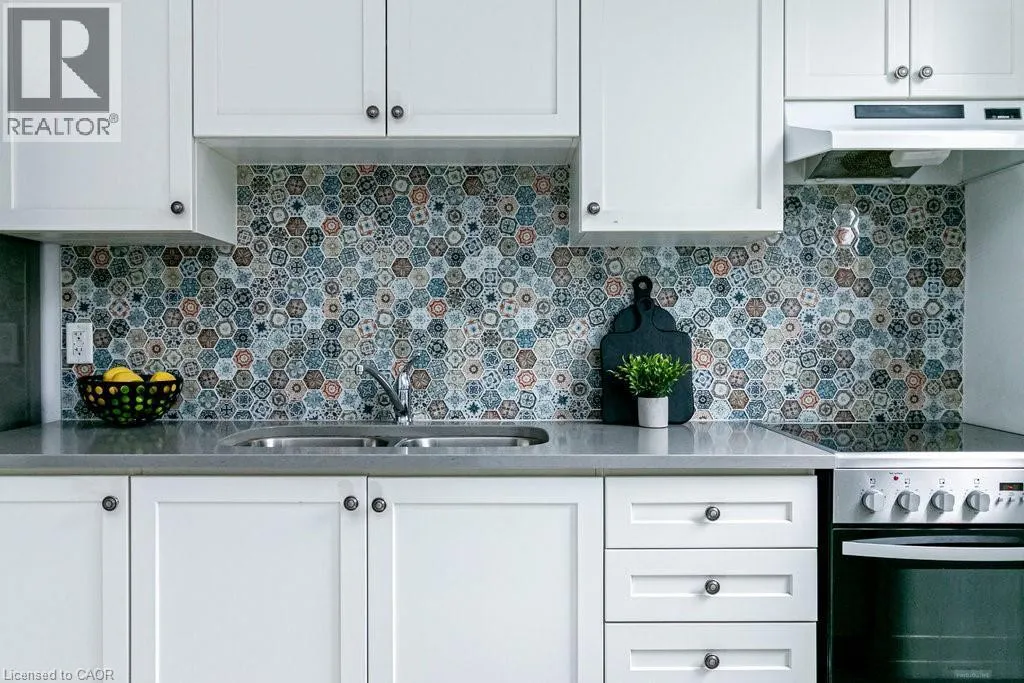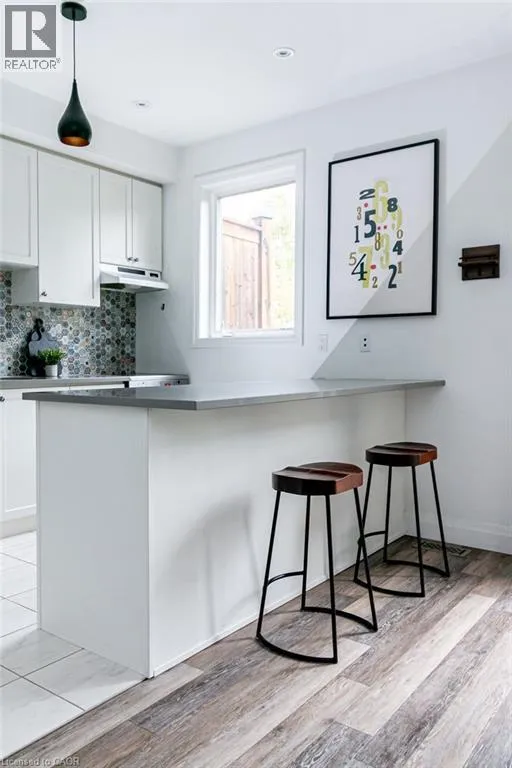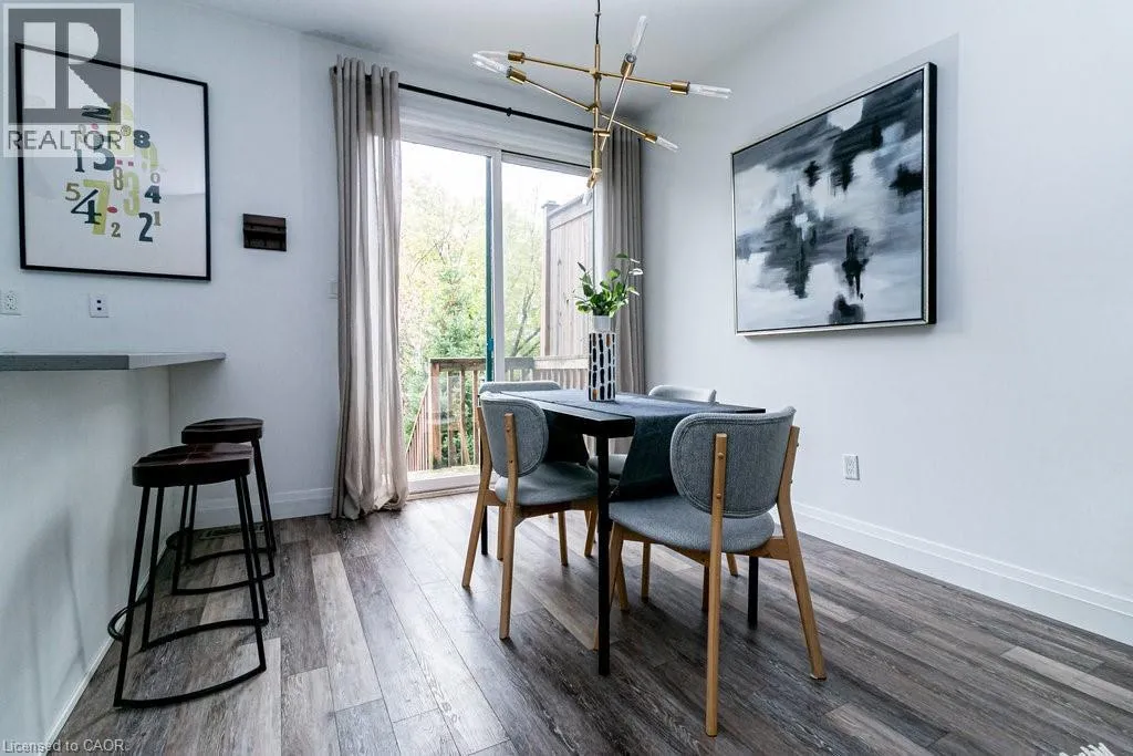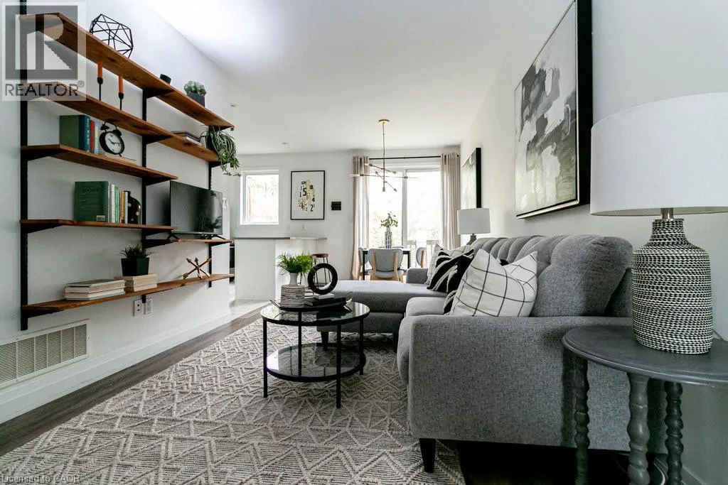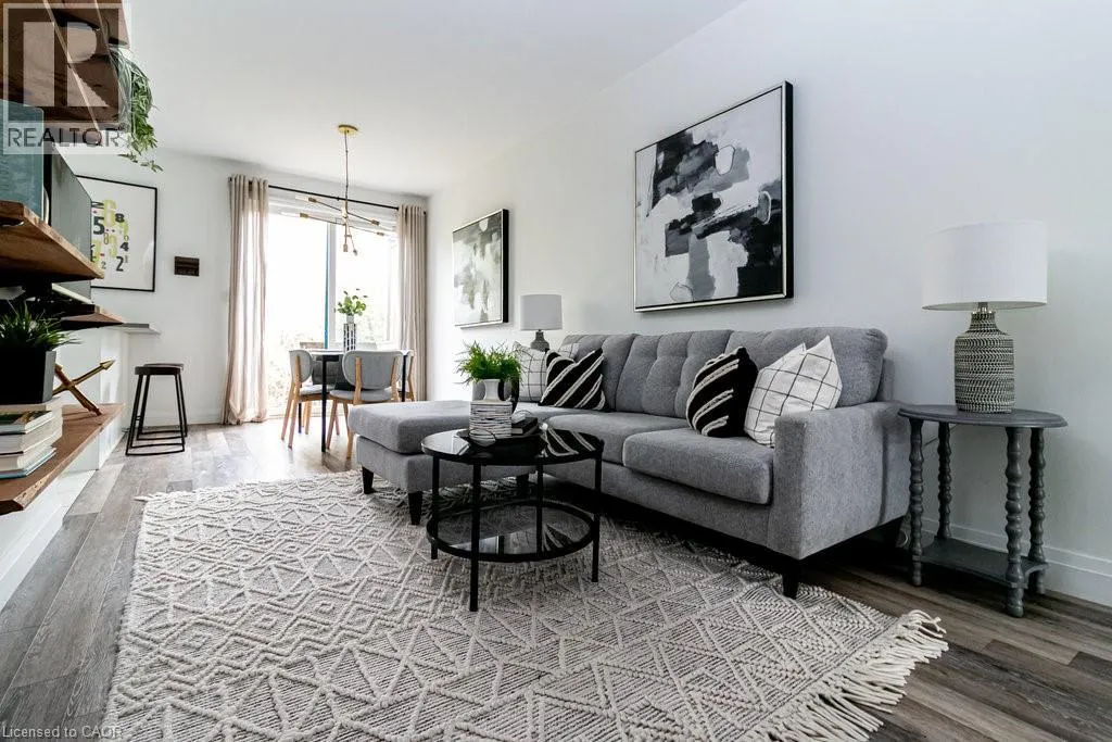 Barton Street West between Locke Street North and Queen Street North 1480 sq. ft. of fabulous move in ready living space! This ground level west Hamilton condo is a real treat. 2 bed 2 bath with stylish finishes, neutral decor and super layout! The main floor enjoys high ceiling, open concept living, dining and kitchen with quartz counters, breakfast bar and walk out to raised deck/backyard space, a spacious bedroom and full bath. The lower level enjoys large bedroom with lots of natural light, walk in closet with built ins, a stylish full bath with walk in shower, laundry room and utility/storage room. This 8 years new complex is situated close to West Harbour GO, Bayfront Park, west end and downtown shopping and amenities. A terrific offering. (id:27476)