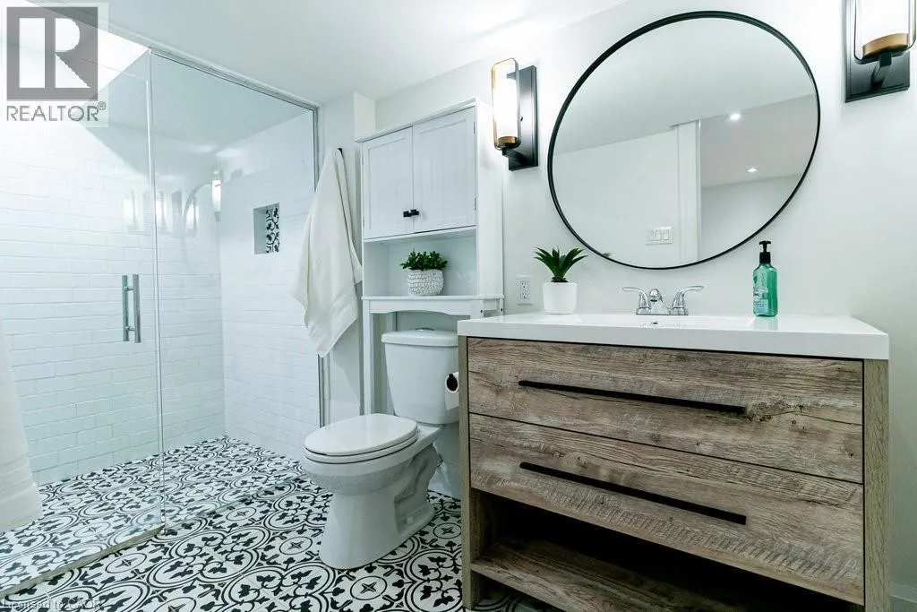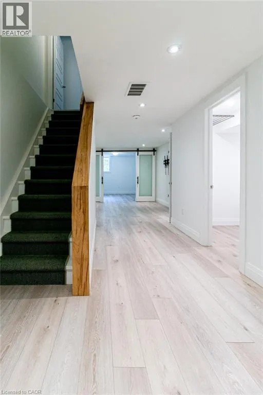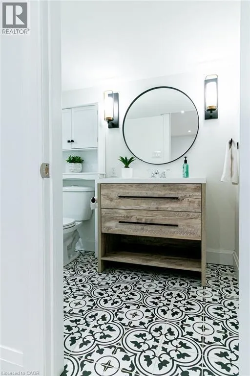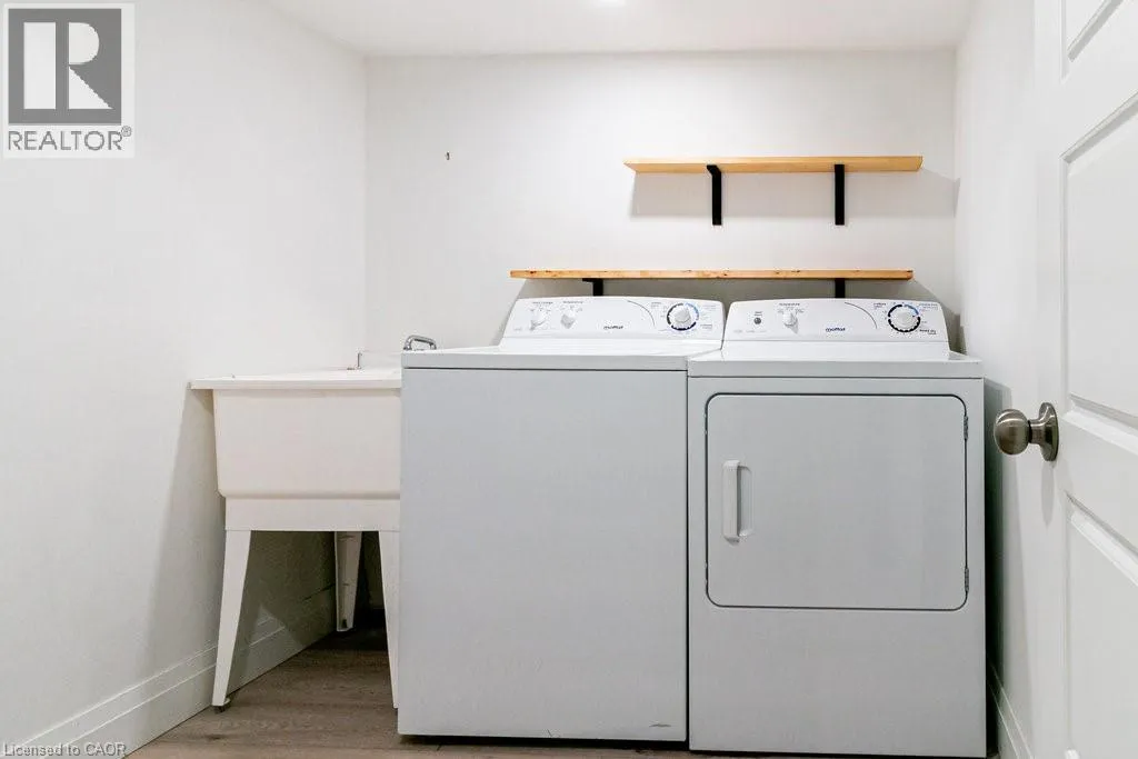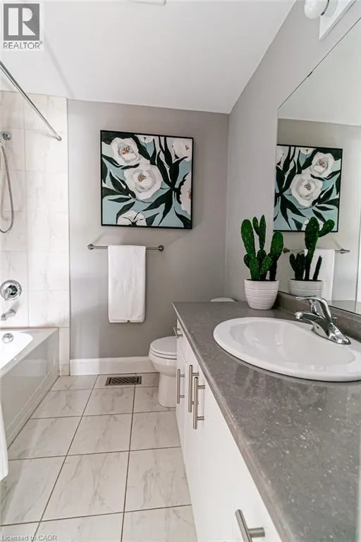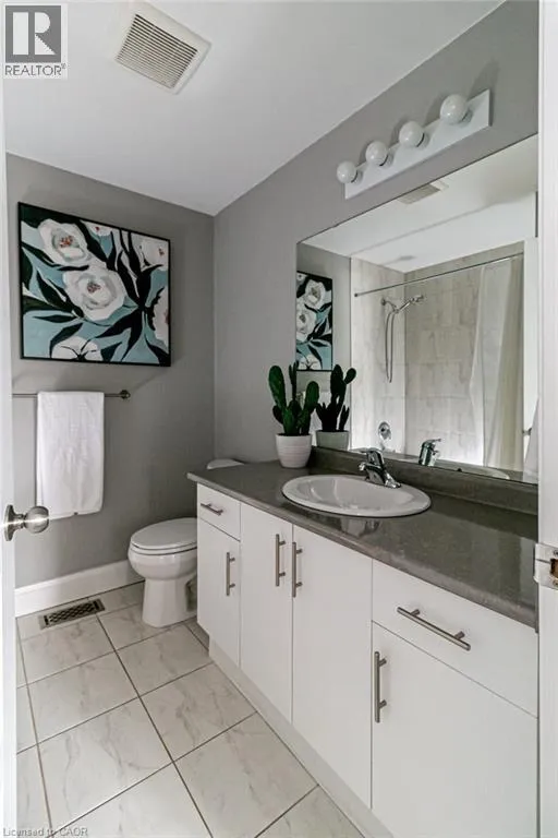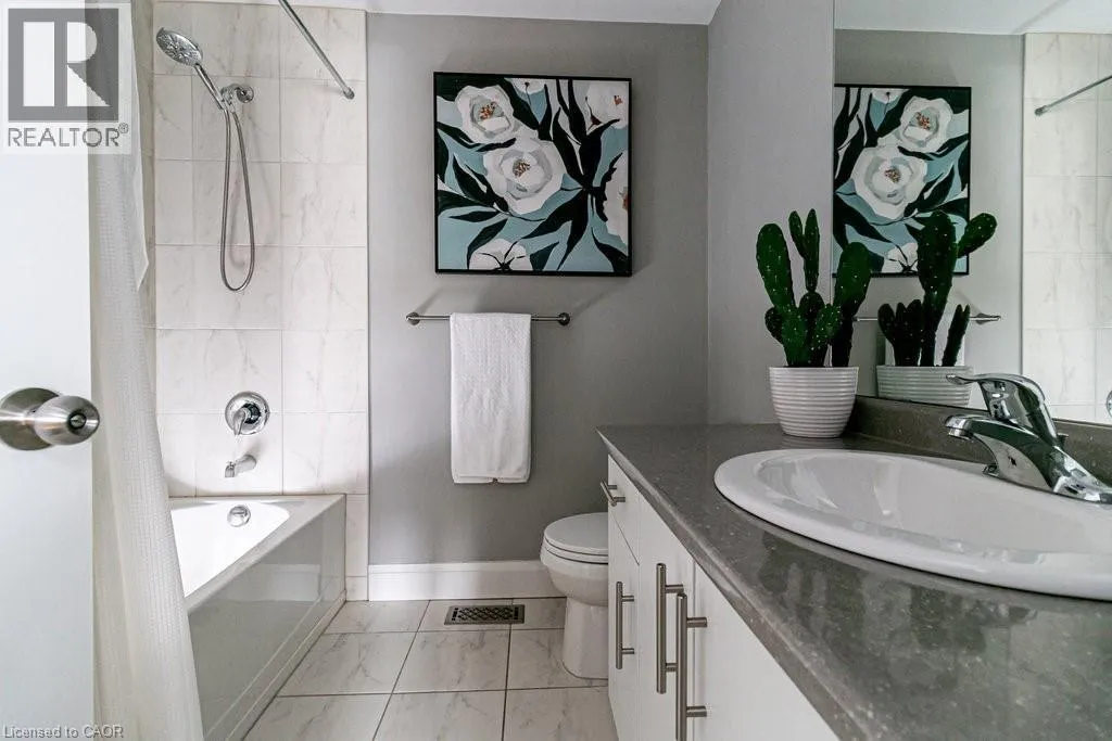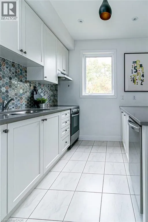 Barton Street West between Locke Street North and Queen Street North 1480 sq. ft. of fabulous move in ready living space! This ground level west Hamilton condo is a real treat. 2 bed 2 bath with stylish finishes, neutral decor and super layout! The main floor enjoys high ceiling, open concept living, dining and kitchen with quartz counters, breakfast bar and walk out to raised deck/backyard space, a spacious bedroom and full bath. The lower level enjoys large bedroom with lots of natural light, walk in closet with built ins, a stylish full bath with walk in shower, laundry room and utility/storage room. This 8 years new complex is situated close to West Harbour GO, Bayfront Park, west end and downtown shopping and amenities. A terrific offering. (id:27476)