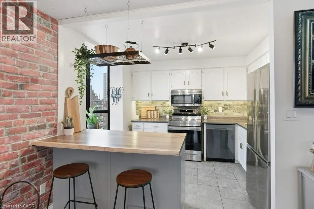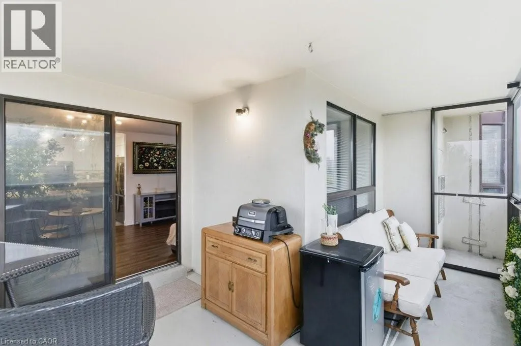ON MAIN ST. E BETWEEN VOCTORIA AVE. AND WENTWORTH ST Welcome to Hunters Green Condominiums, located in the desirable Stinson neighborhood. This bright and spacious 2-bedroom, 2-bathroom corner suite offers over 1,000 sq. ft. of comfortable living space! Plus, a rare enclosed glass balcony with beautiful south/west exposure and escarpment views. Whether you're a first-time buyer or looking to downsize you'll appreciate the open-concept layout that seamlessly integrates the living, dining. and kitchen areas - perfect for entertaining. The beautifully updated kitchen features stainless steel appliances, live edge island, plenty of cabinetry, & a large bay window that fills the space with natural light. The generous primary bedroom includes an ensuite bath and double closet, while both bedrooms enjoy bright bay windows with lovely escarpment views. This suite also offers the convenience of in-suite laundry and a large storage pantry. Additional highlights include the underground parking space, ample visitor parking and numerous updates- new flooring (2021), freshly painted throughout (2021) & ensuite-bathroom upgrade (2025). Located within walking distance to parks, schools, grocery stores, and offering easy access to downtown, highways, and the mountain - this home truly combines comfort, convenience, and pride of ownership. RSA (id:27476)