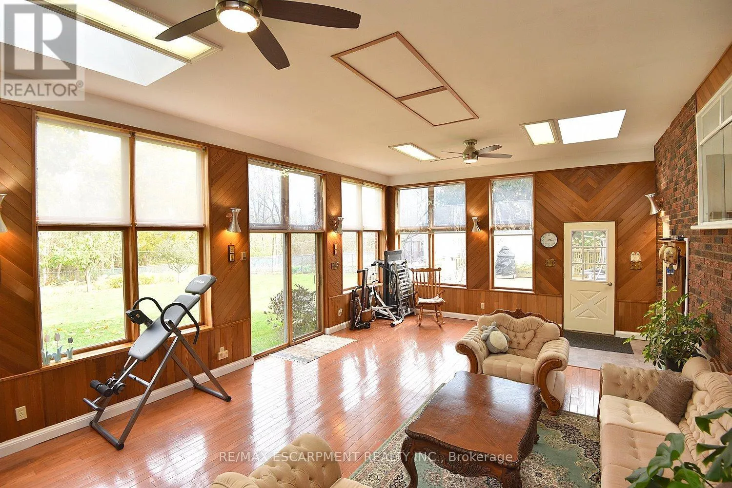 Cross Streets: Between Dundas (HWY 5) And Parkside. ** Directions: Dundas to Evans. Welcome to 564 Evans Rd, possibly the most convenient rural location in Waterdown/Flamborough! Nestled on a totally private lot surrounded by trees on the eastern edge of Waterdown bordering Burlington, it is literally minutes to both communities with their shopping, entertainment and recreational facilities. Ideal for commuters with quick access to the major highways (QEW, 403, 407), a short drive to either Aldershot or Burlington GO stations. The carpet-free brick bungalow is deceivingly large and is flooded with natural light thanks to its large windows and many skylights. The open concept living/dining and kitchen areas are highlighted by the cherry hardwood floors, wood burning fireplace and pine kitchen which features an island with breakfast bar, large pantry, crown moldings, stainless steel appliances and loads of work and storage space. Three good sized bedrooms with laminate flooring and a four-piece bath with skylight complete the main level. A few steps down is the huge 11 foot high family room with hardwood floors, gas fireplace, skylights and a wall of windows overlooking the large rear yard and 26' X 20' deck. The partly finished lower level provides additional living space with 2 spacious rec/games rooms, and generous laundry and utility rooms. The rear yard is fully fenced and provides ample space for entertaining, backyard activities and relaxation. Grow fresh vegetables in the fenced-in garden or even raise a few chickens in the existing coop. An added bonus is the finished bunkie with hydro that would make a perfect studio, office, guest room, teen retreat or man cave/woman! Looking for a place with a bit more elbow room yet close to city amenities? Welcome Home! (id:27476)