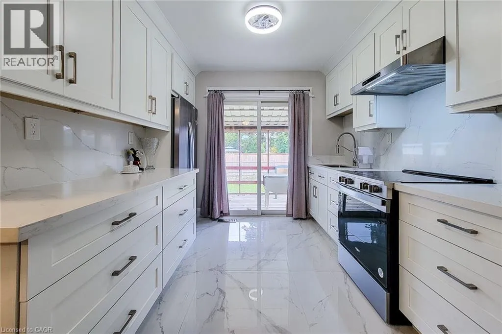 Upper Ottawa to Fennell to East 45th Turnkey Bungalow with In-Law Potential in Prime Hamilton Mountain Location! Welcome to this beautiful all-brick and stone bungalow in the desirable Sunninghill neighbourhood â a quiet, family-friendly area close to parks, schools, shopping, and public transit. This recently renovated home features a bright and spacious main floor family room, a large kitchen with abundant cabinet space, stainless steel appliances, and a sliding door walkout to a covered backyard porch, perfect for relaxing or entertaining. Offering 3+2 generous bedrooms, large windows that fill the home with natural light, and a separate walk-up entrance, this property provides great potential for an in-law suite or rental unit. Enjoy a fully fenced yard ideal for kids or pets, plus a detached garage and private driveway for added convenience. Move-in ready and located near everything your family needs, this home is a fantastic opportunity for first-time buyers or savvy investors alike. (id:27476)