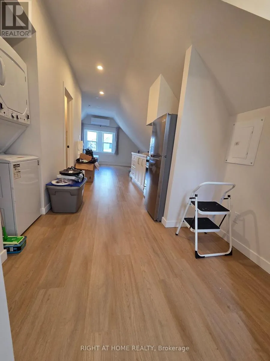 Cross Streets: Wilson. ** Directions: Hwy 8 to Stirton. Newly renovated bachelor loft unit with a separate walk-up entrance and open-concept living space. Features a modern kitchen with stainless steel appliances, quartz countertop, and stacked laundry. Includes a full 4-piece bathroom with modern finishes. The living/bedroom area is spacious and filled with natural light. Gas is included in the lease price; water and hydro are separately metered. Bright, open studio-style unit located on the transit line, just a 10-minute drive to McMaster University and Hamilton General Hospital. Parking available for $50/month. (id:27476)