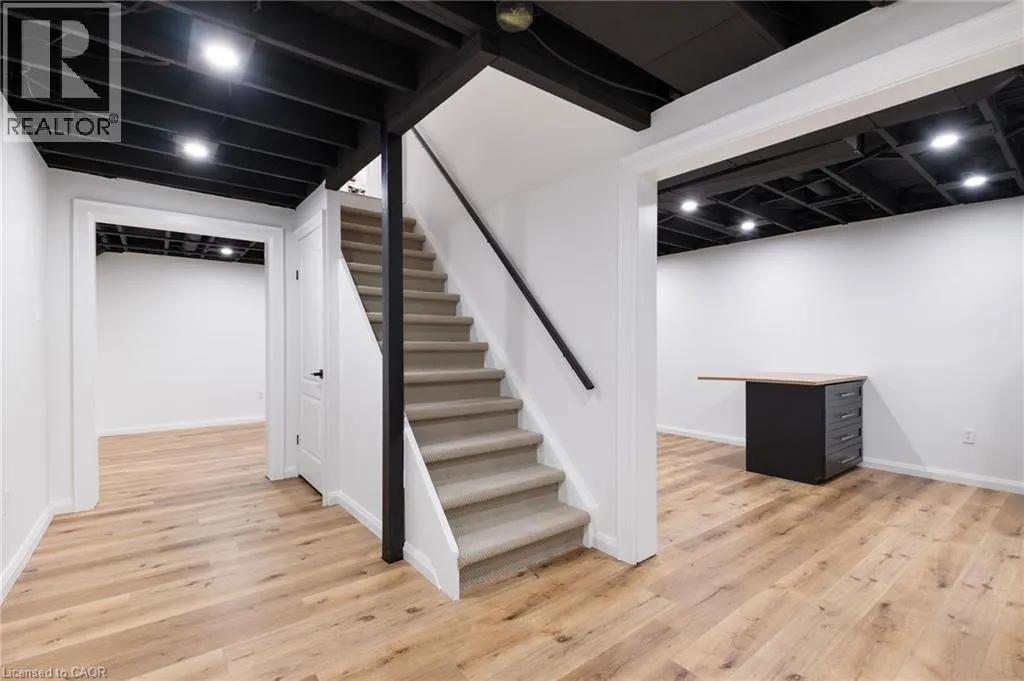 Highland Road West turn onto Gatestone Dr Tucked away on a quiet street in one of Stoney Creekâs most sought-after family neighbourhoods, this beautifully maintained all-brick 2-storey home offers nearly 3,000 sq. ft. of finished living space & a thoughtful layout designed to adapt w/ your lifestyle. With 3+2 bedrooms, 4 bathrooms, and a completely new lower level with a separate entrance, itâs the perfect fit for growing families, multi-generational living, or investors looking for turnkey value. The main floor feels open, bright, and welcoming - with updated flooring (2024) that ties the whole space together beautifully, a refreshed kitchen with new pot lights (2025), and an airy living and dining area ideal for entertaining. The main-floor laundry and powder room were both renovated in 2024 for added convenience. Upstairs, three spacious bedrooms include a serene primary suite with a walk-in closet and a private 4-piece ensuite. The basement underwent a complete transformation in 2025 - new flooring, walls, electrical, plumbing, kitchen, laundry, bathroom, and bedrooms - offering a pristine, never-before-lived-in space with a separate entrance, ideal for extended family or potential rental income. And if thatâs not what you need, itâs still the perfect setup for entertaining - a spacious, open-concept layout with additional rooms that can easily serve as a home gym, playroom, or extra storage. Beyond the interiors, pride of ownership is evident throughout the property. From interior and exterior painting (2025 & 2023) to ongoing mechanical care including the water heater (2024), roof inspection (2024), new AC (2020), and furnace blower replacement (2023) - every detail has been thoughtfully maintained. Additional touches like new lighting and chandeliers (2020â2025), window coverings (2022â2025), smart keypad entry (2024), and popcorn ceiling removal with pot lights (2022) elevate the homeâs modern feel. A private, fully fenced yard, extended driveway, & a serene, family-friendly setting! (id:27476)