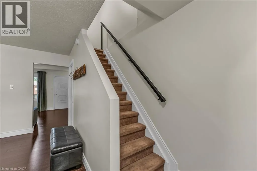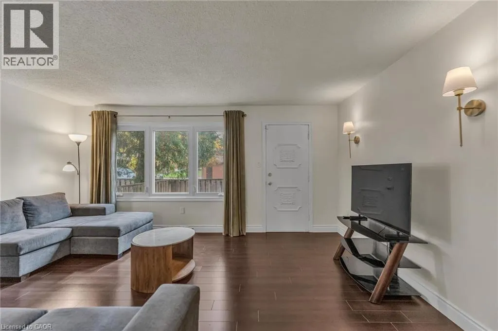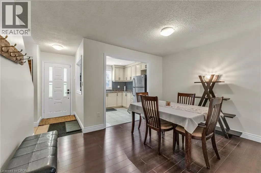 King St, South onto Quigley, East onto Angus Welcome to this well-maintained 2 storey townhome in Hamilton. This 3 bedroom, 1 bathroom home offers a functional layout with plenty of living space. Visitor parking is conveniently located just next door and a playground that sits right behind the home is perfect for outdoor enjoyment. Located close to the highway for easy commuting and nearby amenities this property combines comfort, convenience, and a great community setting. A fantastic opportunity to call this townhome your own. (id:27476)