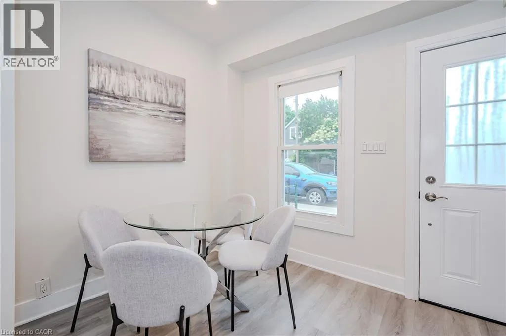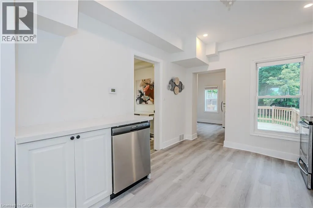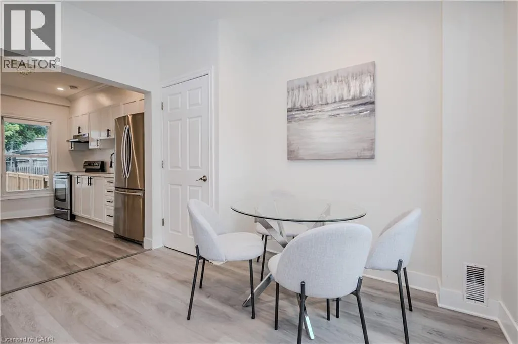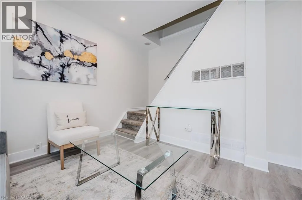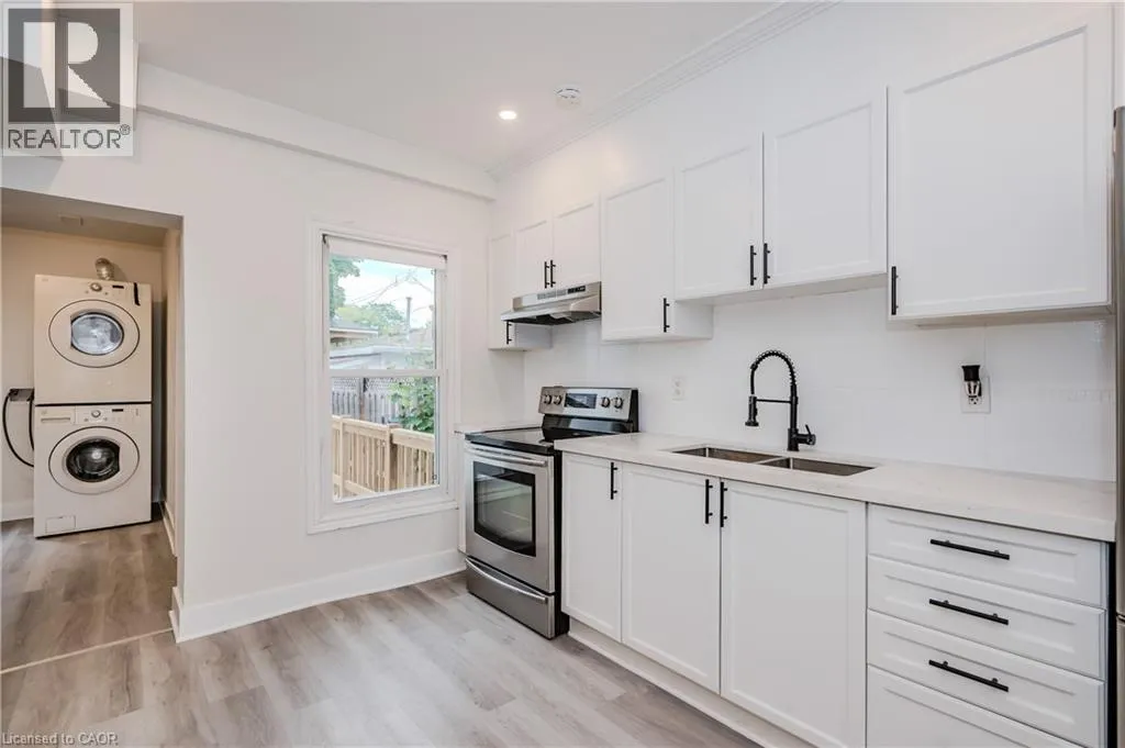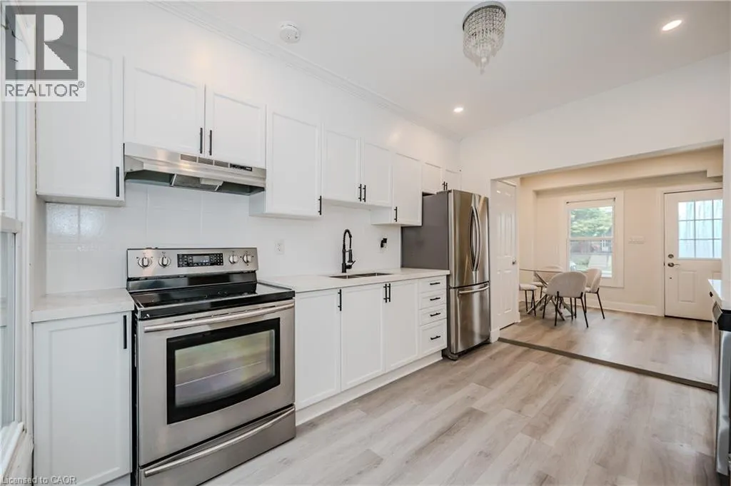 Kenilworth Ave N to Britannia Ave Looking for an affordable home to finally call yours? This newly renovated gem boasts modern sophistication and convenience in every corner. Step into an open concept layout, illuminated by energy-efficient LED pot lights, creating a warm and inviting ambiance throughout. The heart of this home is the stylish kitchen featuring sleek quartz countertops, perfect for whipping up culinary delights and hosting gatherings with friends and family. With 2 bedrooms plus a versatile room on the main floor, you have the flexibility to use it as an office for remote work or as a cozy third bedroom to accommodate guests or family members. Indulge in the luxury of a brand new washroom complete with water-efficient fixtures, ensuring both sustainability and comfort. Convenience is key with main floor laundry facilities, making chores a breeze. Step outside onto your brand new deck (2024), where you can simply unwind and soak up the sunshine in the large price space. The freshly laid sod adds to the charm of the outdoor space, providing a lush backdrop for relaxation and entertainment. Located within walking distance to grocery stores and shopping at The Centre on Barton. This home offers the ultimate in convenience and accessibility. Perfect for first-time buyers or those seeking a cozy retreat in a vibrant community. Don't miss your chance to get into home ownership at such a bargain. Schedule a viewing today! Designated street parking right out front is available for your convenience. (id:27476)