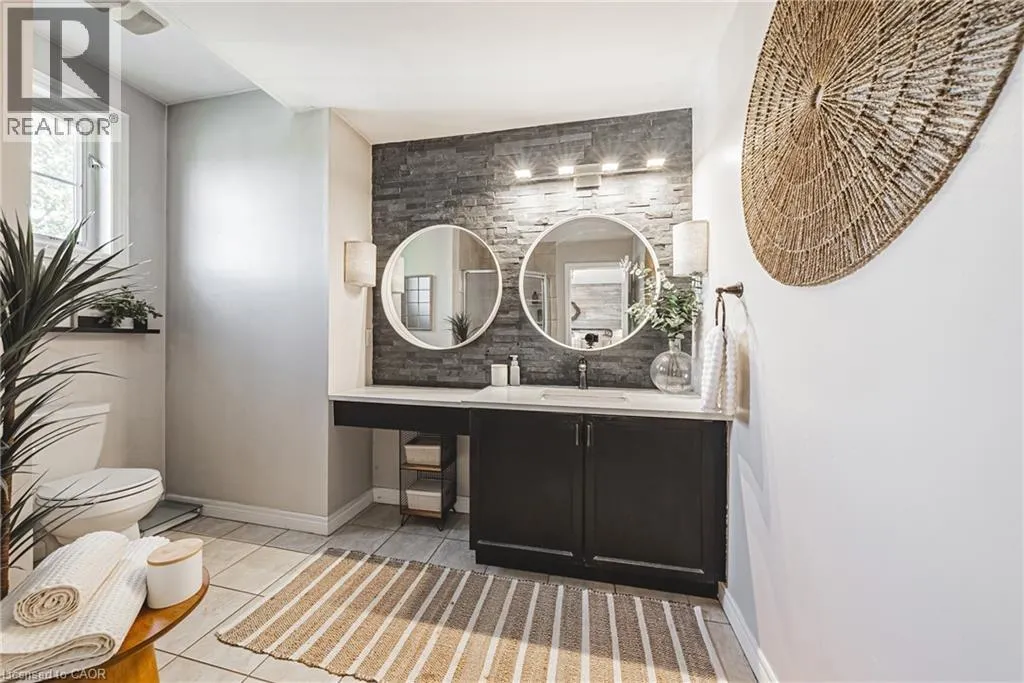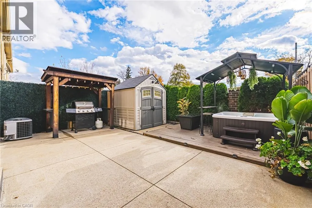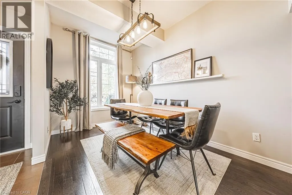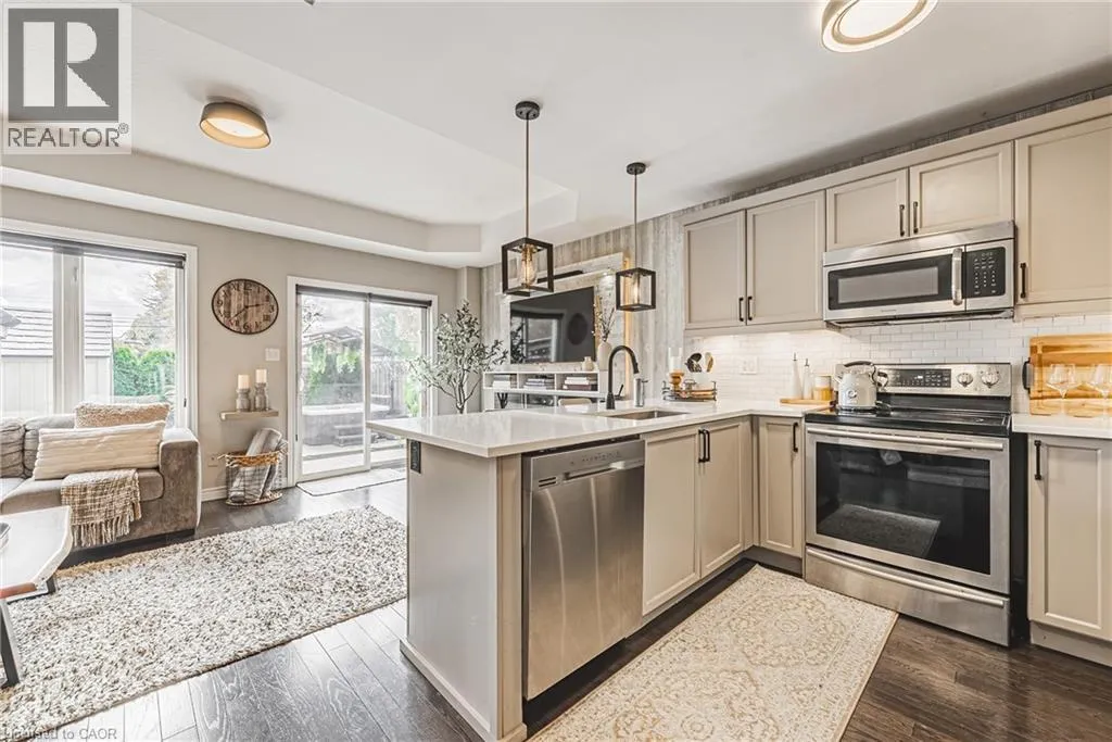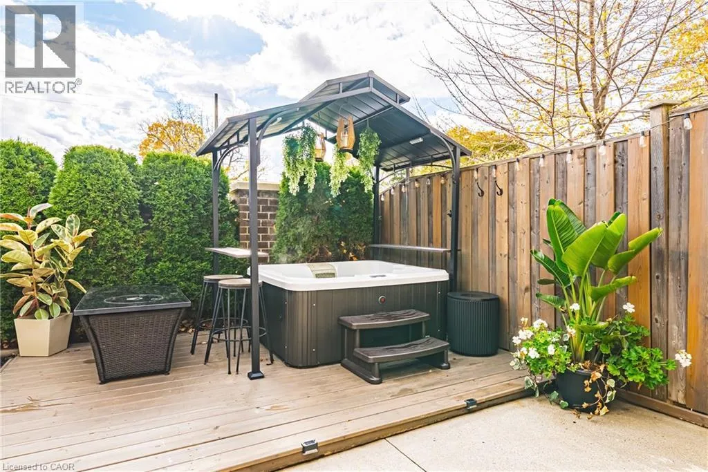 Rymal Road E & Upper Wellington St Welcome to this beautifully updated 3-bedroom, 2-bathroom, 2-powder room townhome offering over 2,000 sq. ft. of stylish living space in one of Hamilton Mountain's most desirable locations! With over $100,000 in upgrades, every inch of this home showcases exceptional attention to detail and tasteful, high-quality upgrades throughout! Step inside to a bright and open-concept main floor layout, perfect for modern living and entertaining. The spacious living area flows seamlessly with a separate dedicated dining space, ideal for family meals and gatherings. The heart of the home features a modern, fully renovated kitchen with sleek cabinetry, quartz countertops, and newer stainless steel appliances-a dream for any home chef! Enjoy newer bathrooms, upgraded flooring, custom doors, wall paneling and designer light fixtures that add warmth and character to every space. The spacious primary bedroom is a true retreat, complete with a luxurious ensuite bathroom and a walk-in closet. Additional bedrooms are bright and generously sized-perfect for family, guests, or a home office. The finished basement featuring its own fireplace and bathroom, provides a great bonus area for a family room, home office, or additional bedroom. Step outside to a stunning concrete fully fenced backyard, equipped with a gazebo, outside TV hookup and separate entrance from the backyard to the garage - a beautifully functional space, ideal for entertaining and low-maintenance outdoor living. Located close to all amenities, including shopping, parks, schools, restaurants, and easy highway access, this home truly has it all-style, comfort, and convenience. Schedule your visit today and don't miss your chance to own this move-in ready gem on the Hamilton Mountain - a perfect blend of luxury and location! (id:27476)