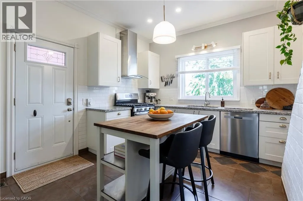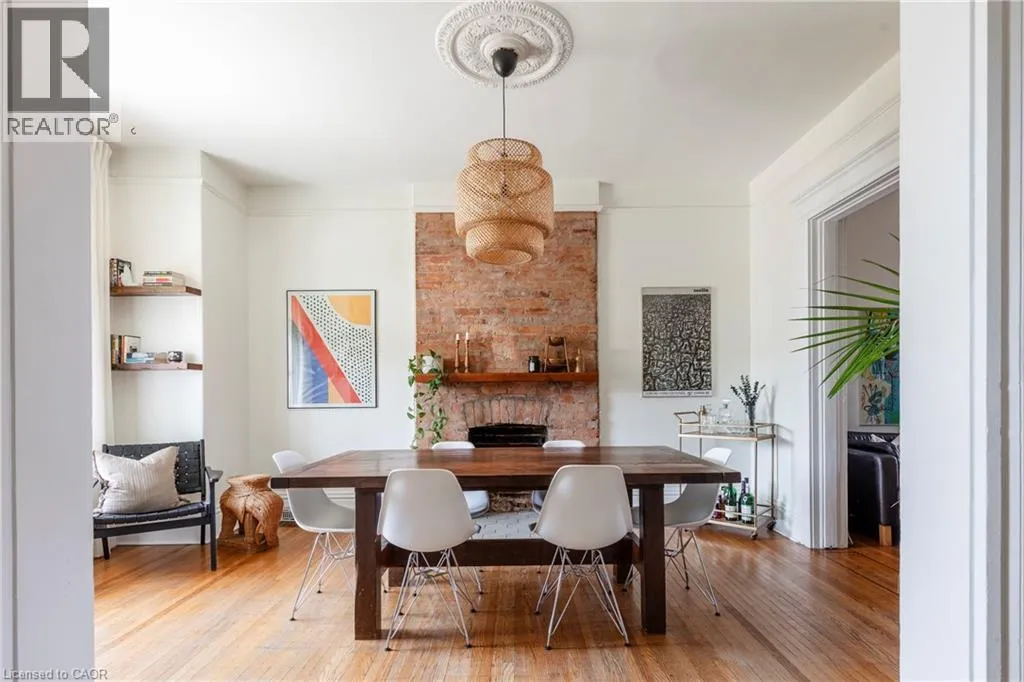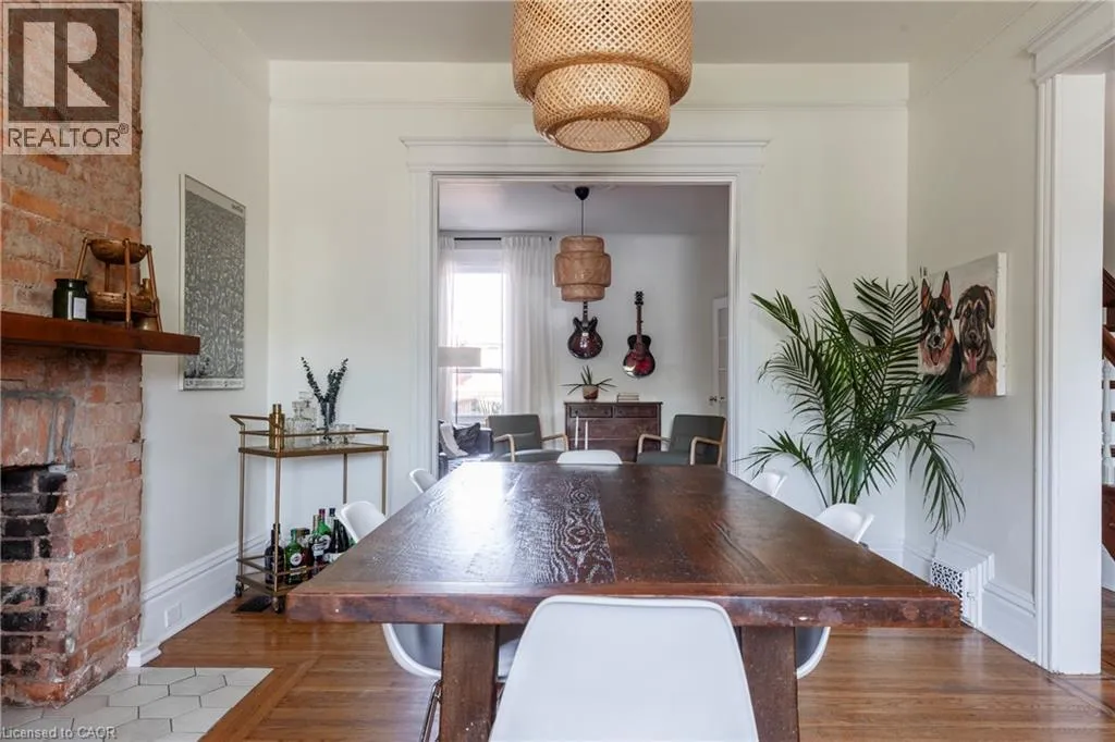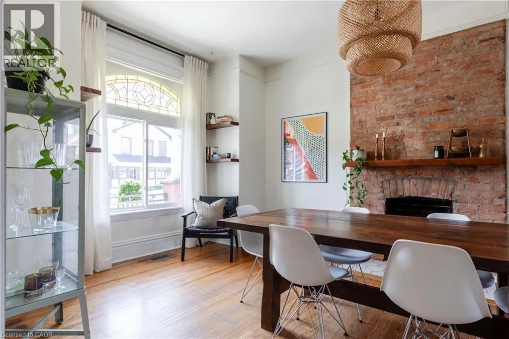 Cannon to West, North on West. This gorgeous all-brick home has been thoughtfully updated providing the ideal balance of original character w modern design and provides almost 2500 sq ft of finished living space. Stepping into 189 West Ave N youâll be greeted by a vestibule with coat storage & stained-glass transom window. The large dining room is east-facing & soaks up the morning light. Perfect for dinner parties & features original hardwood flooring, fixture medallion & exposed brick fireplace w custom mantle & hearth tiling. The living room offers space for relaxing & entertaining w the same original character of the dining room. Down the hallway youâll find a renovated 2-pc bath. The kitchen provides SS appliances, pot lights, lots of cabinetry, island w seating, a tiled pantry, 2nd staircase & door to the yard. Head up the main staircase to find 4 beds, each w a closet, inc a primary w 2 large windows, one w matching stained glass from the first floor. The 4-pc bath has been renovated w mod finishes, pot lights, basketweave tiling & floor-to-ceiling tiling. A 3rd staircase leads to an attic thatâs just waiting for the next ownerâs vision. The finished basement has 650 additional sq ft of living space inc a family room w pot lights, egress window & office. Youâll also find a 3-pc bath, a bedroom thatâs currently used as a playroom, laundry room & storage. The outside is as lovely as the interior with covered front porch and social yard with a patio, floating deck built around a shade of a cherry tree, custom BBQ pavilion with corrugated roof, fully fenced & private w gates to the front & a rear asphalt parking pad for 2 SUVs. West Ave is located on the border of Landsdale and Beasley & provides convenient prox to shopping, dining, transit, bike lanes, General Hospital & is less than a 20-min walk to West Harbour GO. Updates inc electrical, roof, eaves/soffits/downspouts, HVAC on demand (owned), paint, light fixtures and window coverings, appliances, powder & primary bath renovations, & more. (id:27476)