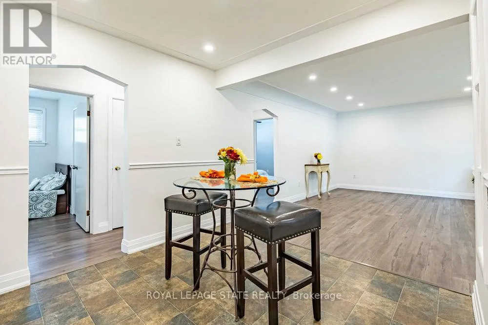 Cross Streets: Dodson. ** Directions: Upper James or Upper Wellington to McElroy. Located in the desirable Balfour neighbourhood, this updated 3+1 bedroom 2 bathroom brick bungalow offers comfort, flexibility, and great value. Features include a bright living room with cove ceilings and recent pot lights, a modern kitchen with newer stainless steel appliances, and two stylish 4-piece bathrooms. Convenient main-level laundry plus a second laundry area in the finished lower level with separate side entrance-ideal for multi-generational living or in-law potential. Fresh decor most areas, with new luxury vinyl flooring on both levels. Enjoy the fully fenced, landscaped backyard with deck and BBQ hookup, garden shed and an aggregate stone front porch and driveway accents for terrific curb appeal. The insulated 24' x 20' detached garage with hydro is perfect for hobbyists or a workshop. Close to excellent schools, shopping, hospitals, transit, and highway access-this move-in-ready home checks all the boxes! (id:27476)
