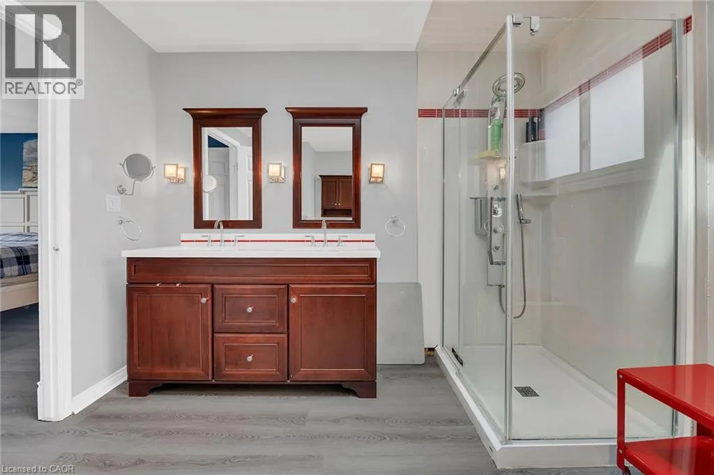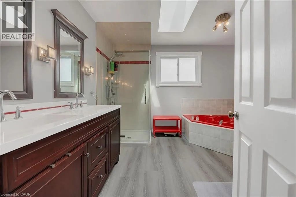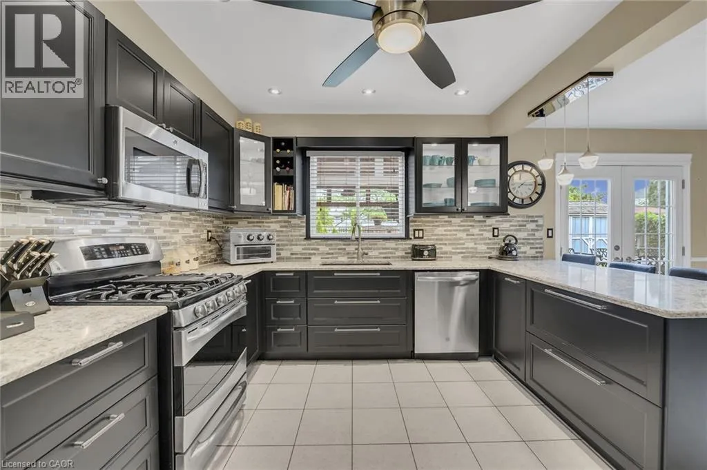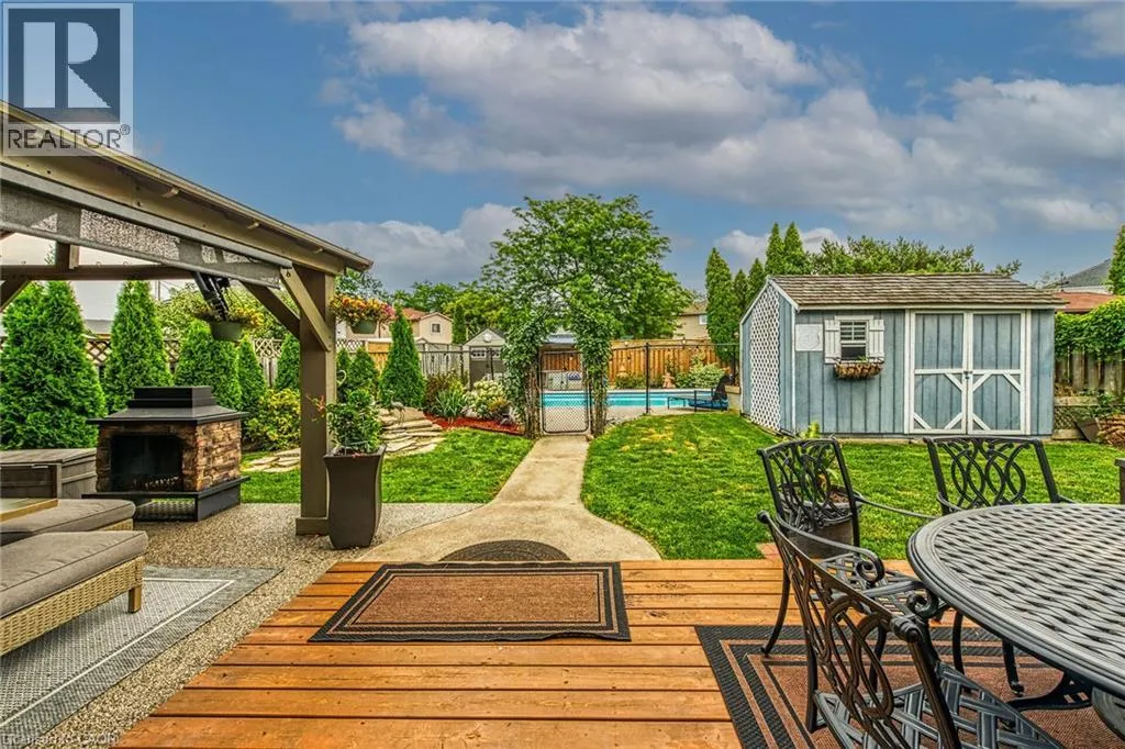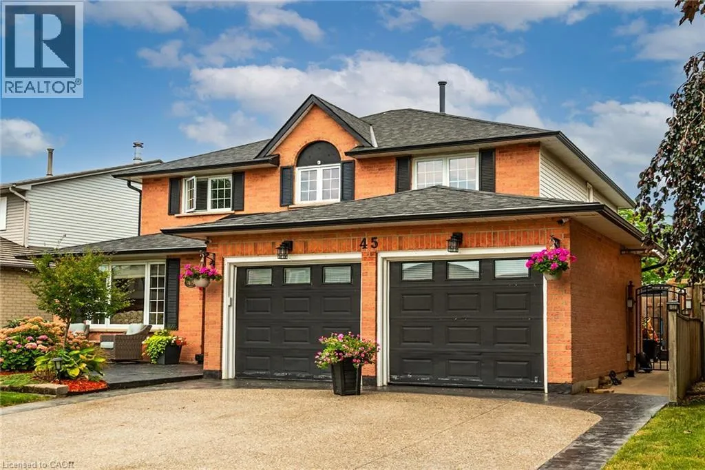 Stone Church to Brigade, Left on Delancey, Right on Dublin Remarks Public Remarks: Beautifully maintained and stylishly updated family home steps to schools and parks. 45 Dublin Dr offers over 3000 sq/ft of living space which is ideal for growing or multi generational families. Spacious principle rooms through out. The grand two storey foyer and curved staircase, welcomes you into this impressive home. Formal living room and dining room with gleaming hardwood floors. Recently remodeled eat in kitchen with stainless steel appliances, dark cabinets, quartz counters, under cabinet lighting and mosaic backsplash. Patio door access from dinette to the rear deck and back yard oasis. Huge main floor family room with custom built ins and gas fireplace. Main level laundry and convenient 2 pce bathroom. The 2 car garage is a hobbyists dream with built-in shelving, and it own heater. Moving to the second level, the primary retreat spoils the owner with a striking decorative stone accent wall, big walk in closet with custom organizers and a full ensuite bathroom with soaker tub. Two more generously sized bedrooms and a 4 pce. bathroom complete the upper level. The finished basement offers unlimited opportunities. For those who love to entertain, there a built-in bar area, a huge games room, perfect for a pool table, and an enormous recreation room watching movies. Or this lower level could easily accommodate a two bedroom in-law apartment. The bar area could be re purposed as a kitchen. There is an ideal space to add a bathroom off the main recreation room. Beat the heat with friends and family in the back yard of our dreams. Multiple deck and patio areas for dining and relaxing. Fenced in 32 X 16 inground pool. One of the deepest lots in Wellington Chase measuring 142 ft deep. Recent exposed aggregate driveway. Most windows updated, new front door, furnace 2023, natural gas bbq hook up. Don't miss out, a must see!! (id:27476)