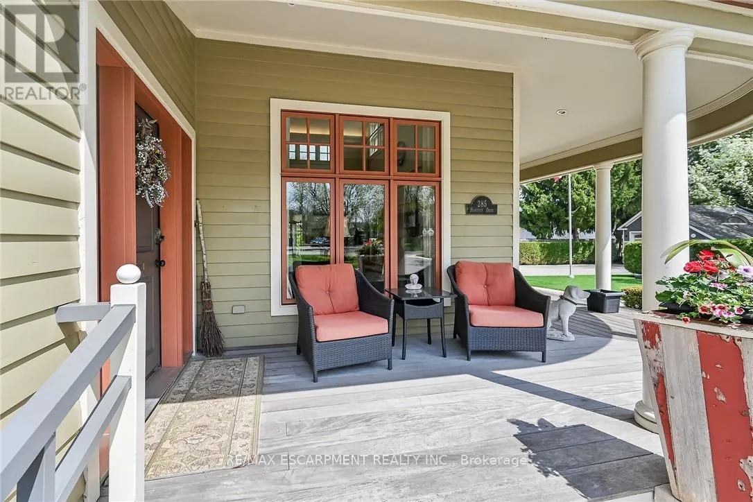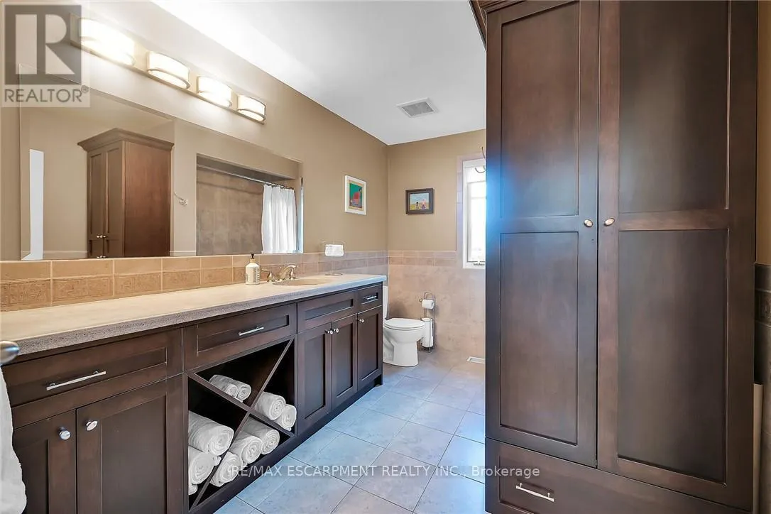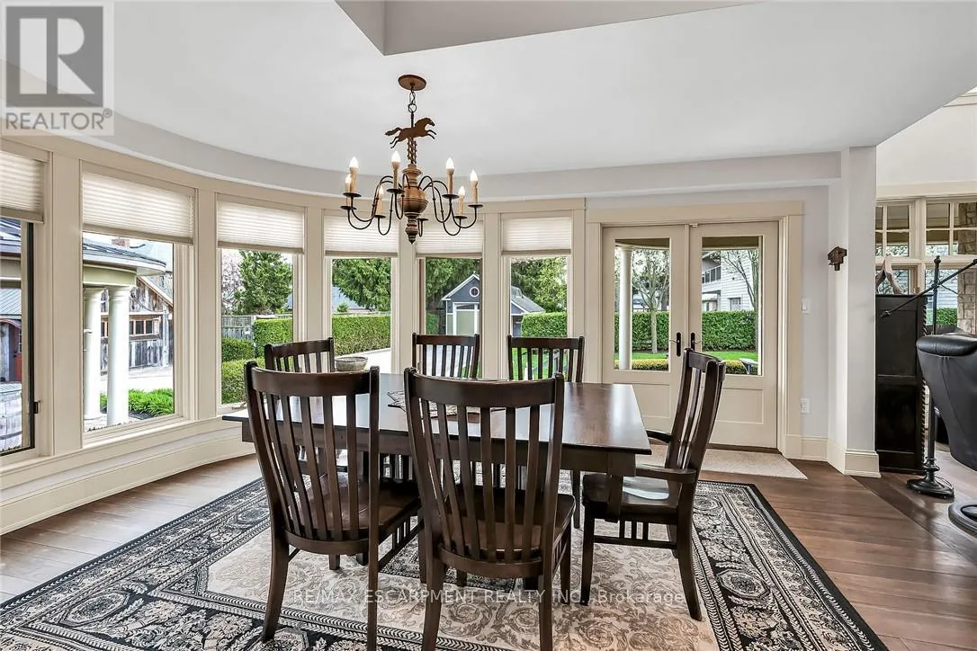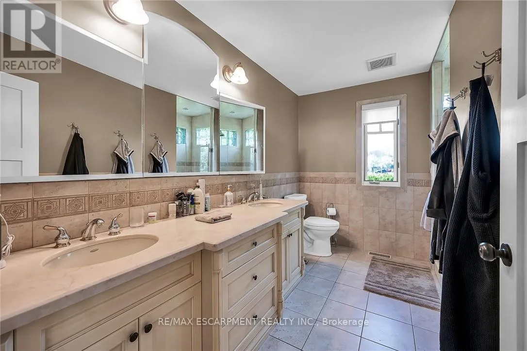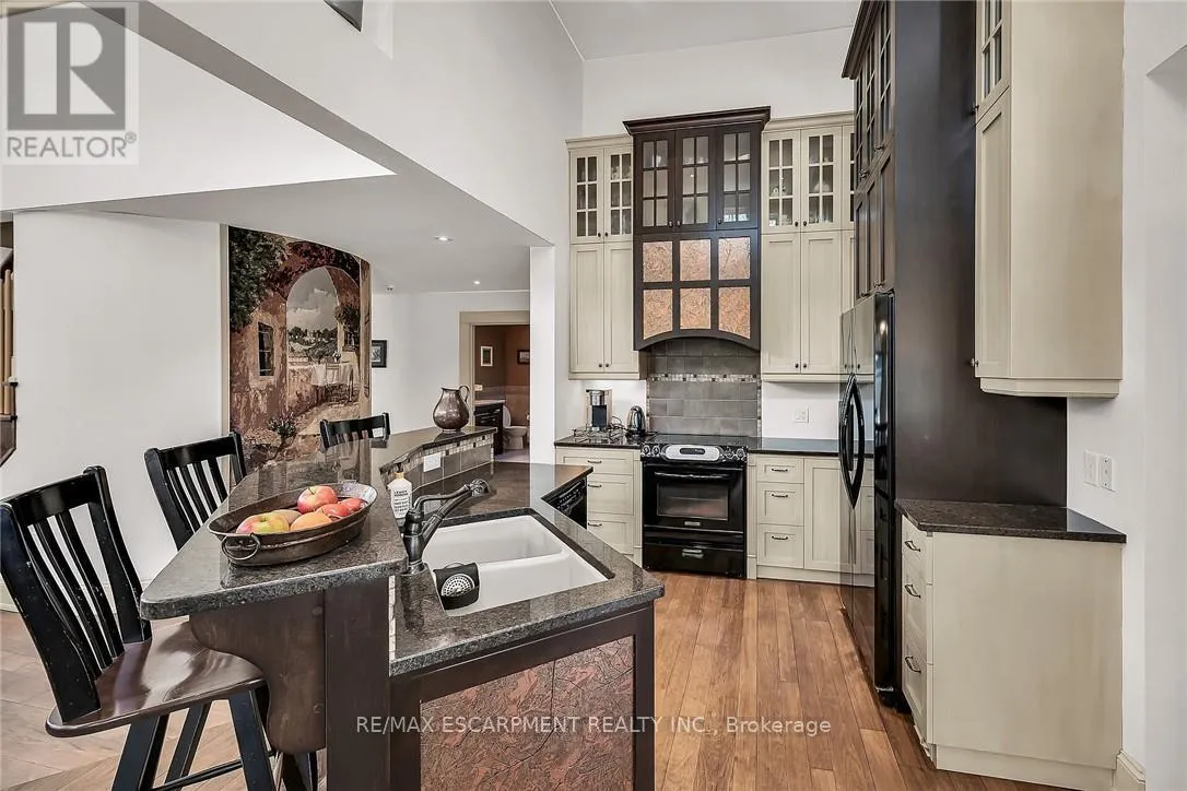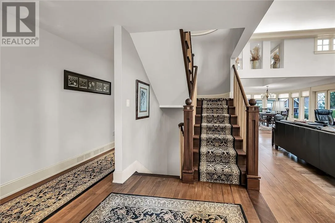 Cross Streets: Wilson. ** Directions: Wilson St W to Hamilton Dr. Architectural masterpiece. Many have admired this unique 2 storey residence situated on a private half acre lot. Quality and details abound in this custom build. Soaring 17' Barrel vaulted ceiling in sun-filled living room is the highlight of the home. Interesting details throughout. Exterior gets interest for its used of muted natural colour scheme. Lower level features In-Law suite and generous storage space. Private parking for 20 cars. Heated garage features tiled flooring. Additional 22'x20' heated garage or workshop with water supply. Third garage is single. A must-see for clients seeking quality and comfort! (id:27476)