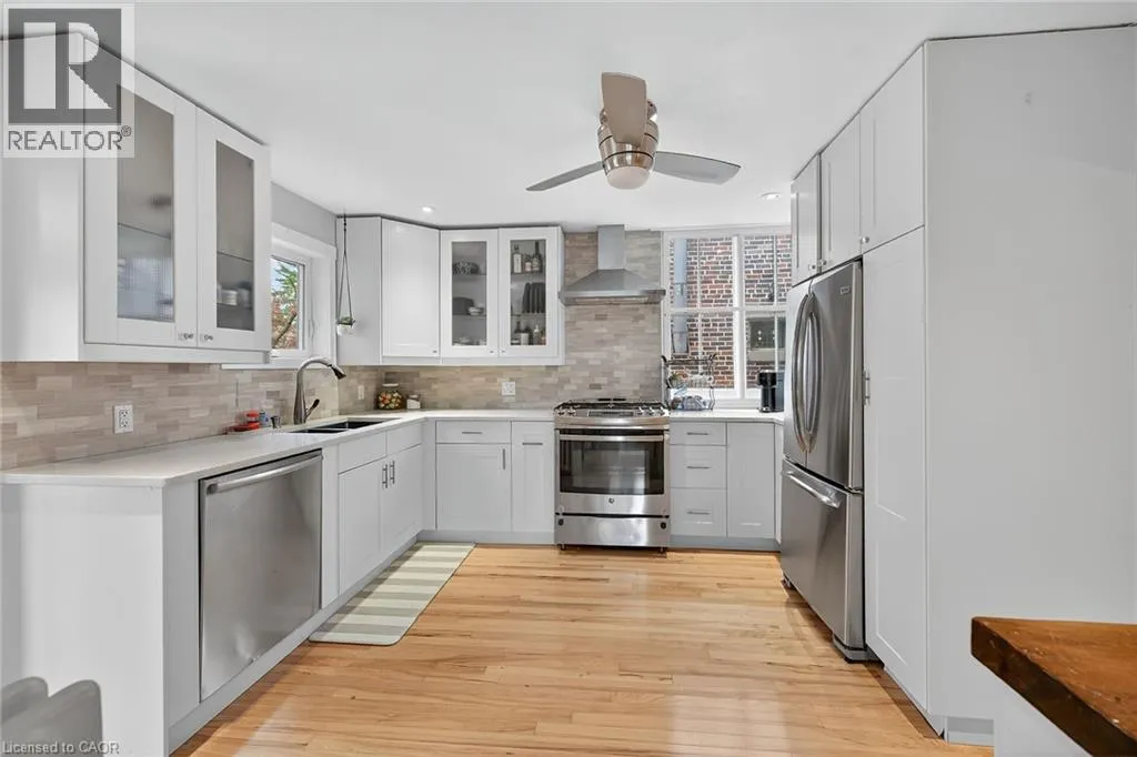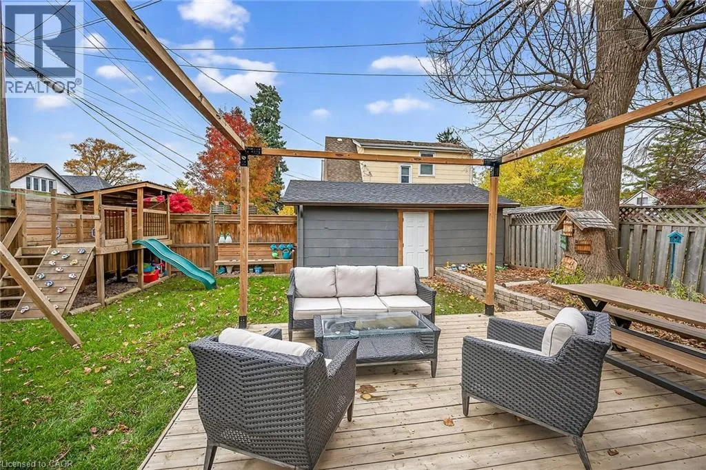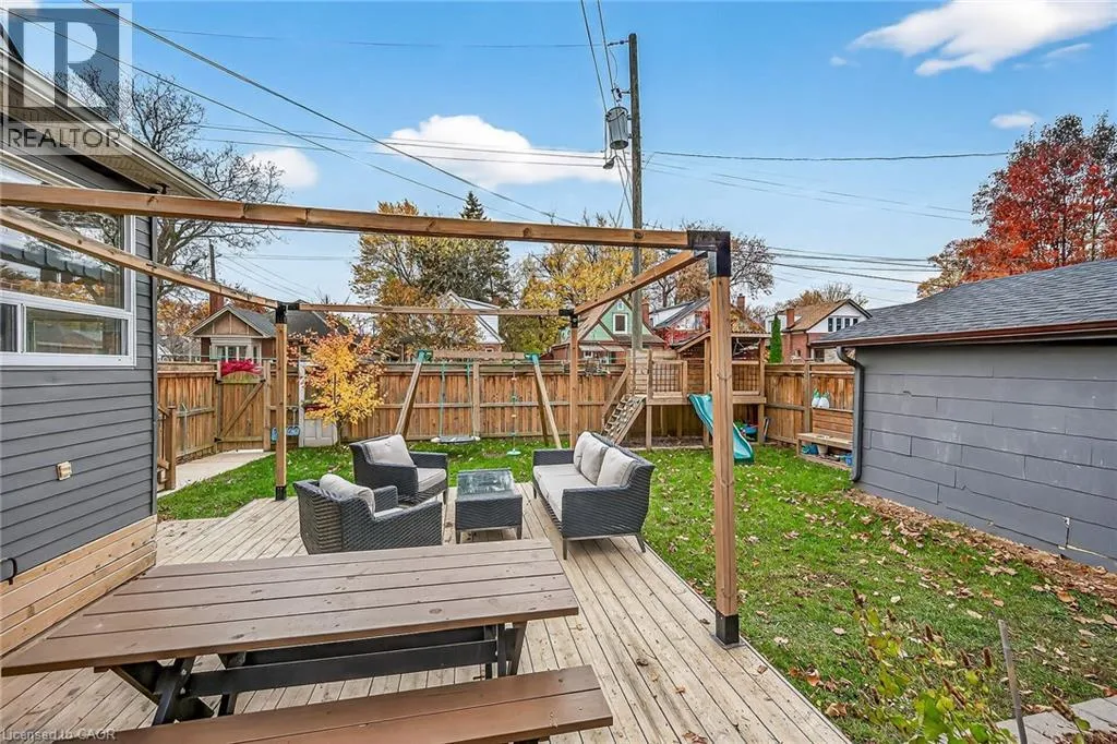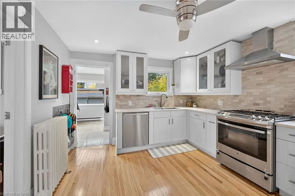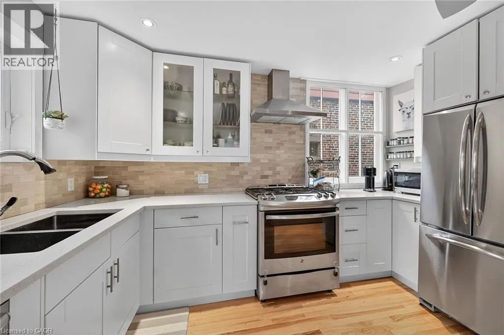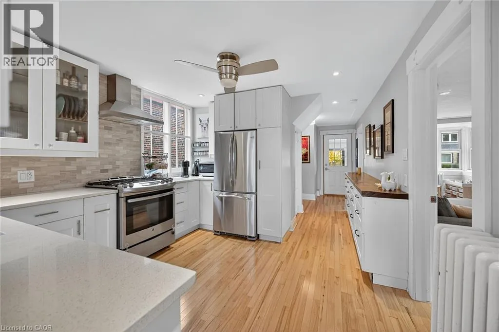Macklin St. N - Dufferin St - Paradise Rd N Welcome to this beautifully updated Westdale two-storey home, where timeless character meets modern comfort. Set on a spacious corner lot with a new fence and detached garage (a rare find!), this warm family home has been thoughtfully upgraded inside and out. Step into the bright, updated kitchen featuring Quartz counters, a stone backsplash, and top-of-the-line stainless steel appliances, including a gas stoveâperfect for cooking and entertaining. The open dining and family room is ideal for gatherings, with hardwood flooring adding warmth and charm throughout. Upstairs, youâll find refinished hardwood floors, a spacious primary bedroom with an adjoining office or nursery, and a beautifully updated 4-piece bathroom. Behind the scenes, the home offers updated plumbing and wiring, plus a high-efficiency Navien boiler system for comfort and peace of mind. Outside, enjoy a new deckâperfect for family barbecues or relaxing eveningsâand in the front yard, a stunning rain garden, created through local grant funding. This eco-friendly space is filled with native, low-maintenance plants that offer natural beauty year-round. Combining modern upgrades with classic Westdale charm, this home truly has it allâa welcoming community, move-in-ready comfort, and thoughtful updates inside and out. (id:27476)