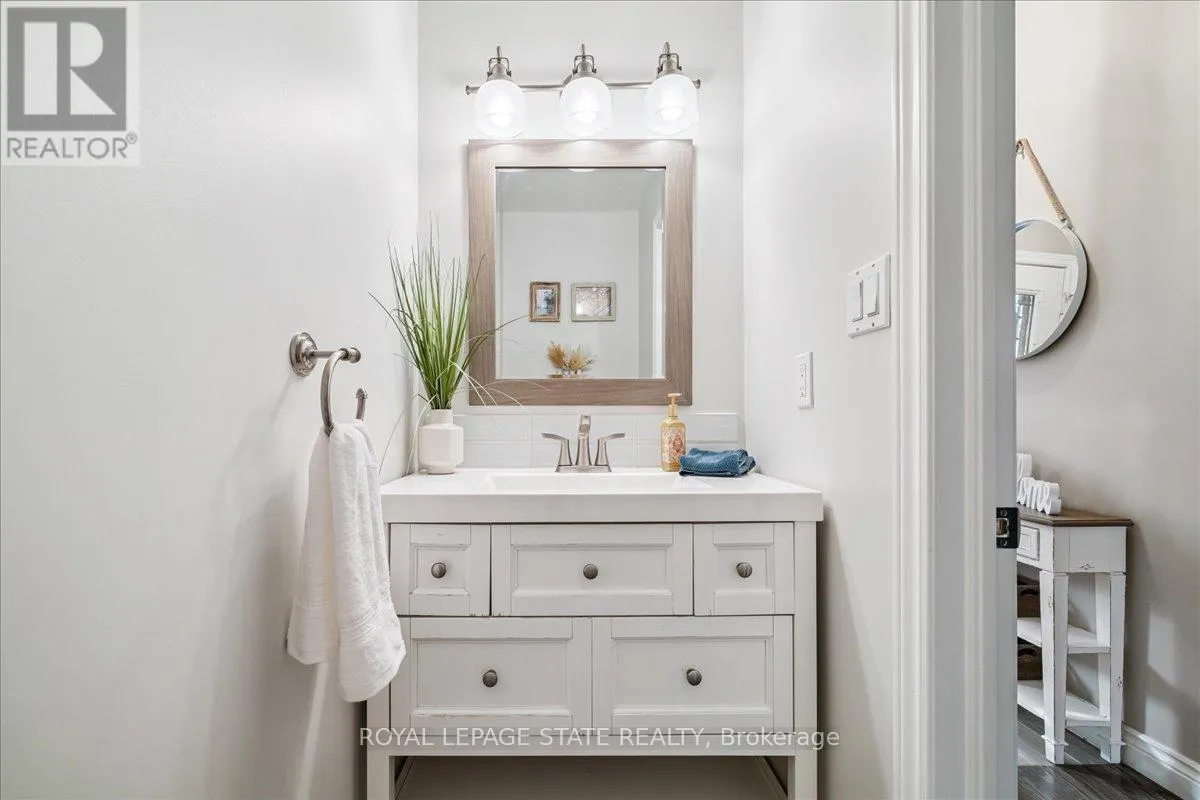 Cross Streets: Aberdeen Ave. ** Directions: QEW - to 403 W - exit on Aberdeen Ave - continue on Aberdeen Ave to Beddoe Dr. Stunning upgrades, elegant design & prime location! This beautifully updated townhome, just off HWY 403 & the Linc, blends modern style, comfort & everyday convenience. Enjoy rich 5" oak hardwood floors, upgraded lighting & LED pot lights throughout. The bright kitchen features Caesarstone counters, soft-close cabinets, stainless steel appliances, undermount sink & sleek subway tile backsplash. The open living/dining area offers great natural light & walkout to a private courtyard overlooking a landscaped parkette - a peaceful spot for morning coffee or evening relaxation. Interior garage access & stylish powder room complete the main level. Upstairs, the spacious primary suite offers 2 closets & a stunning 5-pc ensuite with soaker tub, stone accents, glass shower, frosted barn door & double vanity. The second bedroom also features a 4-pc ensuite & generous closets. The finished lower level includes a laundry room with cabinetry, sink & backsplash, plus a large rec room with media wall, stone fireplace & custom built-ins, along with an upgraded 3-pc bath. Located in a walkable, highly sought-after neighbourhood near scenic trails, the Bruce Trail, Chedoke Golf Course, Locke St., Westdale, McMaster & St. Joe's Hospital. Minutes to shops, cafés & parks. Meticulously finished from top to bottom - a hidden gem offering the perfect blend of luxury & lifestyle! (id:27476)