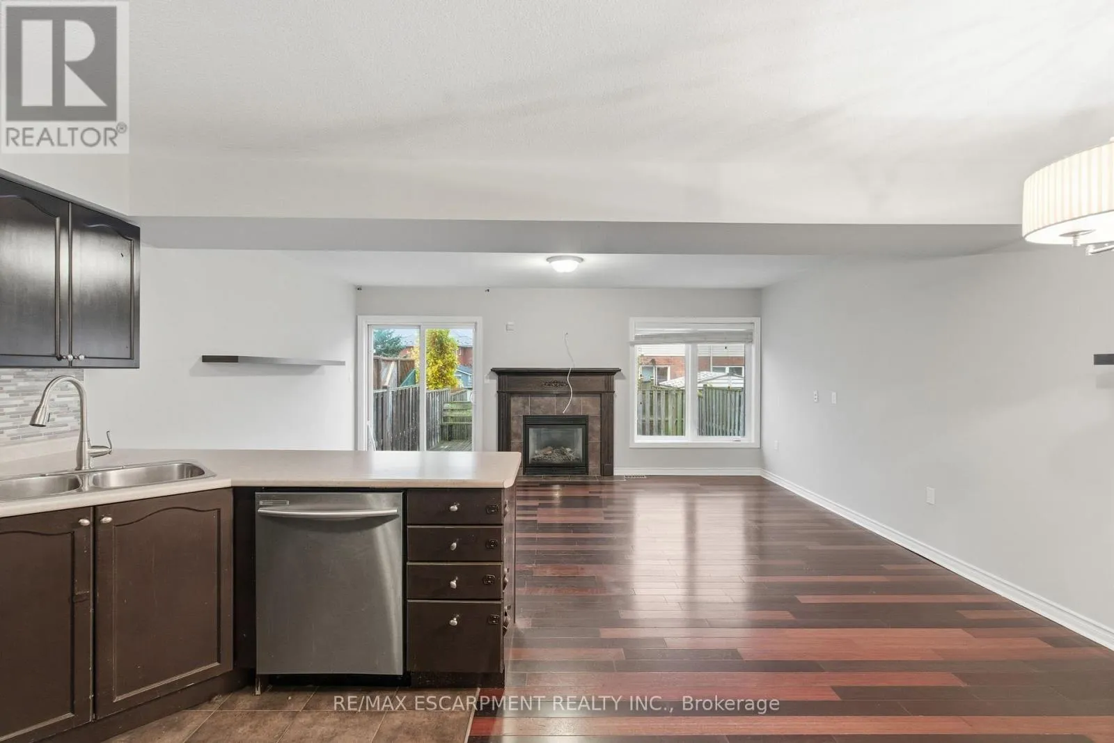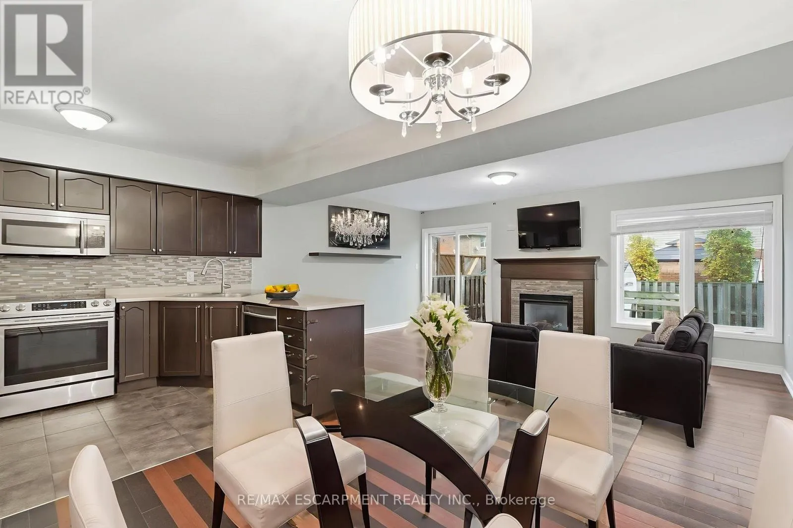 Cross Streets: Rmyal Rd East & Fletcher. ** Directions: Rymal Road East to Fletcher Road to Pinehill Drive to Blue Mountain Drive. Freehold Townhouse in family friendly neighborhood. 3 bedrooms, 2.5 bathrooms, open concept main floor features; kitchen with mosaic backsplash, island/breakfast nook with seating for 4 people, and top of the line Stainless Steel appliance. Bright spacious living room/dining room with bamboo flooring, gas fireplace & walkout to private backyard. Second level features; 3 spacious bedrooms, Master bedroom with walk-in closet, private ensuite bathroom with glass walk-in shower and soaker tub, bonus loft area just off master bedroom perfect for sitting area or home office. Fully finished basement features; rec room, office area, laundry room and cold cellar. Fully fenced backyard with deck off living room - deck has built in seating, perfect for entertaining! Attached garage with access from garage to rear yard inside entry to front foyer, walkout to backyard. Close to schools, shopping, movie theatre, hiking trails, minutes to the LINC and RED HILL - perfect for commuters. (id:27476)