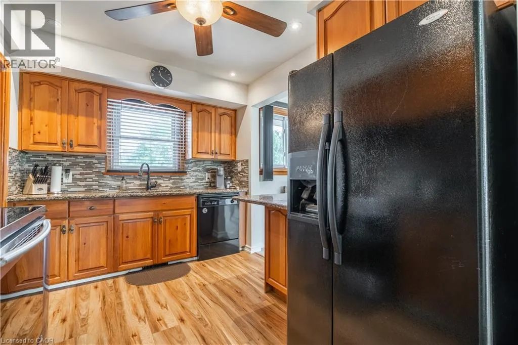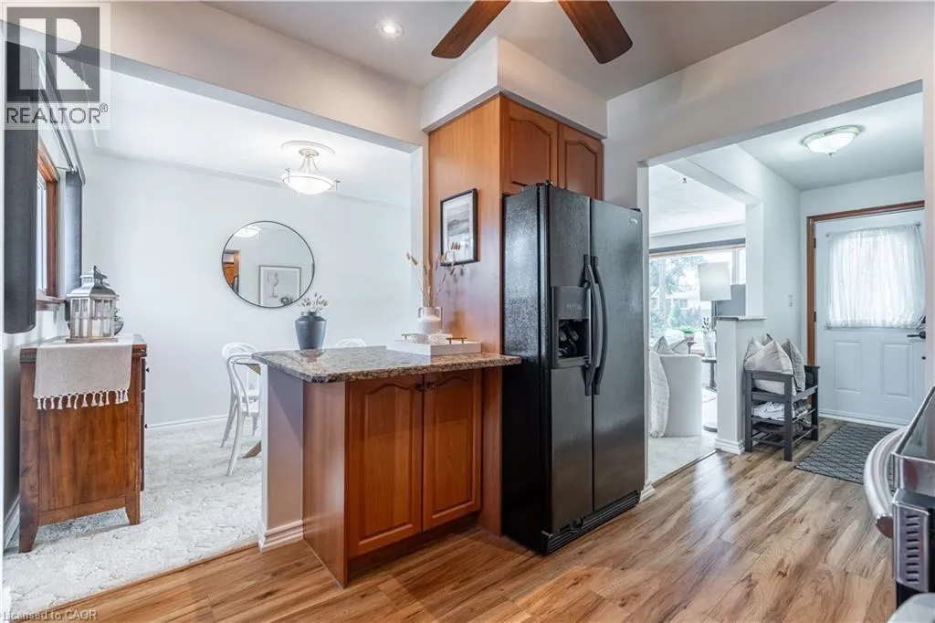 Fennell Ave E to High St, Left on Kingslea Dr to Kenwood Cres Charming and well-cared-for 3-bedroom, 2-bathroom bungalow with a full basement on a quiet crescent on the east Hamilton Mountain! This generational home is situated on a spacious 53 x 100 ft lot and features a beautifully maintained, fully fenced backyard, a long concrete driveway, and a single-car garage. Inside, you're welcomed by a bright and inviting foyer that opens to the kitchen and living room, where large windows fill the space with natural light. The adjoining dining room is generously sized, perfect for family meals or entertaining. Down the hall, you'll find three comfortable bedrooms and an updated 4-piece bathroom. The finished basement offers an impressive 875 sq. ft. of additional living space, complete with two recreation areas, storage, a 3-piece bathroom, and a laundry room. Step outside to enjoy the private backyard retreat, featuring a sunroom, a dining patio, lush green lawn, and lovely manicured gardens. Nestled in a fantastic family-friendly neighbourhood, this home is close to great elementary and high schools, parks, shopping, with convenient access to the Lincoln Alexander Parkway for easy commuting. (id:27476)