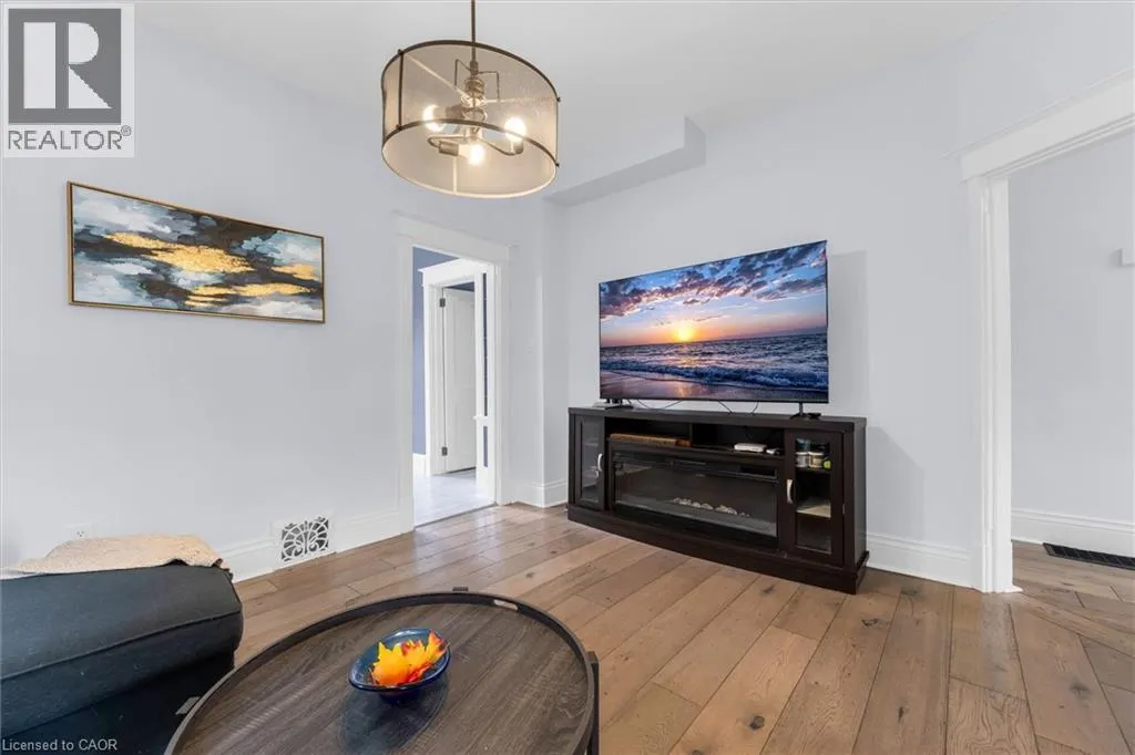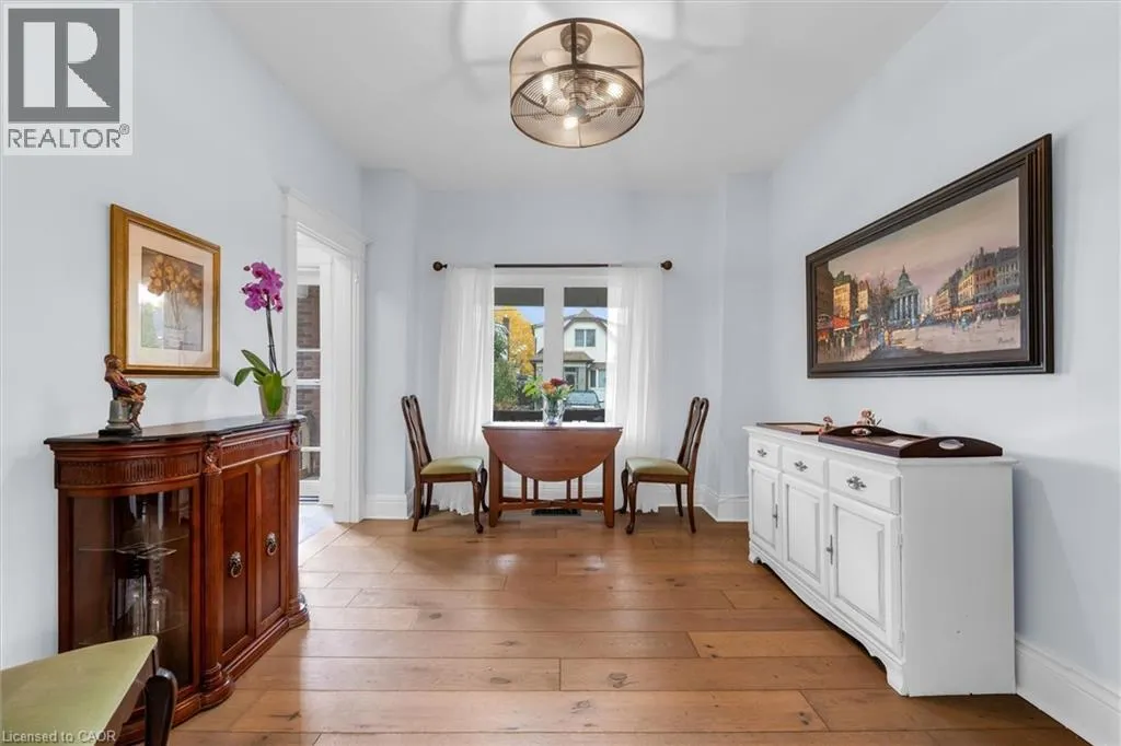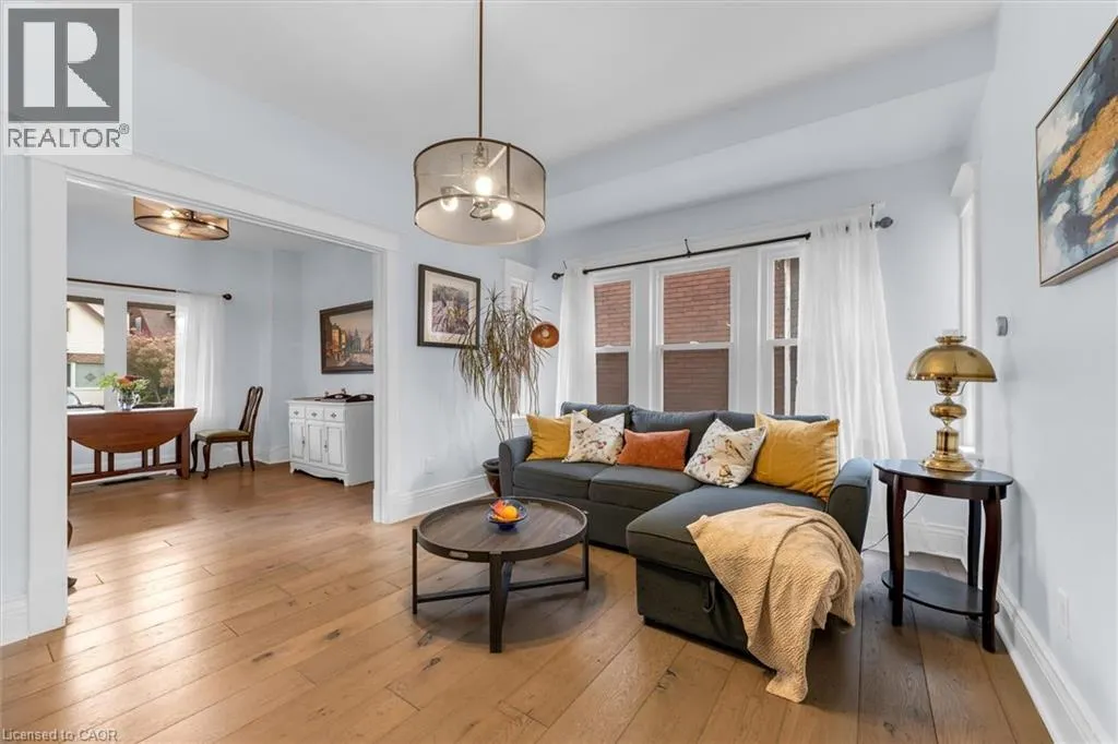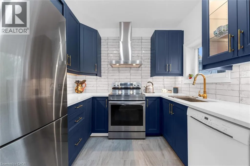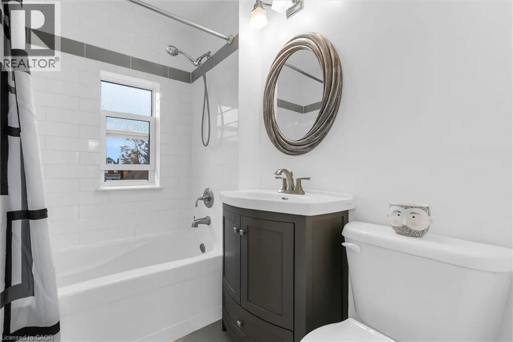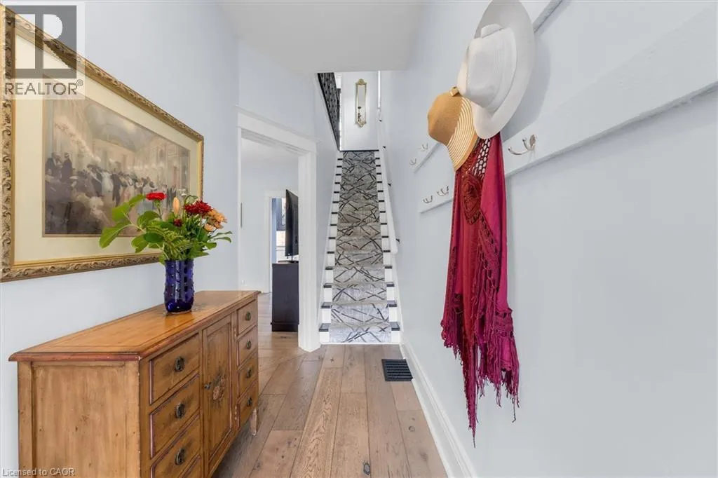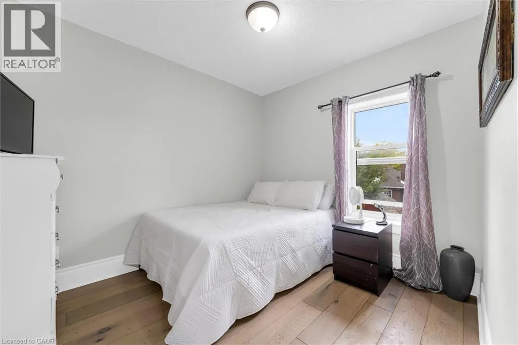 QEW to Nikola Tesla Blvd to Gage Ave N; Left Gage Ave N; Right on Barton St E; Left on Leinster Ave N; Home on right side Step into a beautifully updated two-storey brick home nestled in one of Hamilton's most sought-after neighbourhoods! The inviting covered front porch welcomes you into a space where classic charm meets modern convenience! Inside, updated laminate & ceramic flooring lead through a thoughtfully designed layout! The brand-new chef-style kitchen (2025), equipped with modern stainless-steel appliances, becomes the heart of the home: a place for culinary creations and cherished memories! From the kitchen step out onto a raised deck overlooking your private backyard, ideal for quiet evenings, a serene garden oasis, a play area for children or lively summer barbecues! A newly installed main floor bathroom (2025), conveniently located near the back door, adds practicality for guests & daily living! Upstairs three generously sized bedrooms provide restful retreats complemented by a recently updated 4-piece bathroom! Significant upgrades include a 6-year-old furnace & air conditioner, a sump pump installed 2023, Omni waterproofing with warranty, spray foam insulation & a basement with framing ready for drywall and rough-in bath, offering potential for additional living space! The expansive driveway accommodates up to three vehicles leading to a detached single-car garage, a rare find in Hamilton, providing ample storage & parking solutions! Situated near the new Tim Hortons Field, local parks & recreational facilities, this home is a short walk to trendy Ottawa Street shops, cafes, restaurants, schools & transit options! With convenient highway access, commuting is a breeze! This property isn't just a house; it's an opportunity to embrace a lifestyle where comfort meets convenience! Why settle for a condo when you can own a detached home that offers space, privacy & a vibrant neighbourhood? Don't miss out on making this exceptional home your own! Schedule a viewing today and take the first step toward your new beginning in Hamilton's vibrant heart! (id:27476)