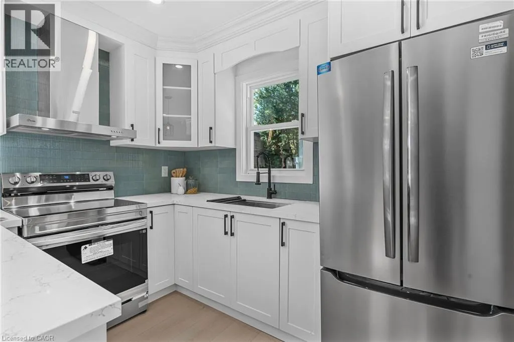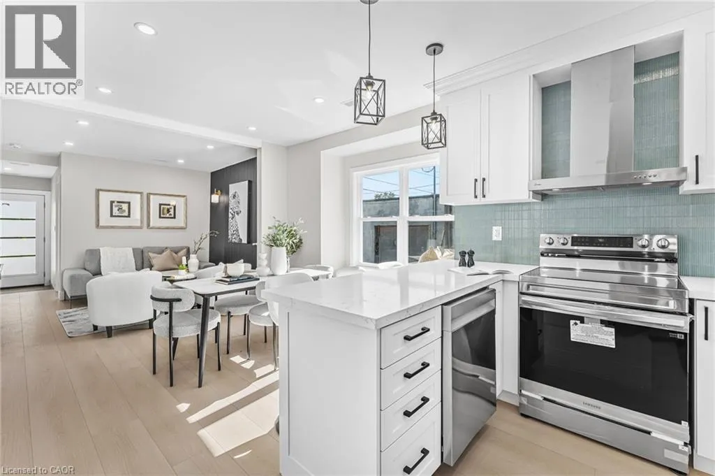 Just north of Crockett, between Upper Sherman & Upper Gage Welcome to 56 East 34th Street, Hamilton, a fully reimagined, turn-key luxury home completed with building permits and designed for buyers who value quality and peace of mind. Completely gutted to the studs and rebuilt with all-new mechanics, this property features brand-new electrical (ESA certified), plumbing, ductwork, HVAC, windows, siding with a modern awning, and a tankless water system. Inside, every detail has been elevated with luxury wide-plank flooring, designer finishes, a beautifully upgraded kitchen, and new appliances, creating a contemporary and comfortable living space. Located in a sought-after Hamilton Mountain neighbourhood, youâre steps from parks, schools, Concession Street cafés, Juravinski Hospital, and minutes to highway access, making it ideal for families and first-time buyers alike. With an oversized backyard and permit street parking available, this home offers not just style, but functionality and future potential. Thousands have been invested so you donât have to lift a fingerâjust move in and enjoy modern living in a vibrant, community-driven area. (id:27476)