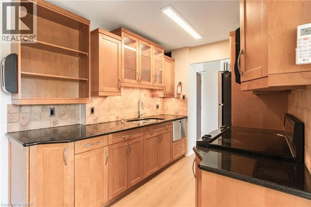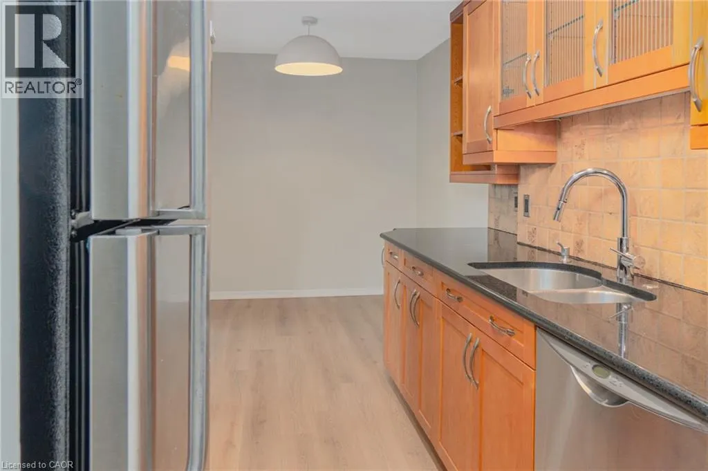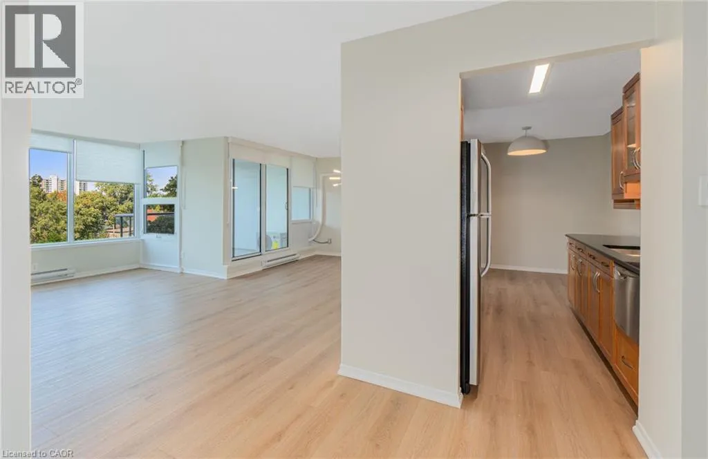 York St to Queen St N This beautifully renovated 2-bedroom, 1-bathroom condo offers brand new flooring, fresh paint, and a range of high-end upgrades to make this unit feel like new. Enjoy the luxury of a brand new never used dishwasher and microwave, along with sleek new windows, blinds, and a new HVAC system for ultimate comfort. Plus, the updated vanity and new lighting fixtures throughout add a touch of elegance. Professionally cleaned and ready for you to move in immediately. Don't miss out on this gem! (id:27476)