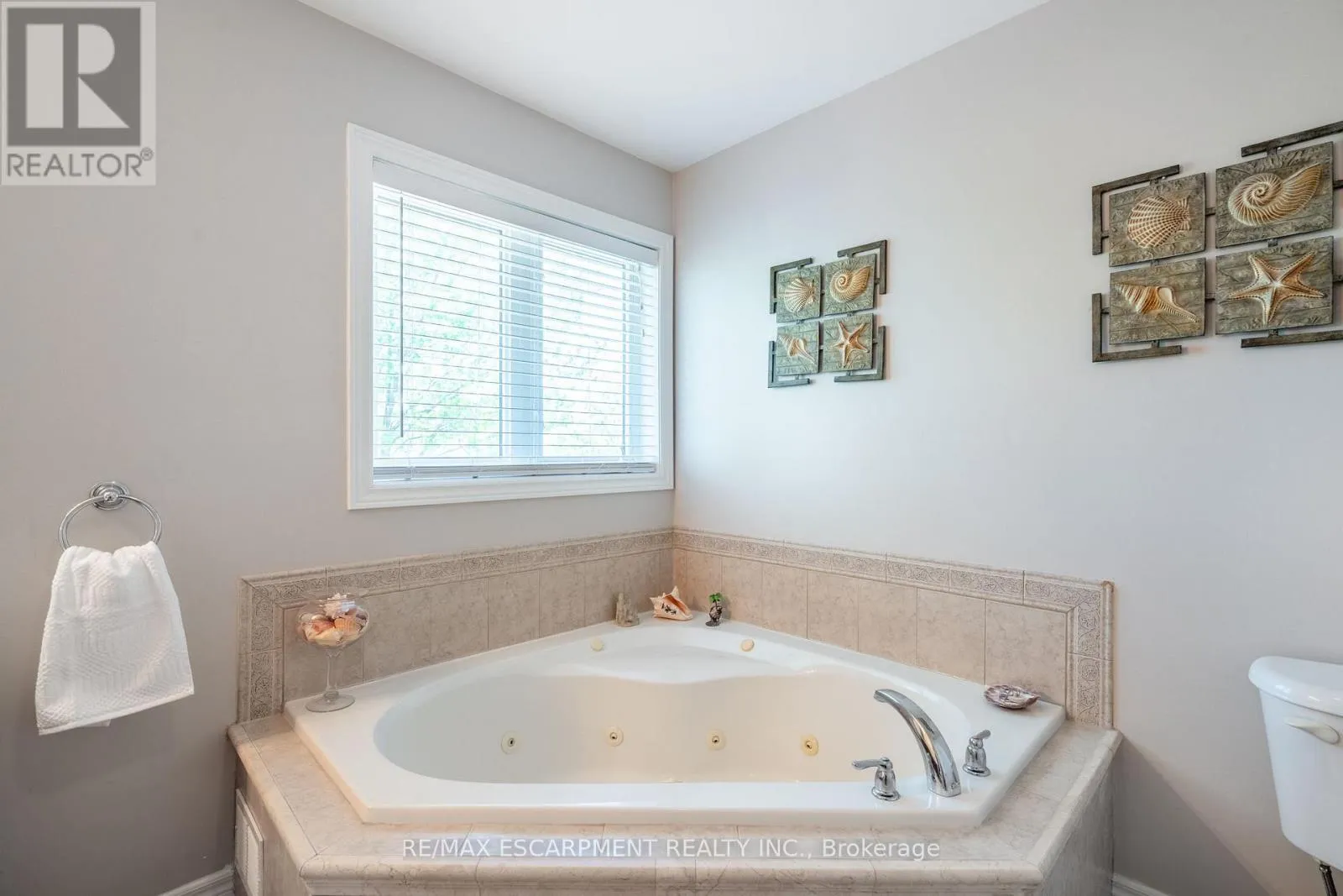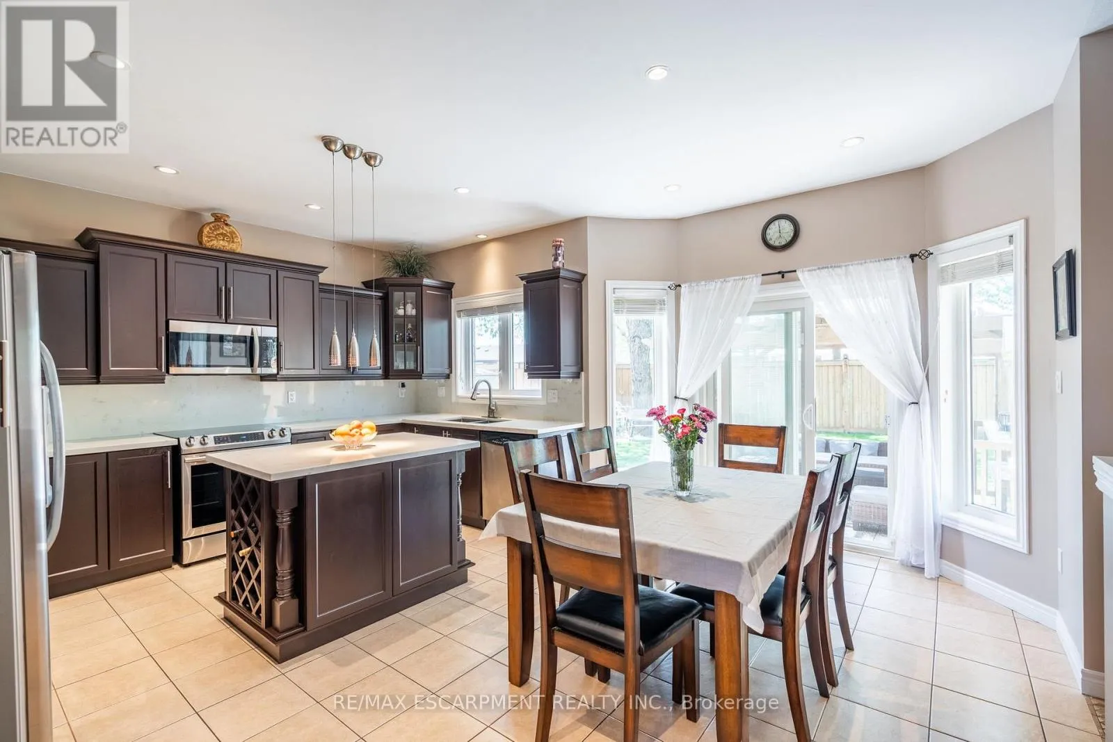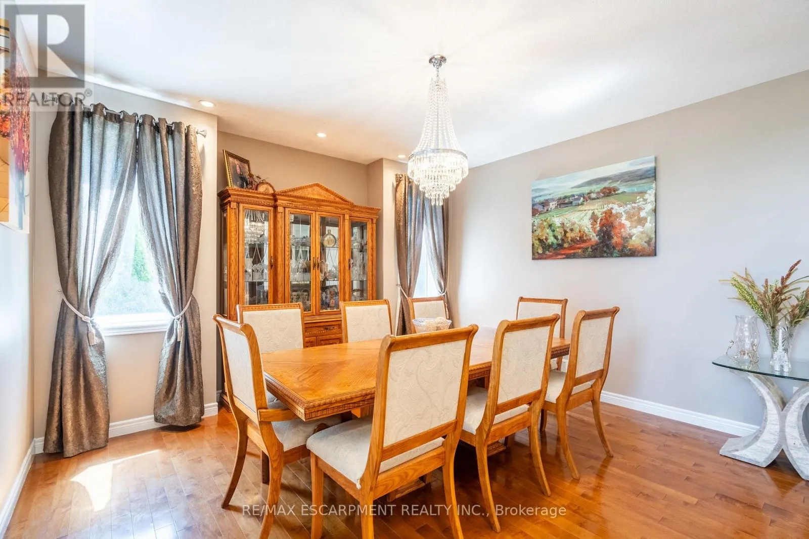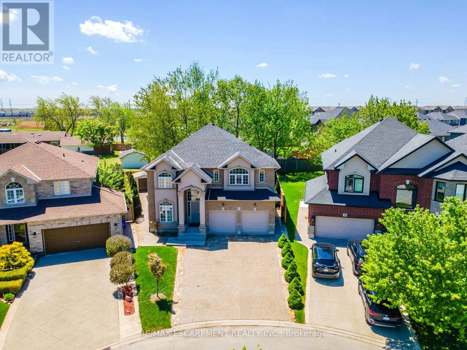 Cross Streets: Gatestone Drive. ** Directions: Rymal Rd to Second Rd W to Gatestone Dr To Edgecroft Cres. Your dream home awaits at this custom-built 2,655 square foot masterpiece nestled on a generous pie shaped lot. Enter the home to discover an abundance of natural light, with elegant chandeliers and pot lights that illuminate every corner of the home. The front entrance boasts a stunning 17-foot open vaulted ceiling, creating an airy and grand atmosphere perfect for both relaxed living and elevated entertaining. The heart of the home is a beautiful maple kitchen with quartz countertops, island, and extended pantry open to the dinette and family room, featuring a gas fireplace, built in surround sound speakers and wall-to-wall windows that invite the beauty of nature indoors, providing a serene backdrop as you cook and gather with loved ones. Head up the gorgeous open, wooden step, spiral staircase, to retreat to the luxurious primary suite complete with a lavish five-piece ensuite and 12 x 5 walk-in closet. Three additional well-appointed bedrooms and a spacious five-piece bath complete the second floor, ensuring ample space and privacy for family members or guests. The open unspoiled lookout basement offers high ceilings, four large windows, a three piece rough-in, a perfect canvas for your personal touch. Outside, your private backyard oasis awaits with stunning aggregate and stone landscaping around the whole house, lush gardens, an 8ft wooden fence, a welcoming pergola, and a charming campfire spot perfect for evenings under the stars. The 21 ft x 21 ft double car garage and 6 car driveway complete every wish list. This home combines modern comforts with thoughtful design, ensuring a lifestyle that celebrates both indoor luxury and outdoor living. This is your chance to call this exquisite property your own. (id:27476)