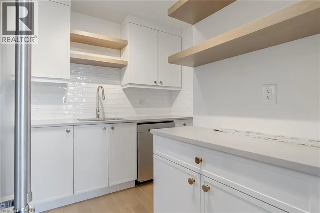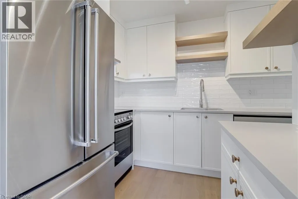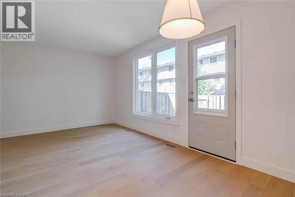 Upper Ottawa to Complex Lock and Leave Lifestyle -Years of maintenance free living. Gorgeously renovated townhome on Hamilton Mountain/Quinndale Location! This 3 bedroom, 2 bathroom home has over 1400 square feet of living space and a beautifully finished backyard deck. This home has been renovated with engineered hardwood throughout the main floor, which leads to a custom designed kitchen with stainless steel appliances, quartz countertops, subway tile backsplash, & soft-close cupboards. The dining area leads to the south facing walkout to a newly built deck for all day use. The main floor is complete with a spacious living room. New carpet with premium under pad leads to the upstairs level with 3 great sized bedrooms and a fully renovated 4-piece bathroom, gorgeous tiled bathroom stall, custom vanity and tile flooring. The lower level is complete with a recreation room and an added 3-piece bathroom with a custom vanity, tiled shower stall and tiled flooring. This home has been freshly painted throughout, updated light fixtures throughout, trim work and baseboards throughout. With an inclusive condo fee ( excellent management group ) and sitting in a quiet complex this home is perfect for those looking to get started in home ownership, close access to all major highways, shopping and public transit. (id:27476)