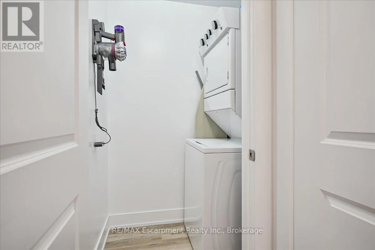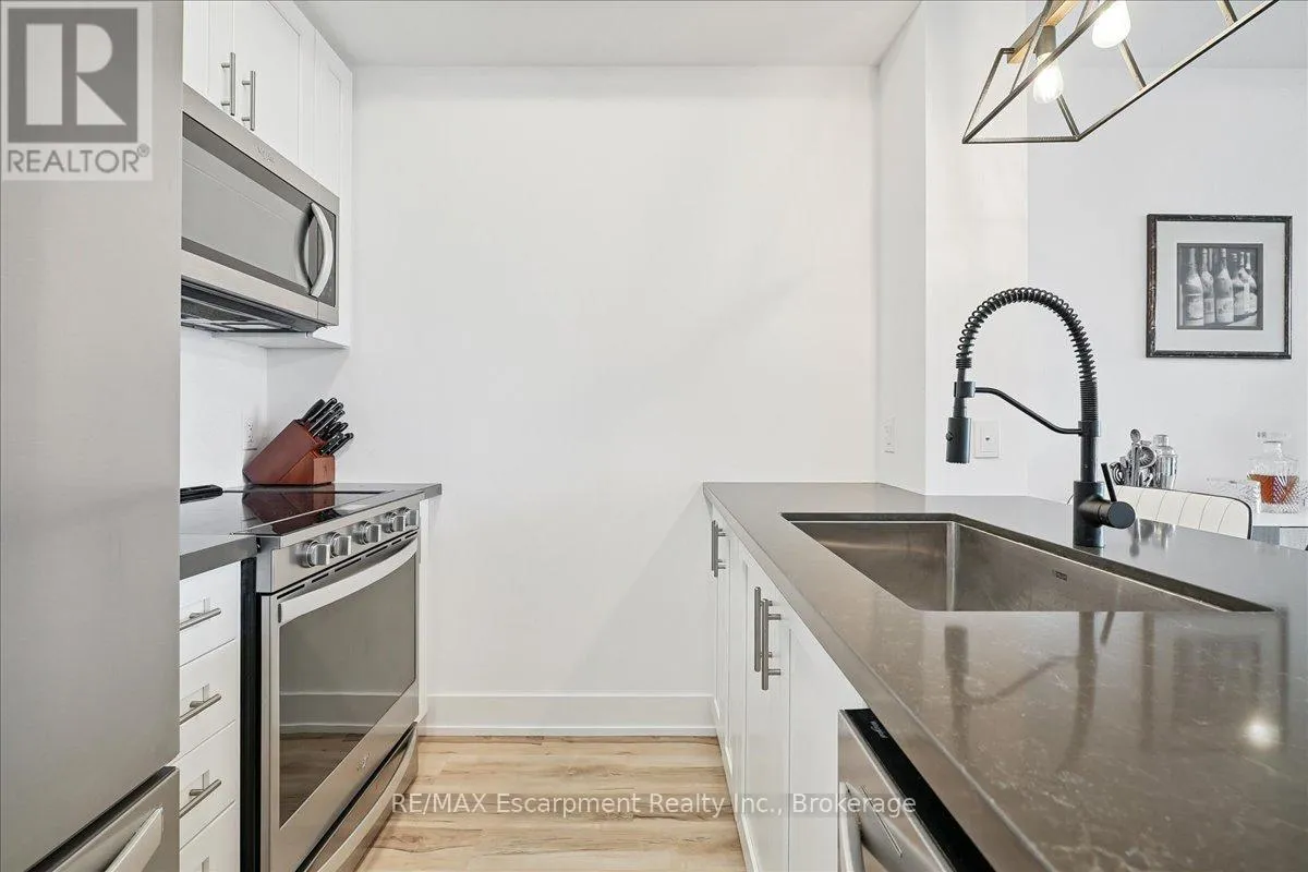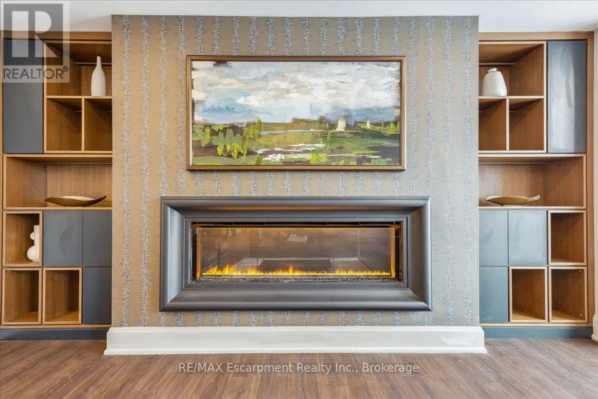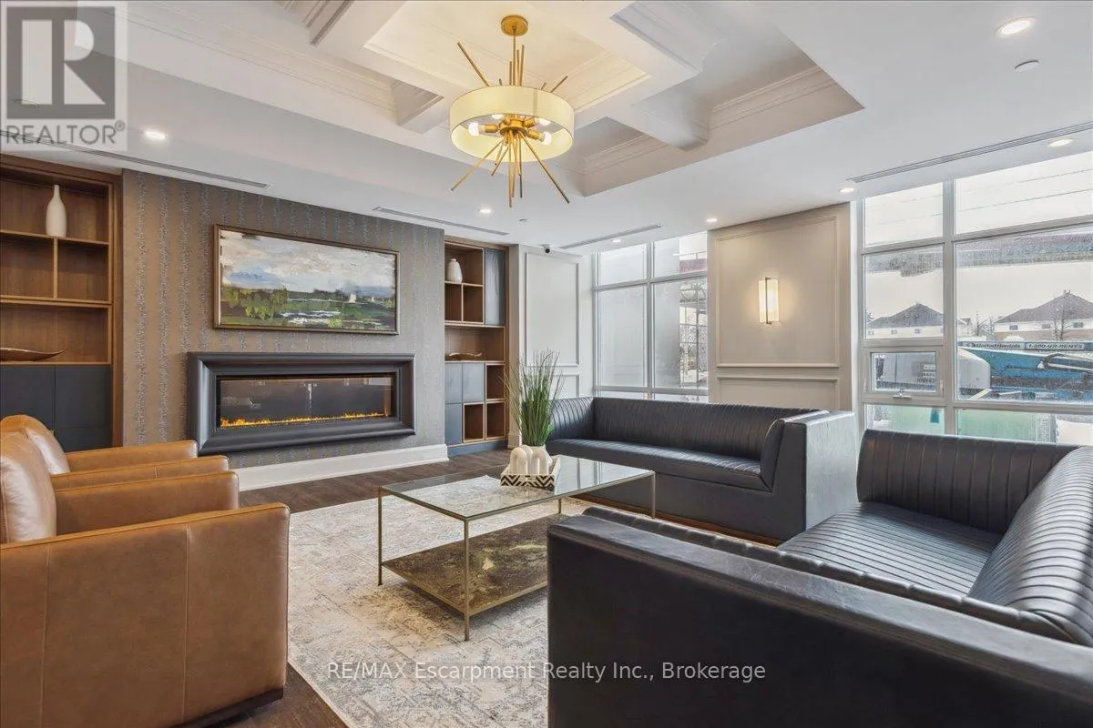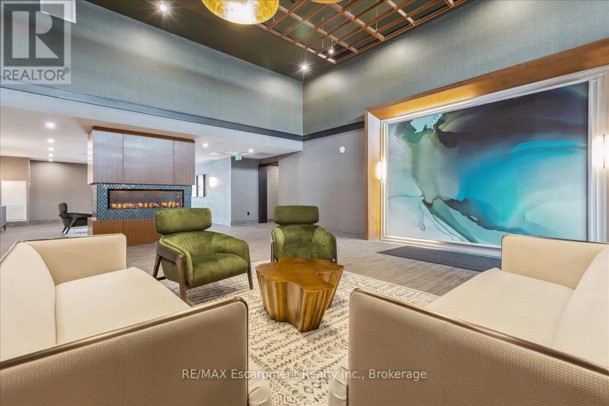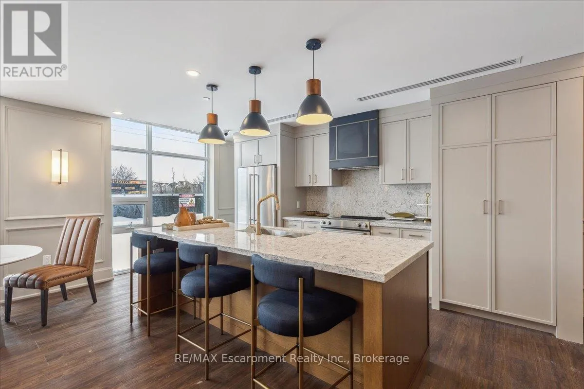 Dundas/Waterdown Rd LUXURIOUS ONE OF A KIND SPACIOUS LAYOUT with UNOBSTRUCTED VIEWS from your private balcony - 1 Bedroom Plus oversized den and 2 baths - the only model with 2 baths! Approximately 800 SF of living space and impressive HIGH END UPGRADES including Stainless-Steel appliances, built-in microwave/fan and a breakfast bar to accommodate 3-4 guests, 9' ceilings, quartz counters, designer lighting, modern blond-toned flooring throughout, ceiling-height cabinets, a separate walk-in laundry closet and so much more! The primary bedroom features a generous-sized walk-in closet, a 4-piece ensuite and that undeniable escarpment view! Amenities include a fabulous community and games room, theatre, bike storage room, and roof top with BBQs. The GO train is minutes away and access to all highways. Energy efficient geothermal building means low monthly utilities. Luxury living and lifestyle at its finest! 1 underground parking spot and 1 locker! (id:27476)